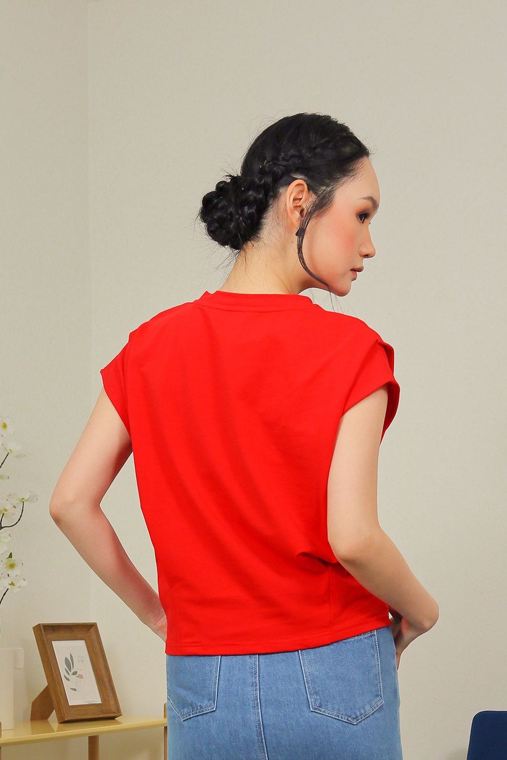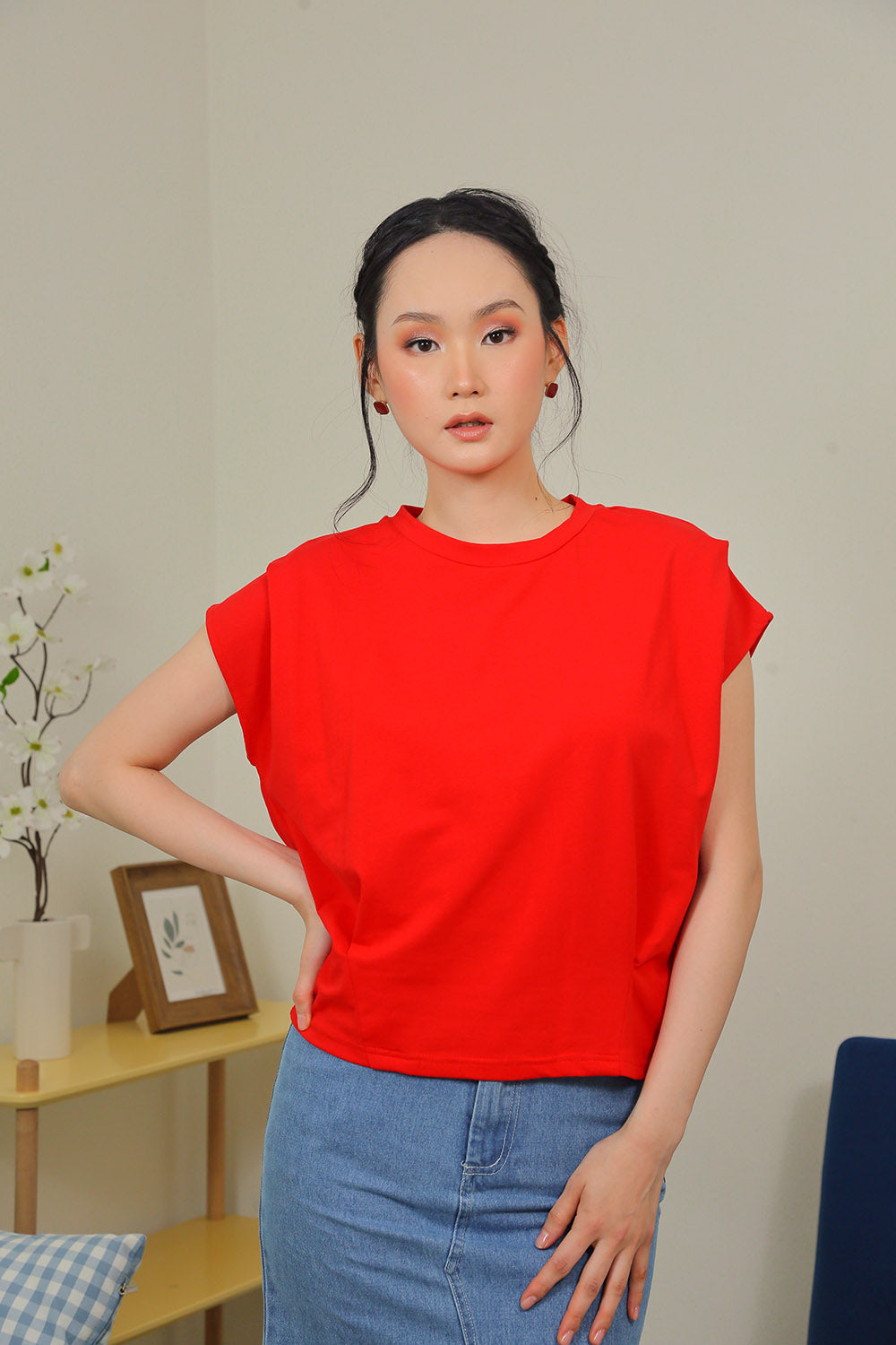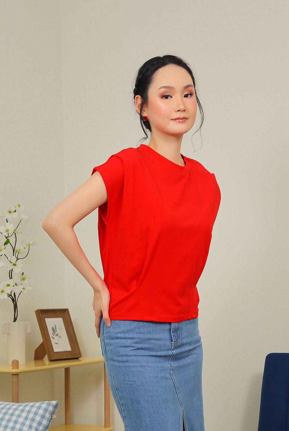 Lyra Relaxed Shoulder Tee in Crimson Red