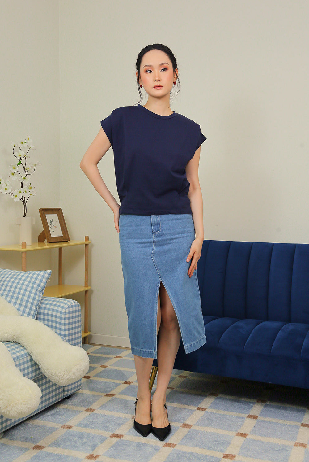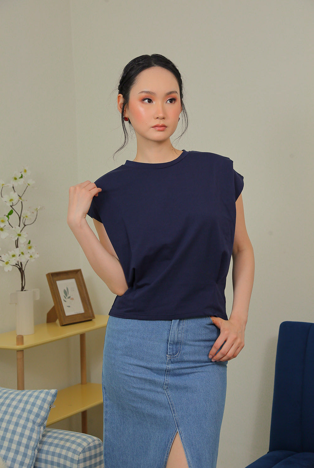 Lyra Relaxed Shoulder Tee in Midnight Navy