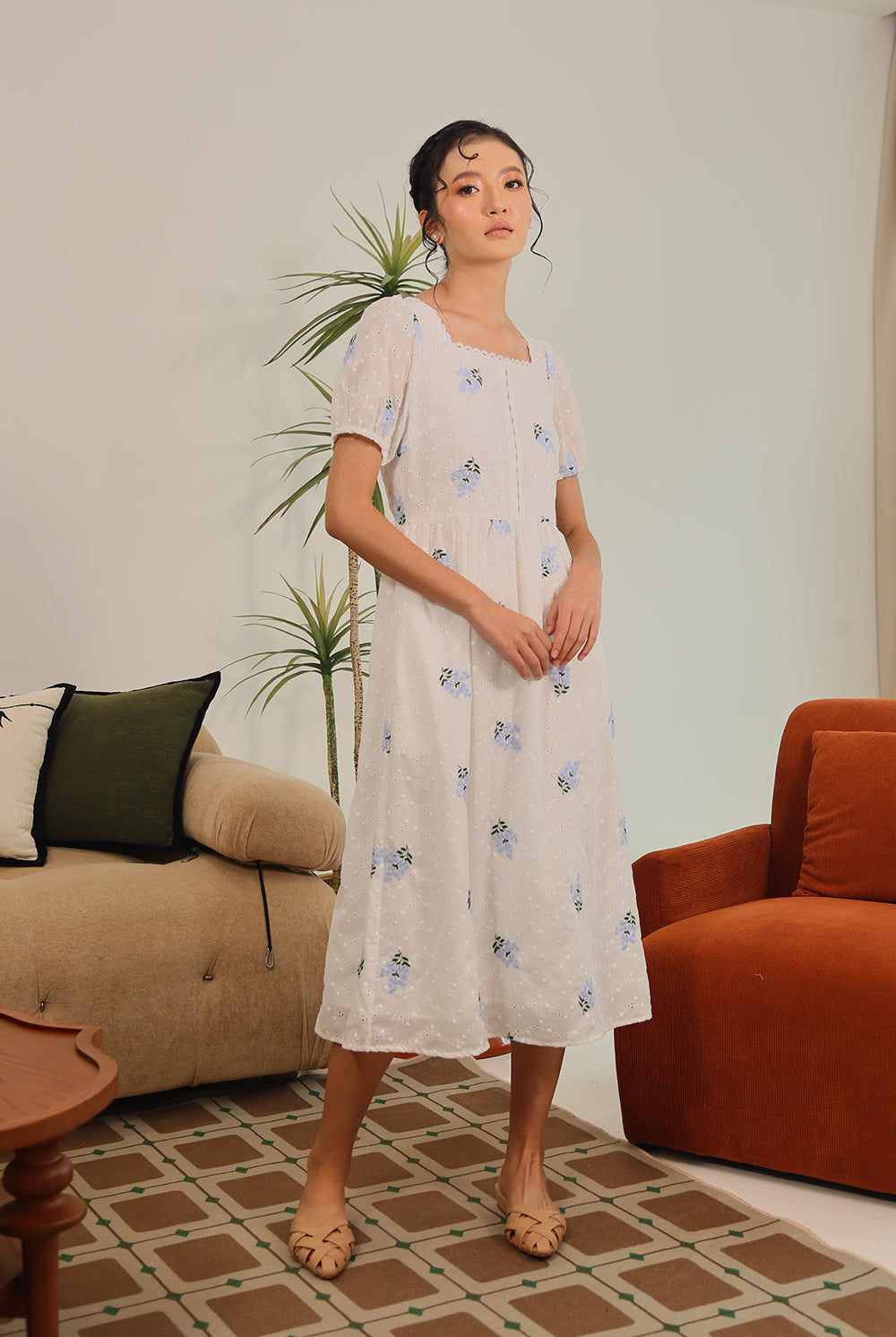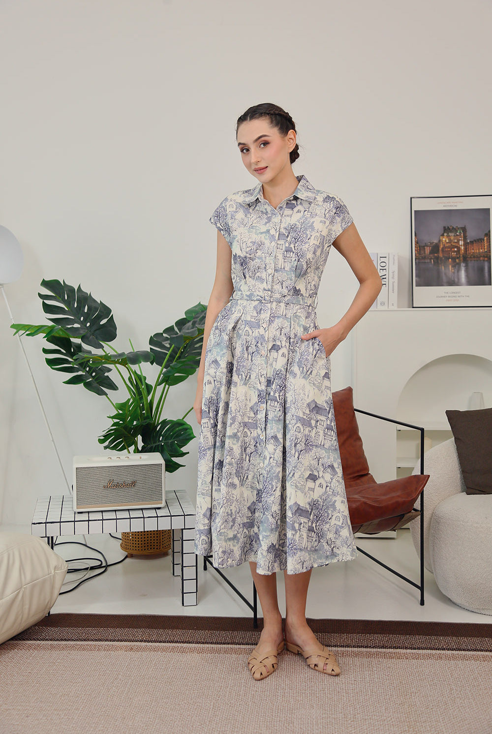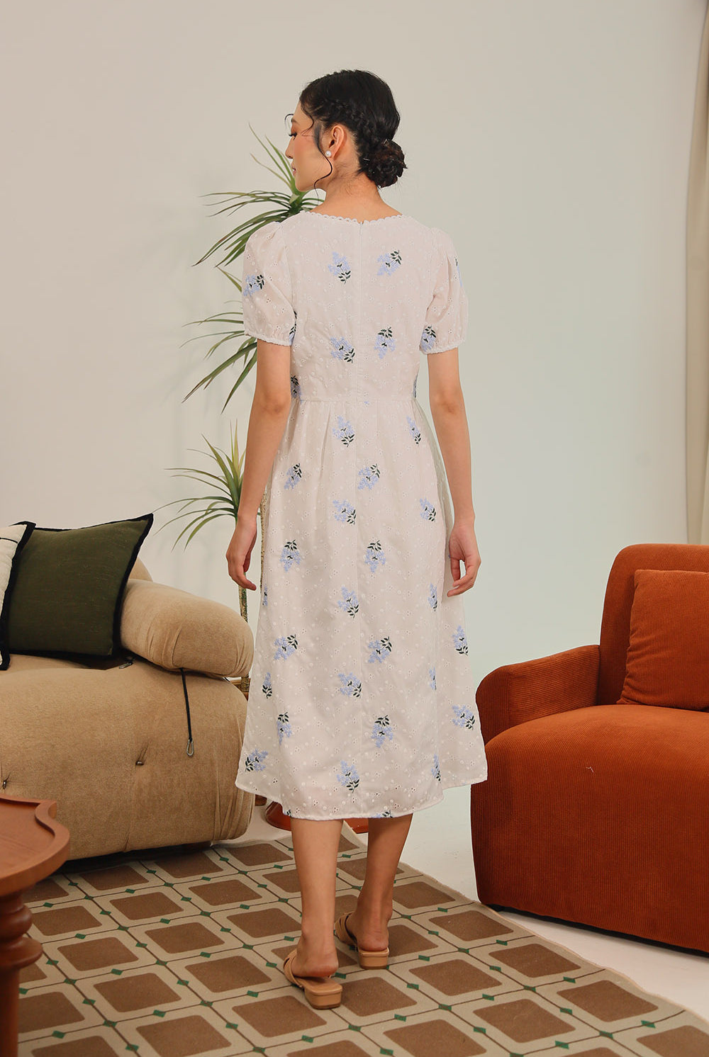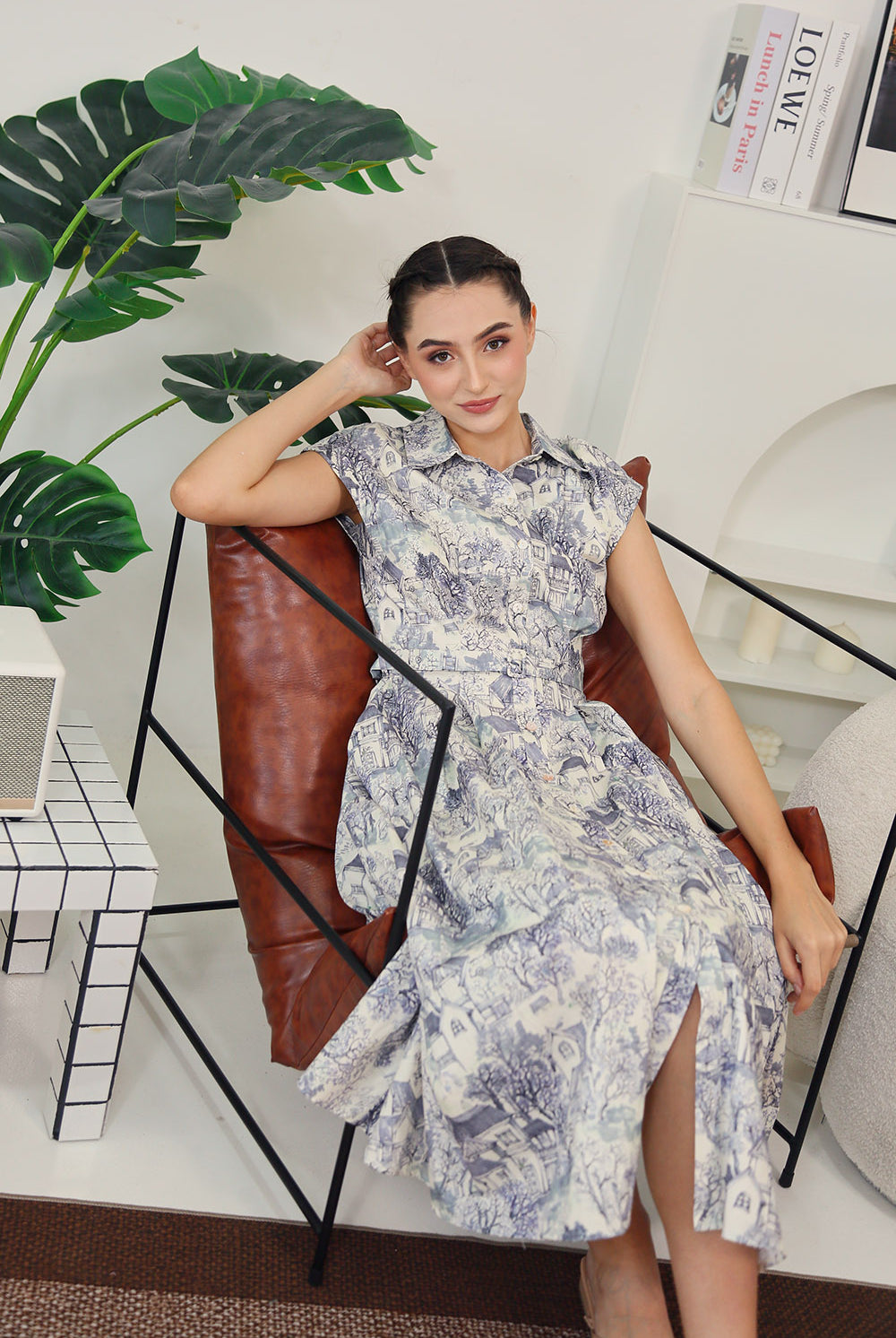 Dezza Midi Dress in Navy Blue Scenic Embroidery
