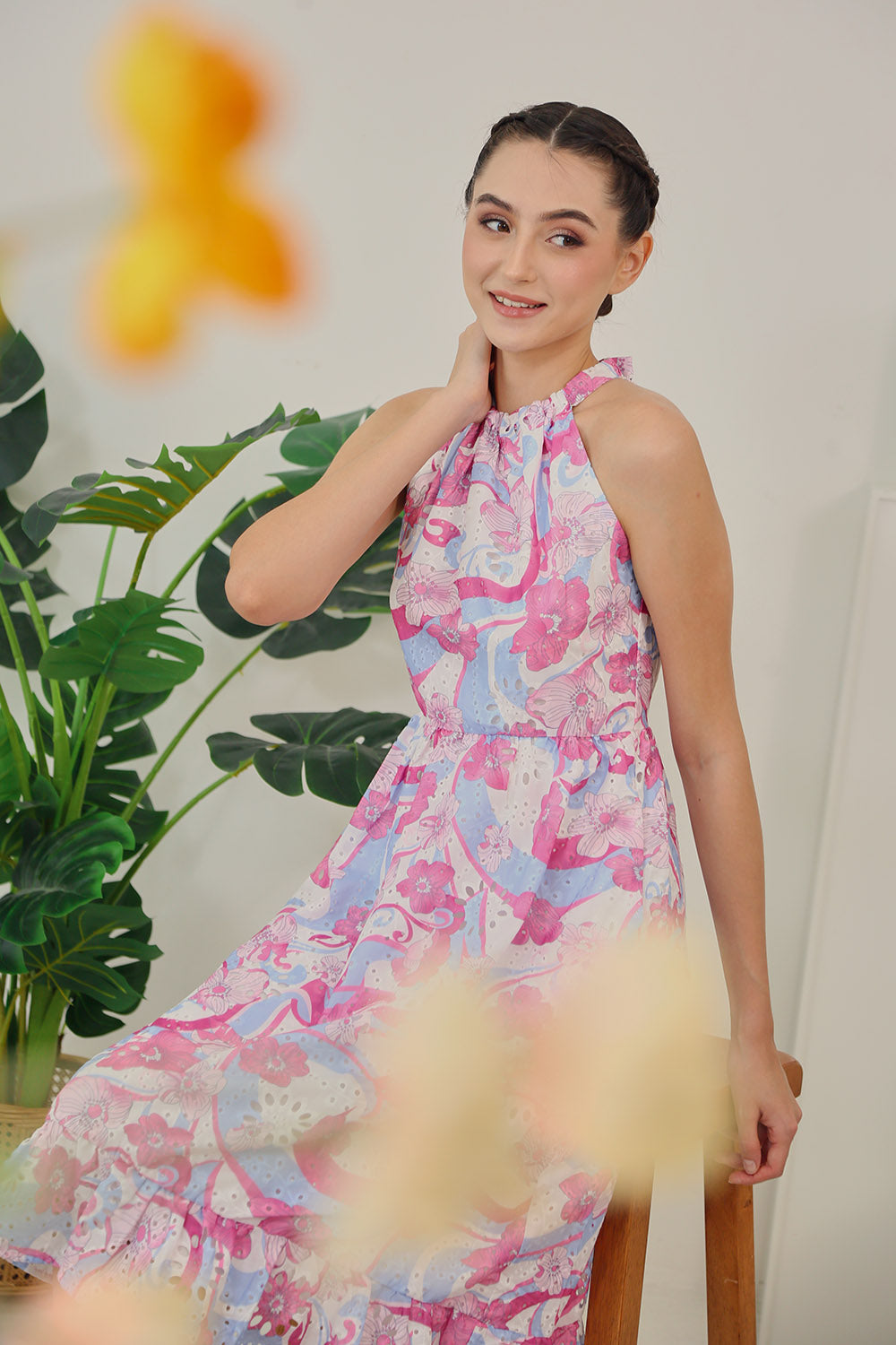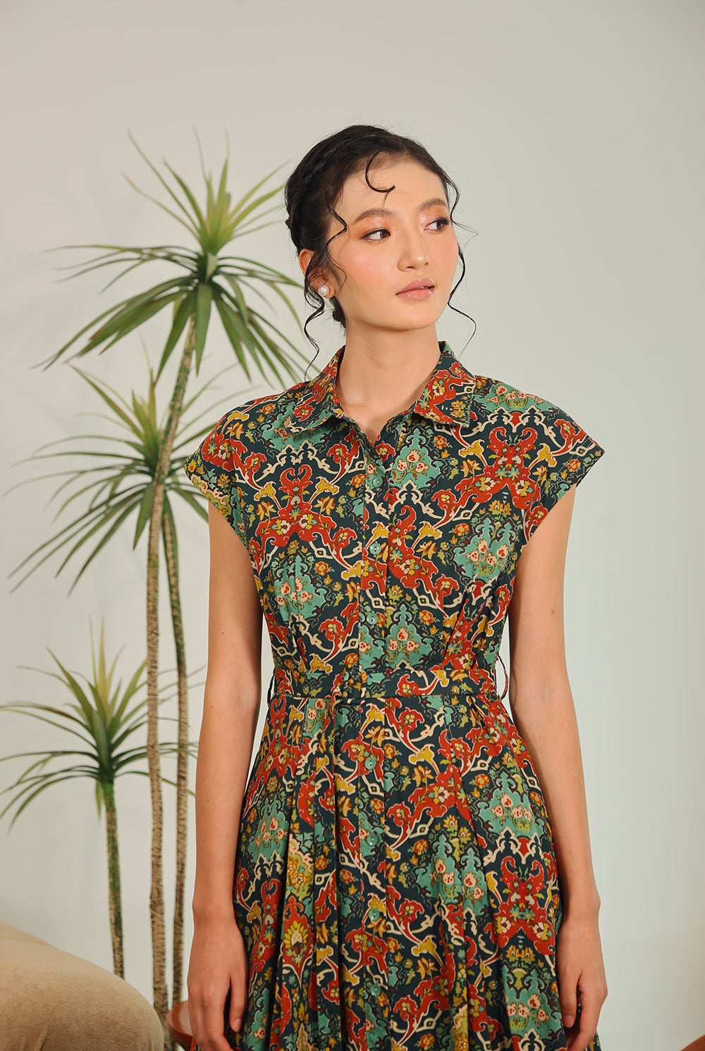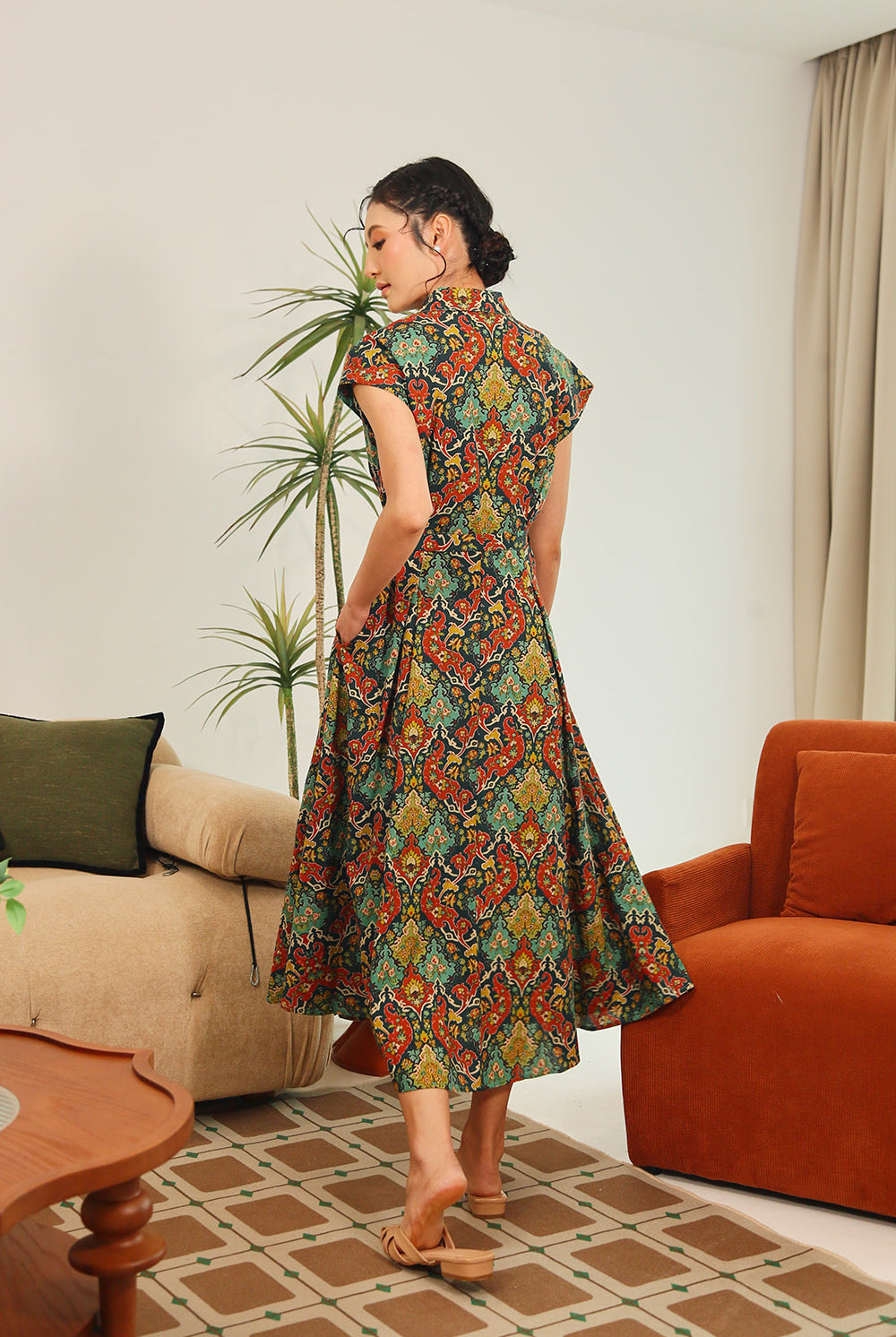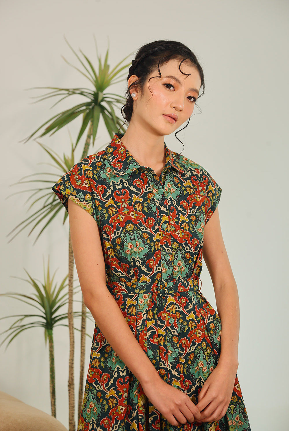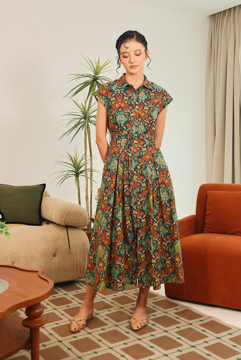 Dezza Midi Dress in Navy Blue Scenic Embroidery
