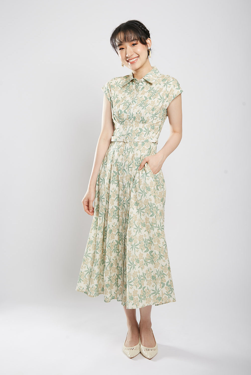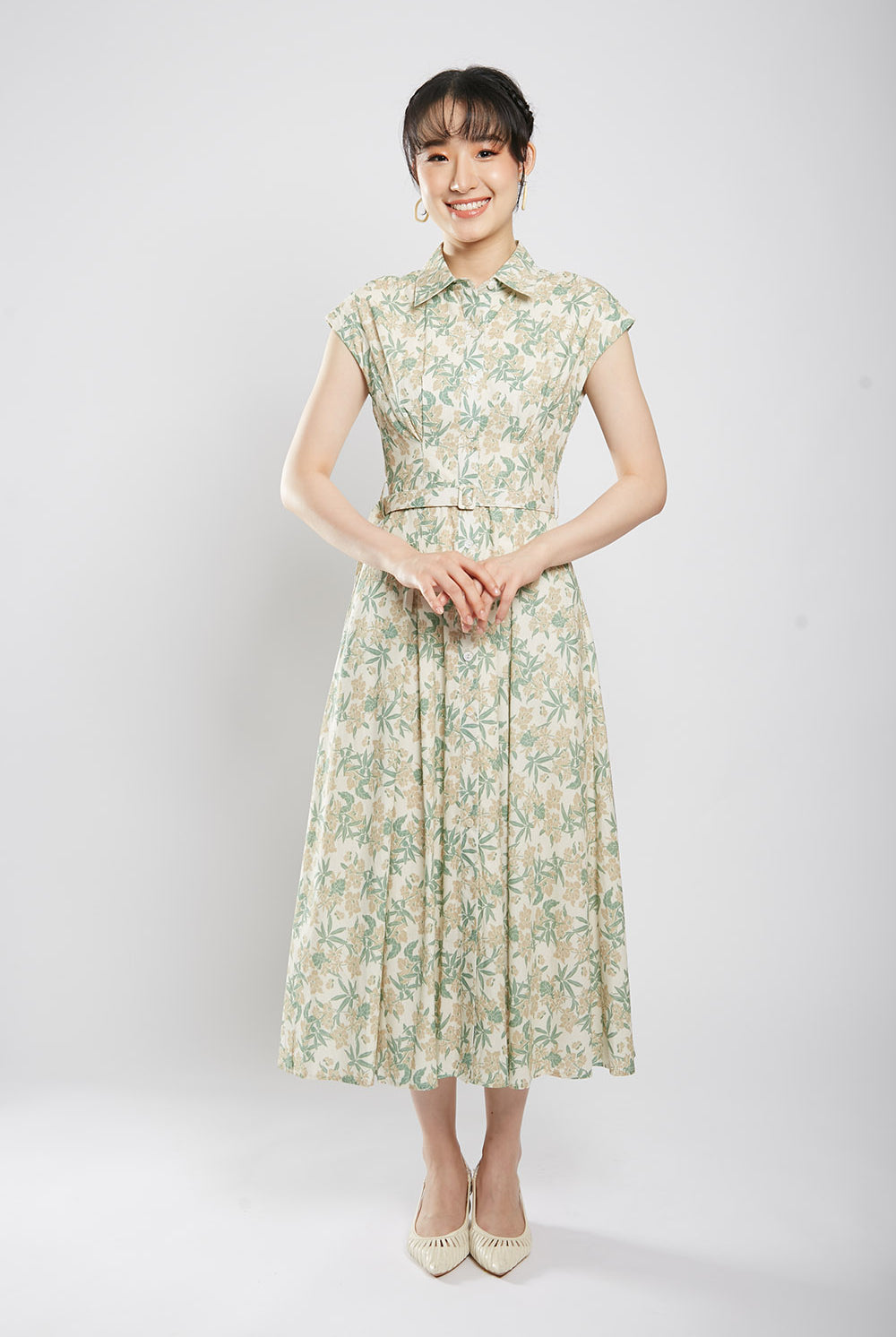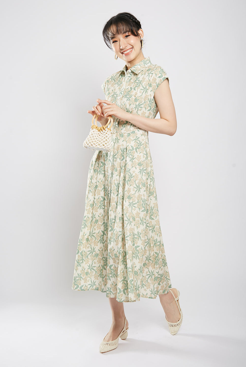 Aureline Tie-Neck Blouse in Moss Green Floral