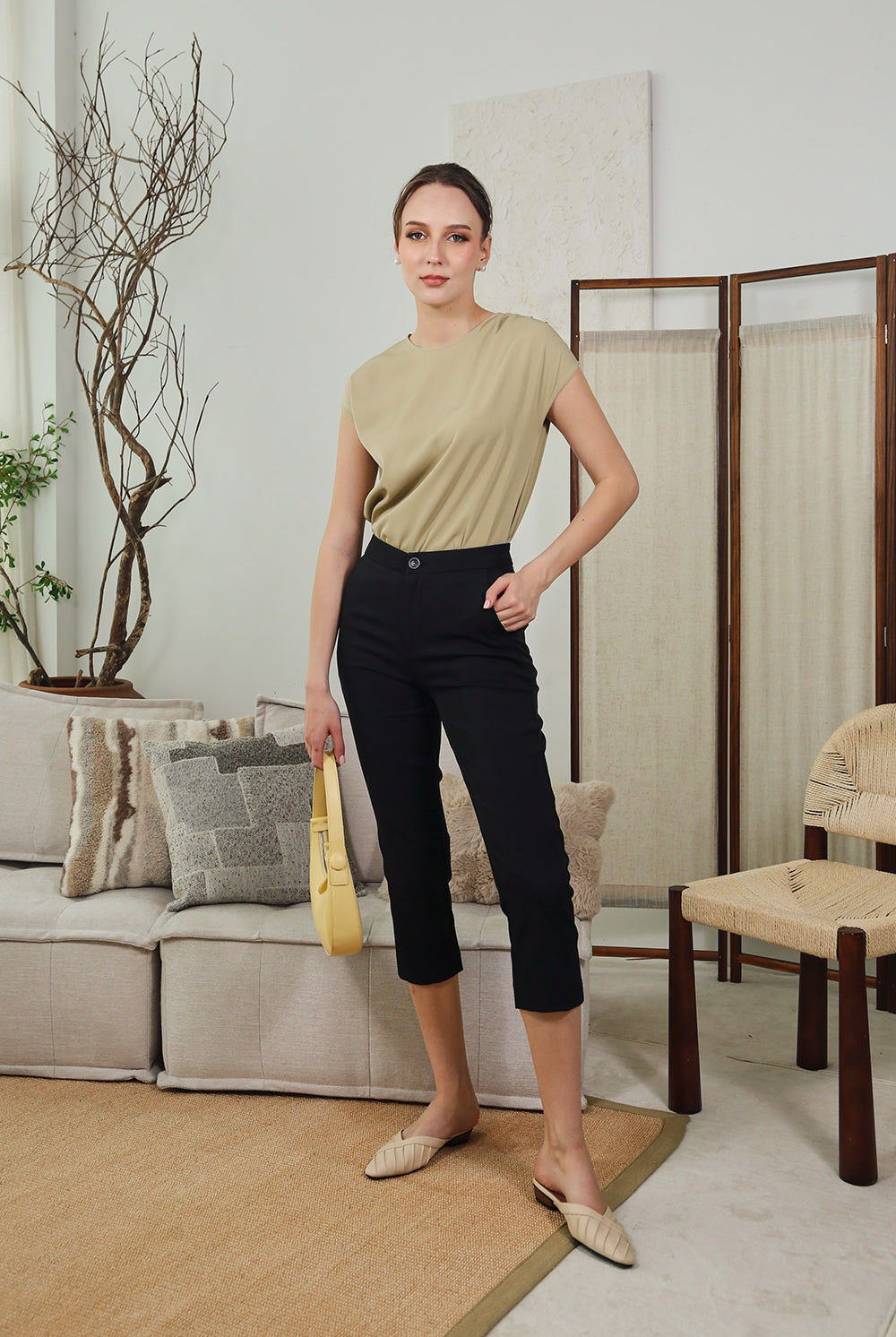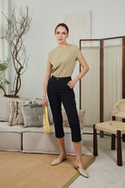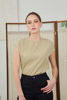 Elevate your essentials with the Arwen Pleated Shoulder Top in Soft Olive – a refined staple designed for timeless versatility. Crafted from a soft, fluid fabric, this cap-sleeve top features subtle pleats at the shoulders that add just the right amount of structure to its clean, relaxed silhouette. The back keyhole closure offers an elegant finish, making it ideal for both workdays and weekends. Style it effortlessly with tailored pants or flowy skirts for a polished look.