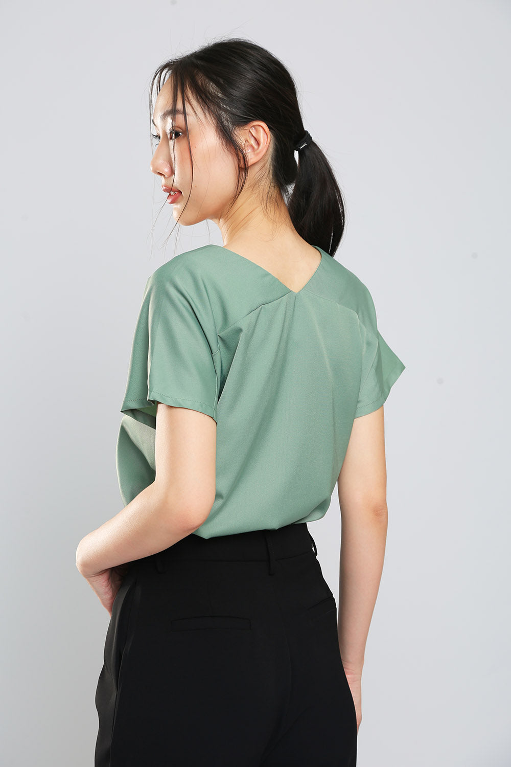 Effortlessly upgrade your wardrobe with our slip on v-neck top. Made from high-quality, easy iron polyester fabric, this piece offers both style and convenience. Perfect for any occasion, with no fussing over buttons or zippers.