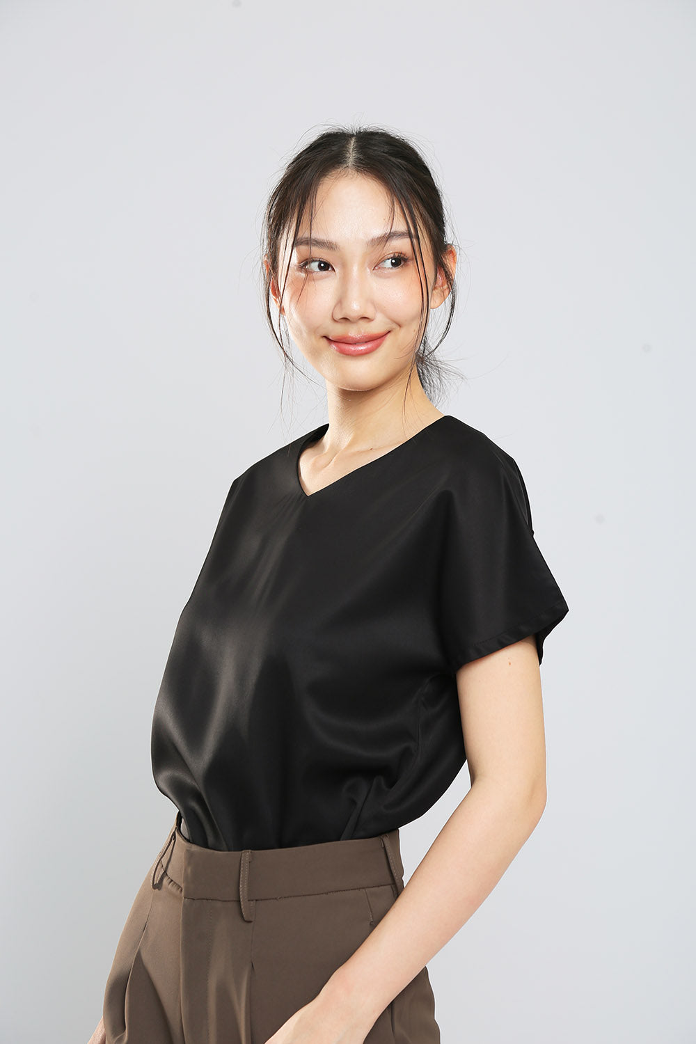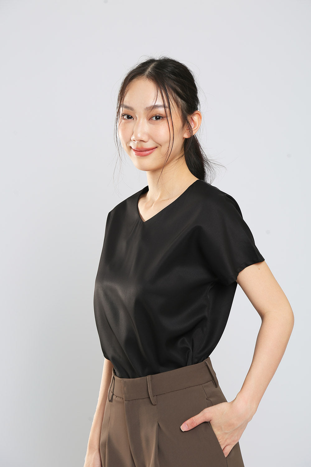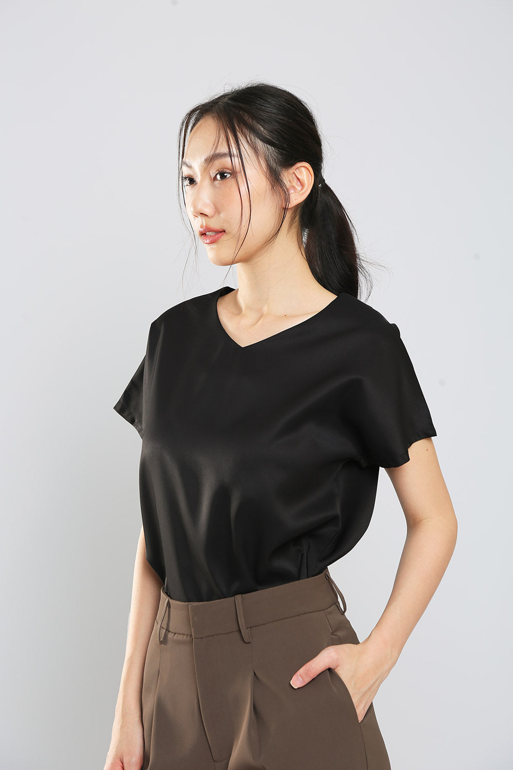 Danna V-Neck Top in Black