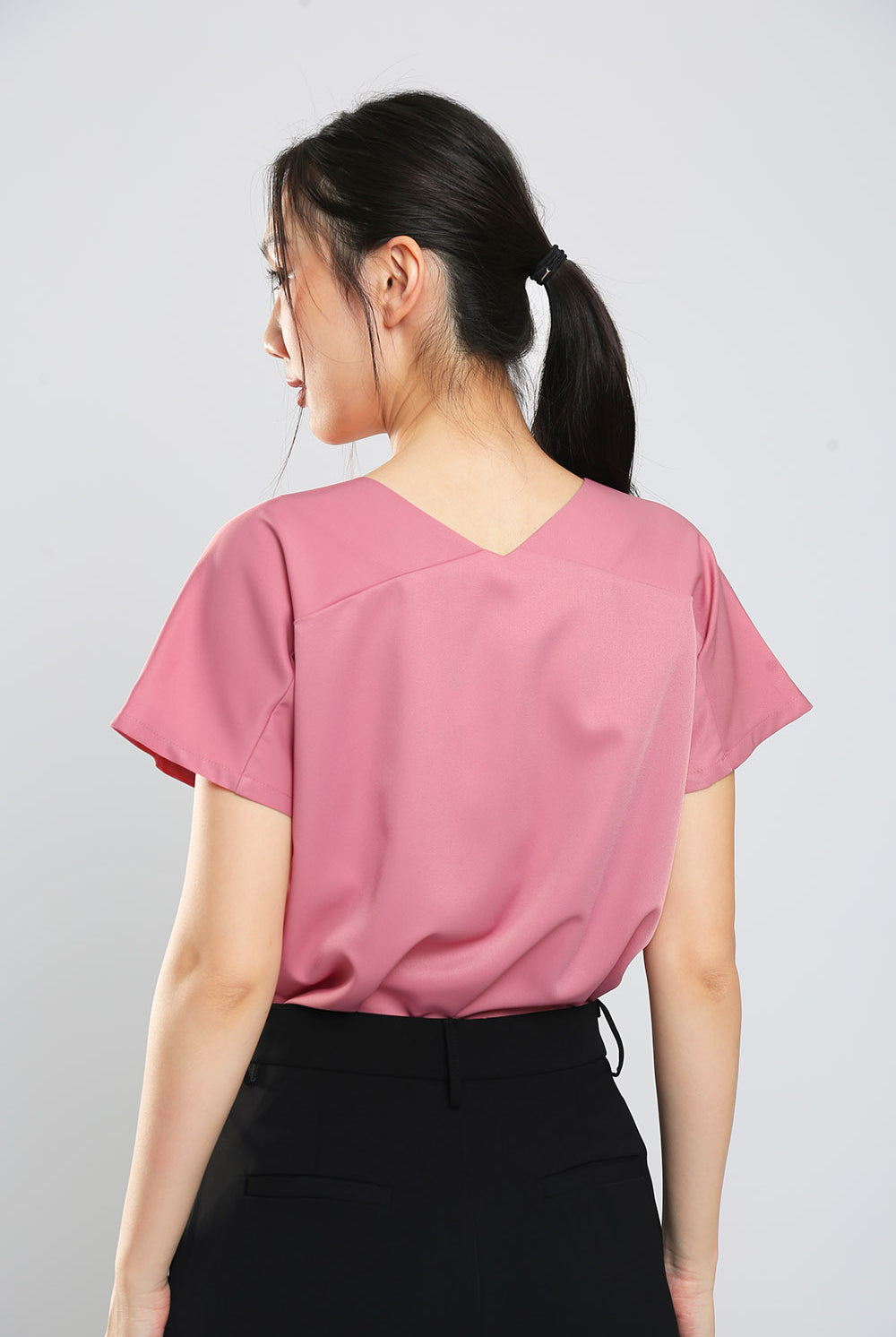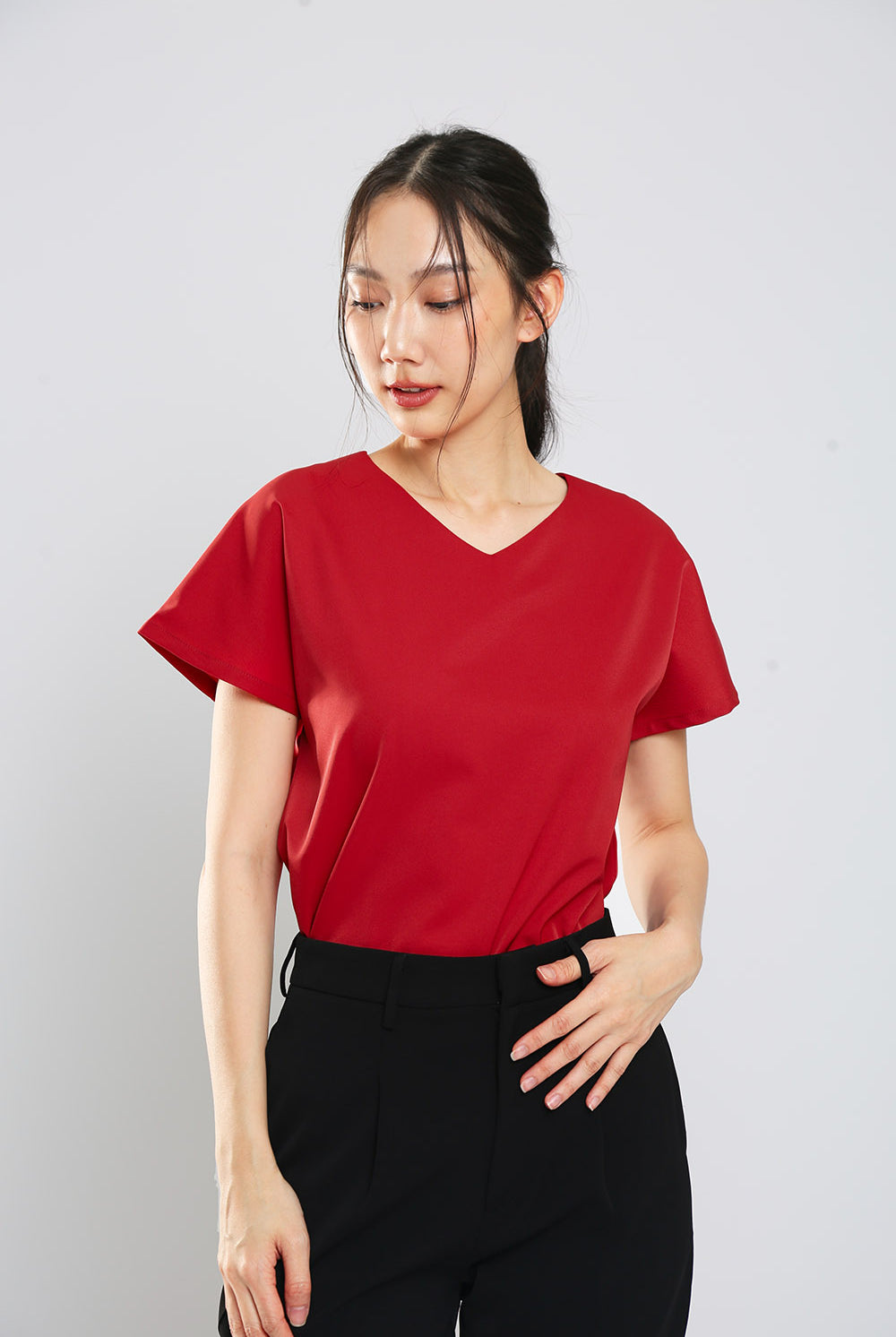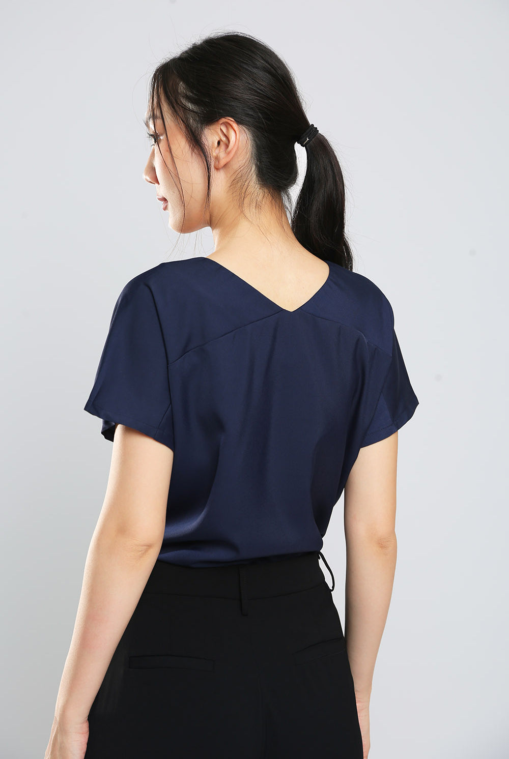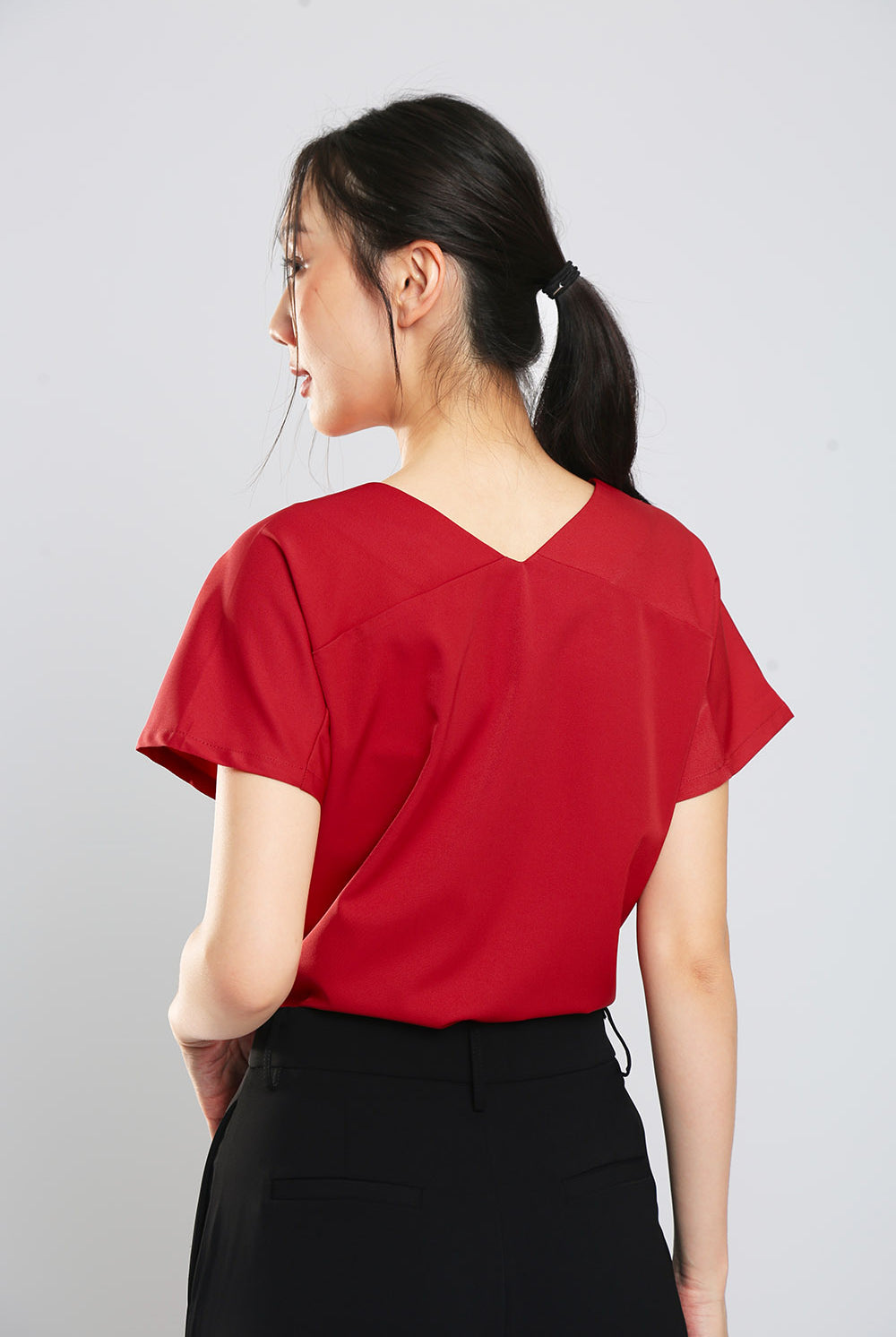 Effortlessly upgrade your wardrobe with our slip on v-neck top. Made from high-quality, easy iron polyester fabric, this piece offers both style and convenience. Perfect for any occasion, with no fussing over buttons or zippers.