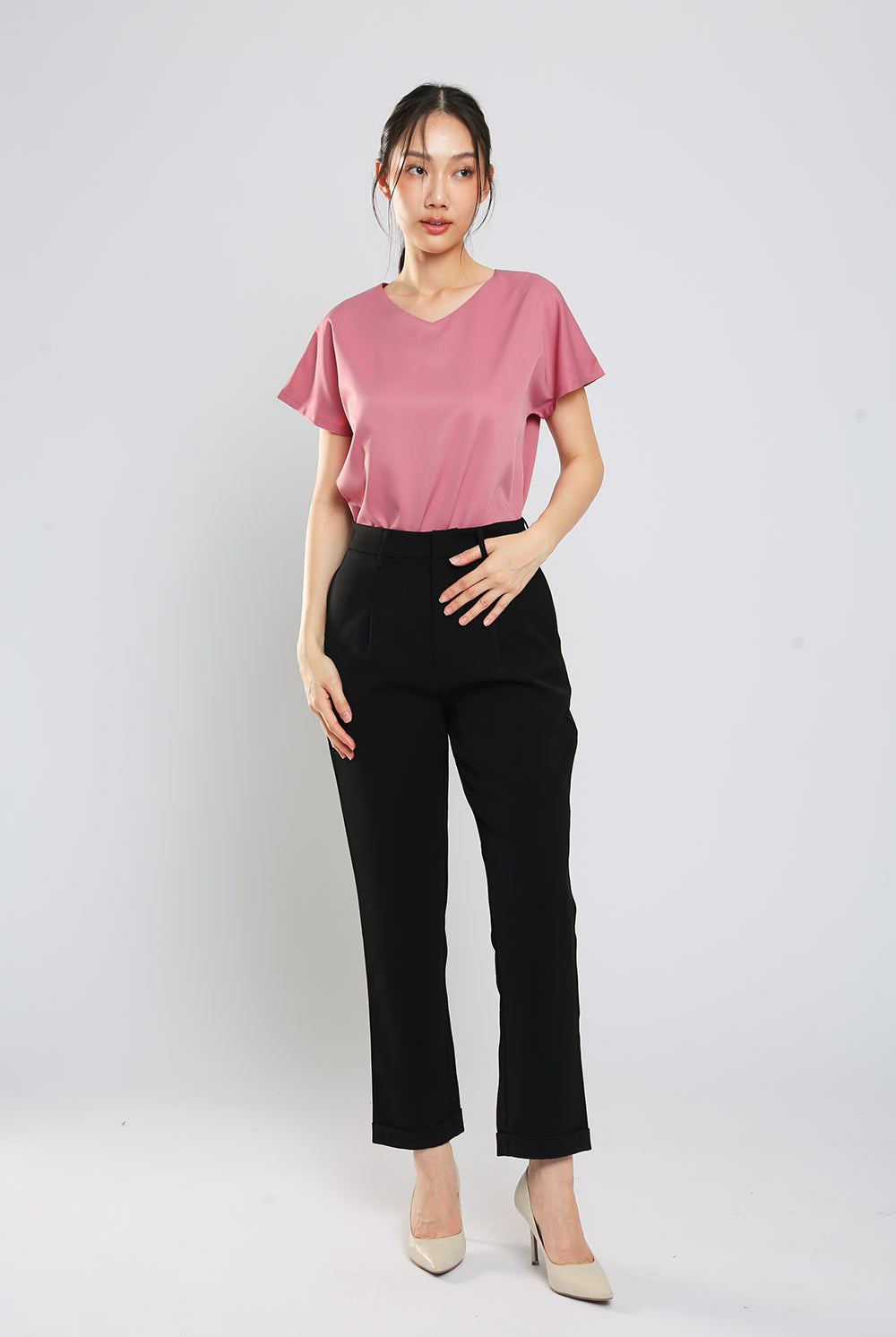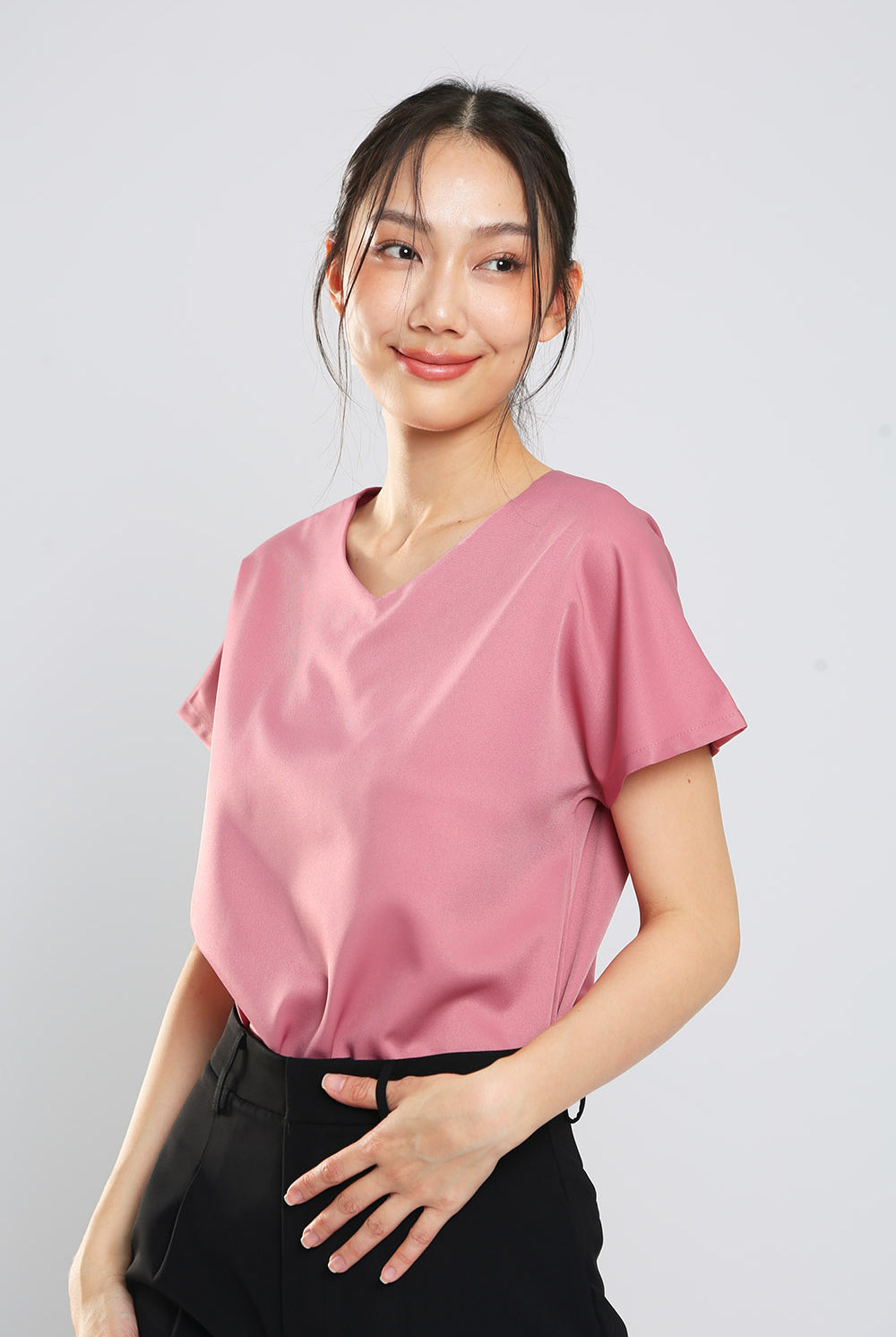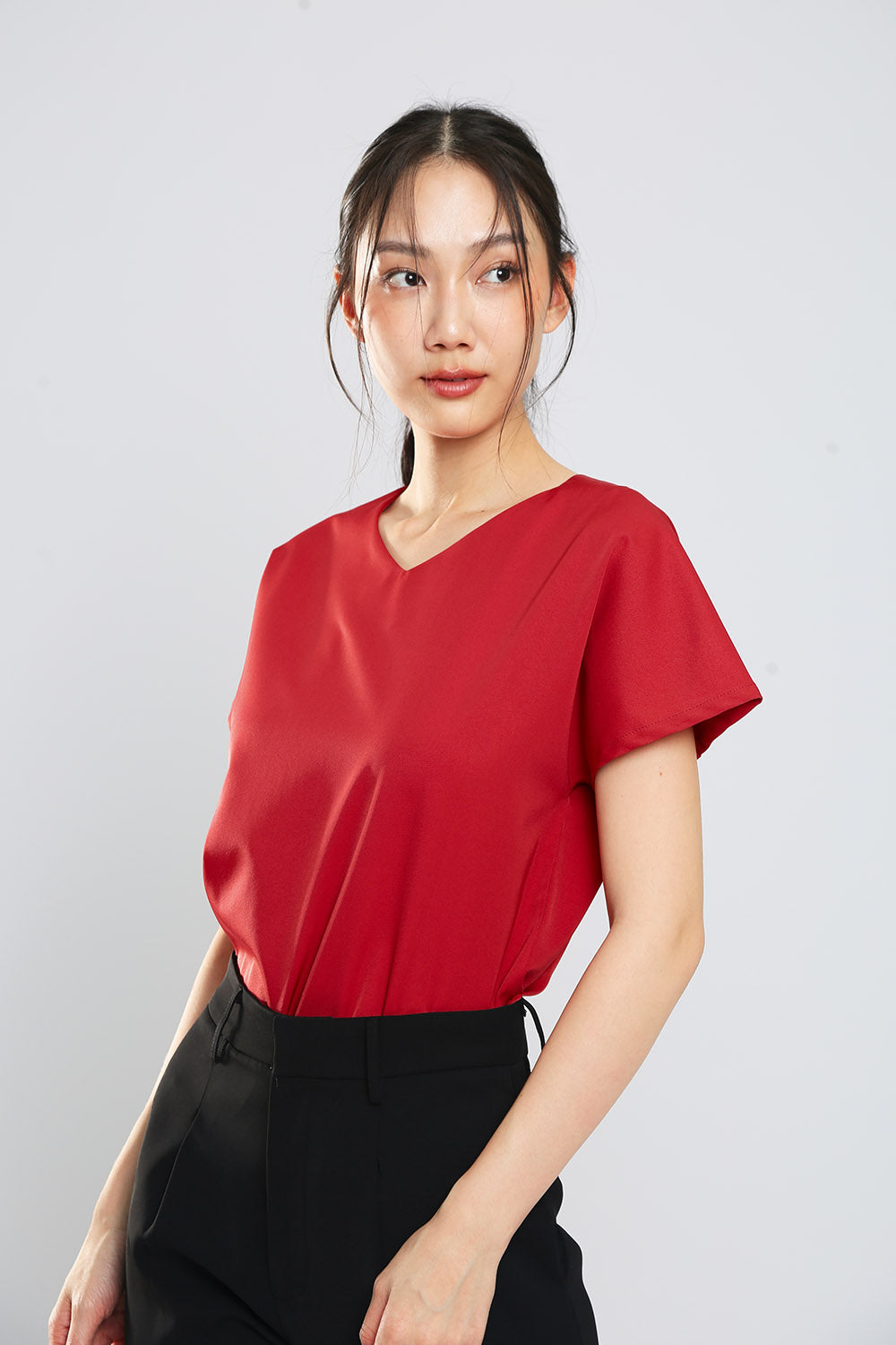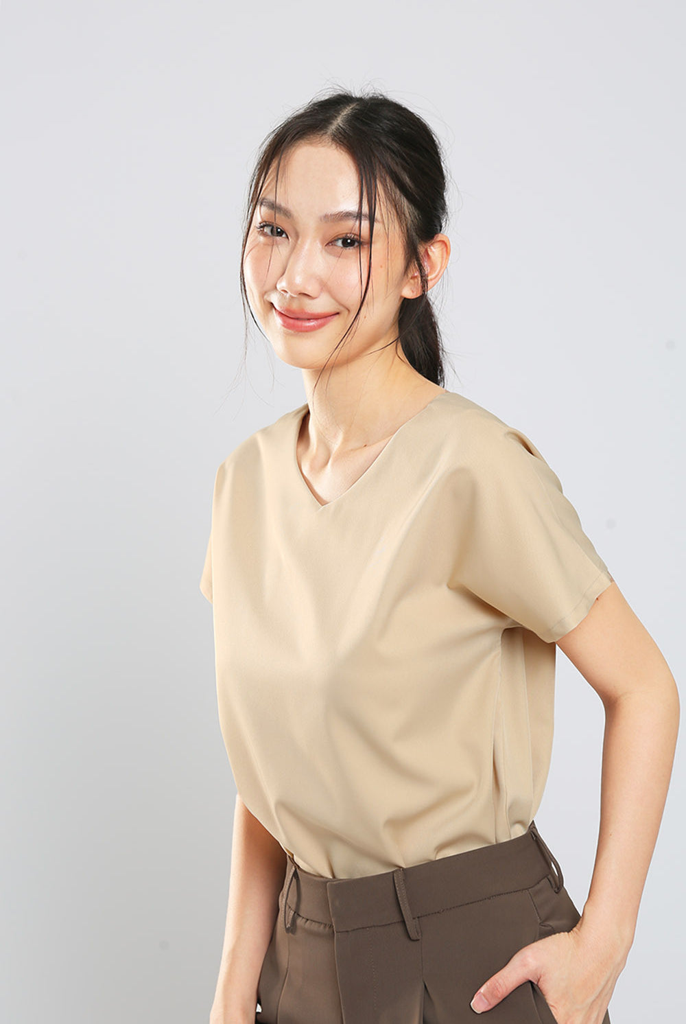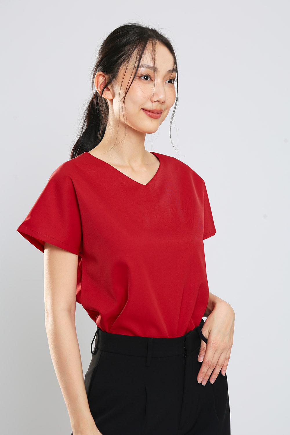 Effortlessly upgrade your wardrobe with our slip on v-neck top. Made from high-quality, easy iron polyester fabric, this piece offers both style and convenience. Perfect for any occasion, with no fussing over buttons or zippers.