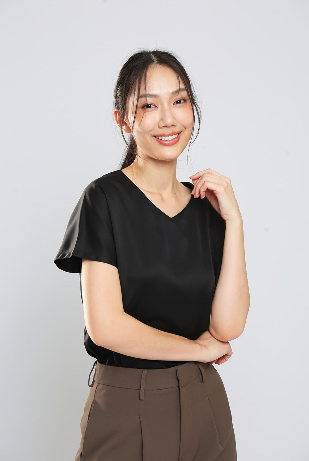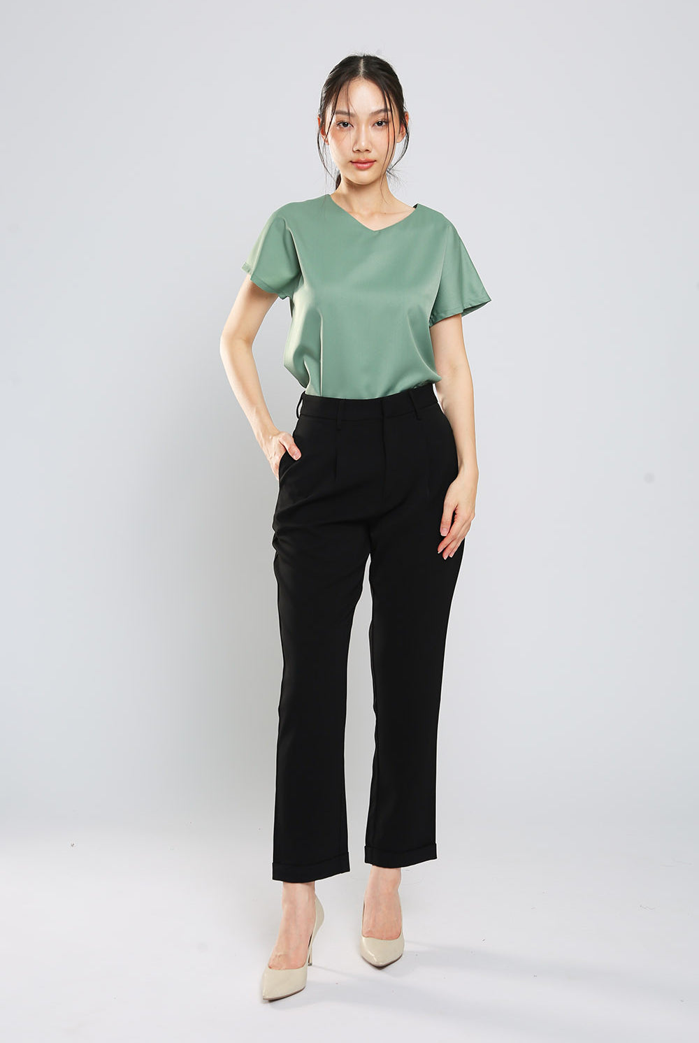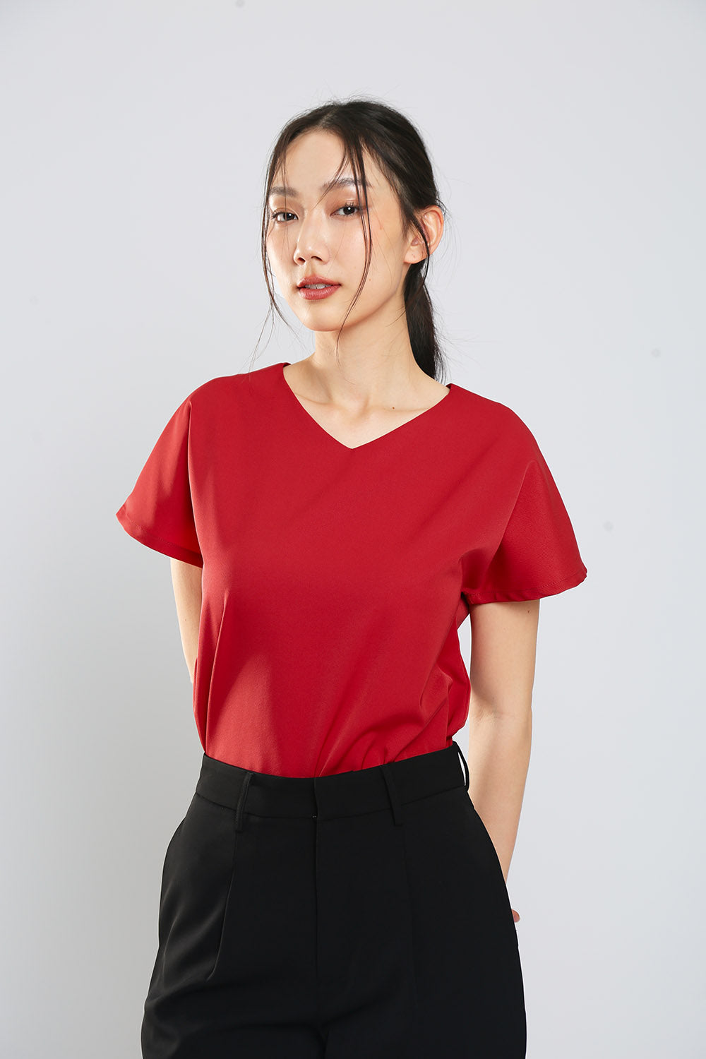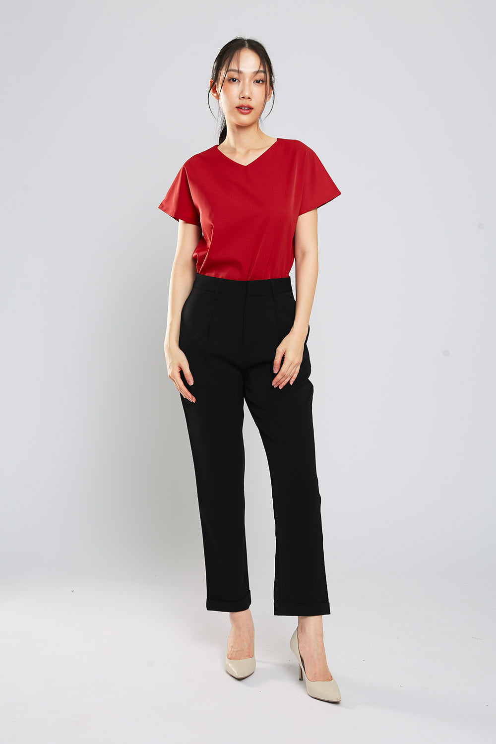Effortlessly upgrade your wardrobe with our slip on v-neck top. Made from high-quality, easy iron polyester fabric, this piece offers both style and convenience. Perfect for any occasion, with no fussing over buttons or zippers.