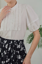 Eloise Ruffle Detail Puff Sleeve Blouse in White