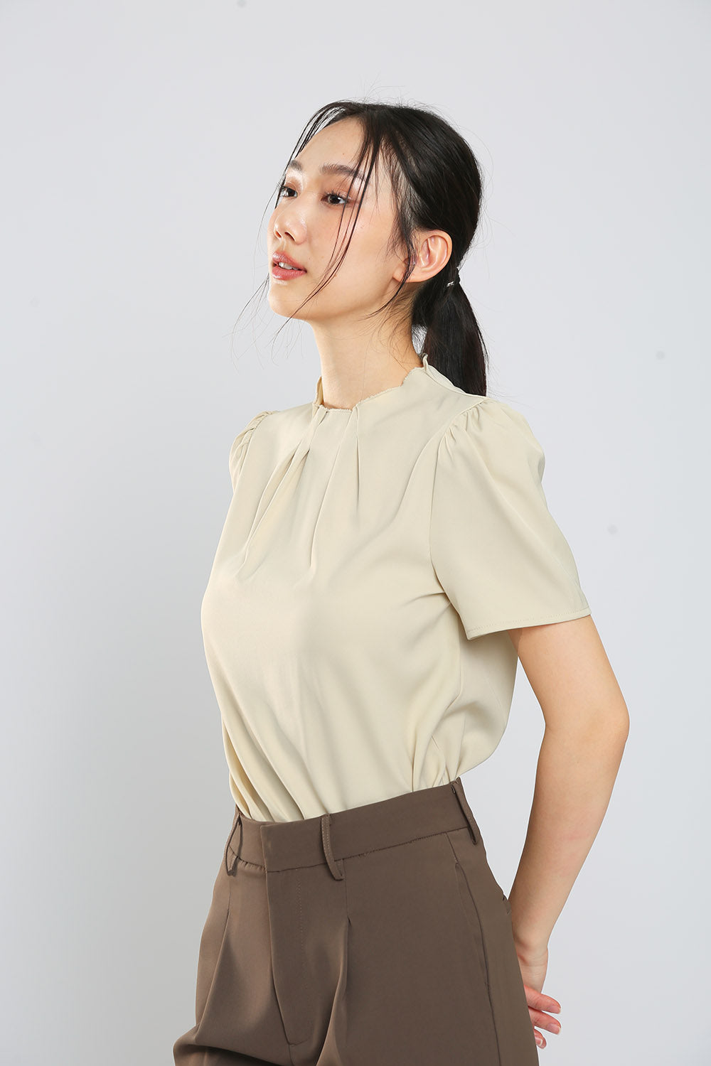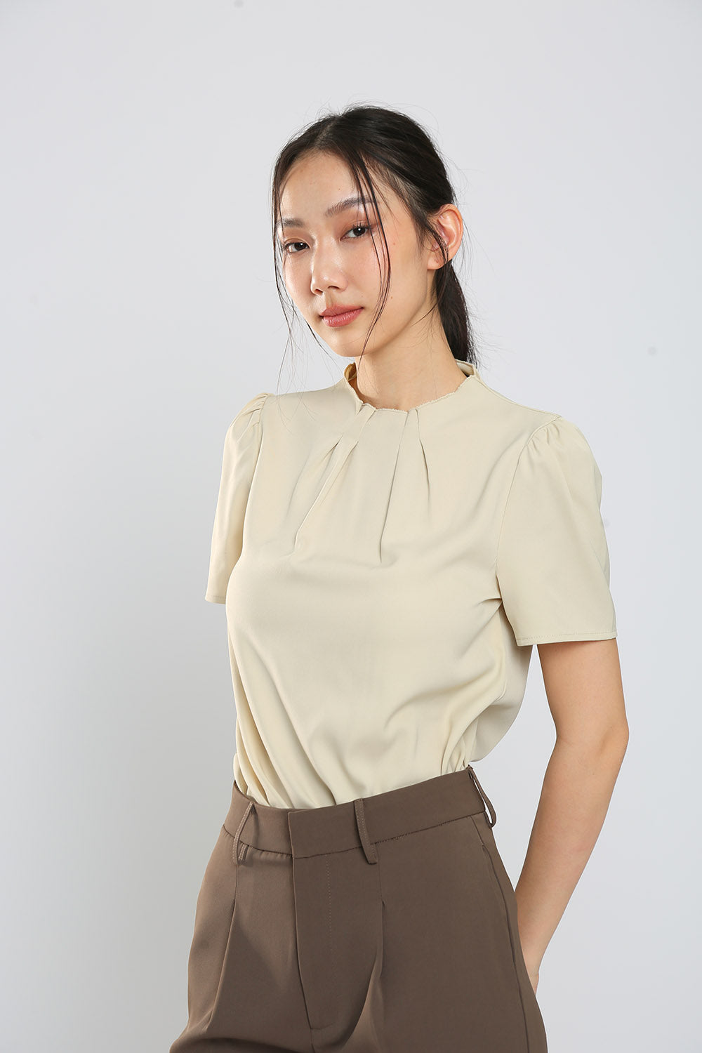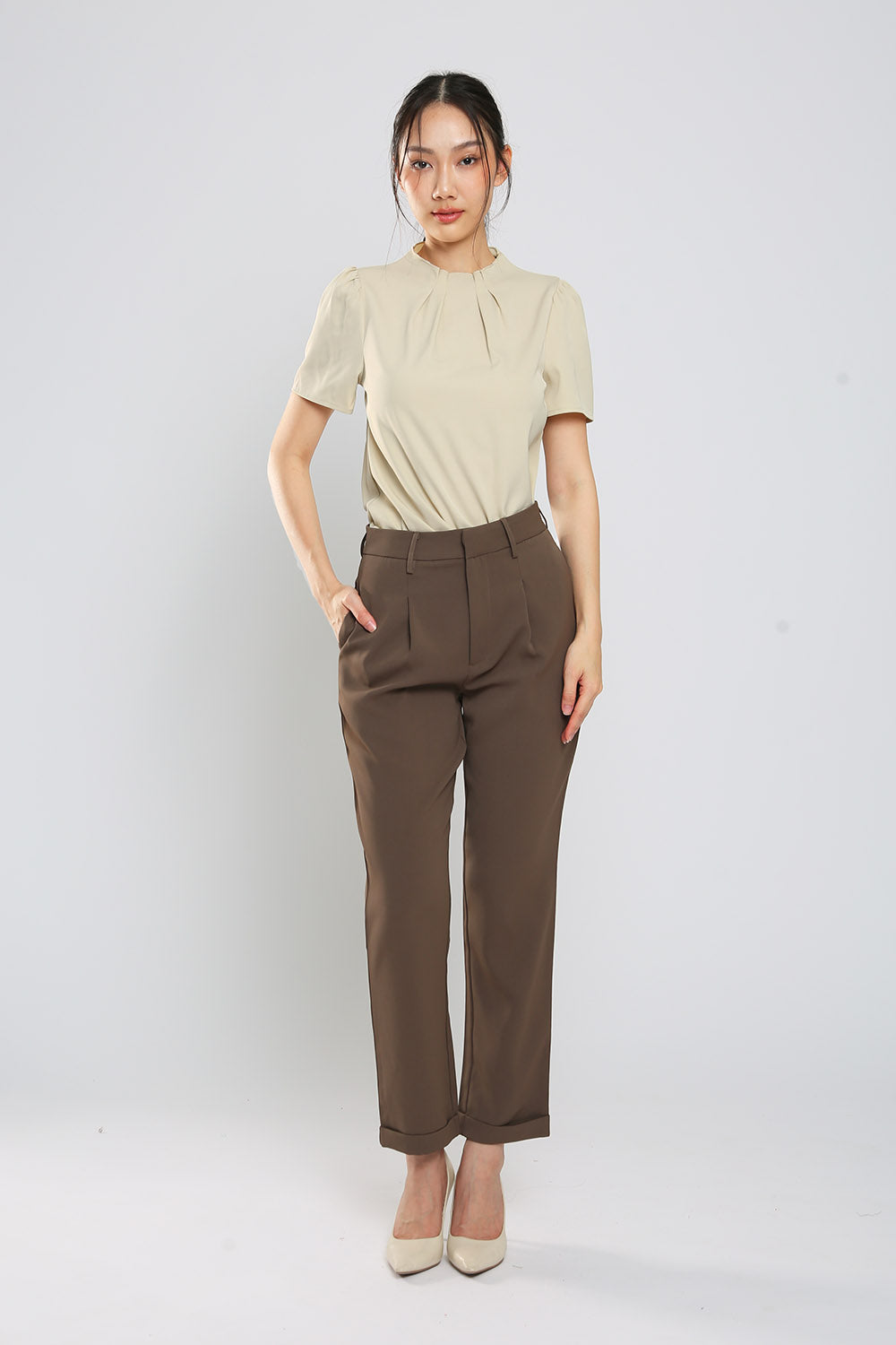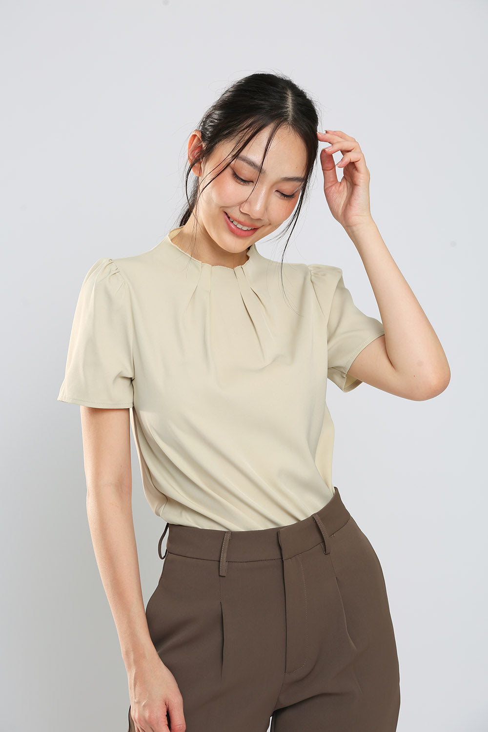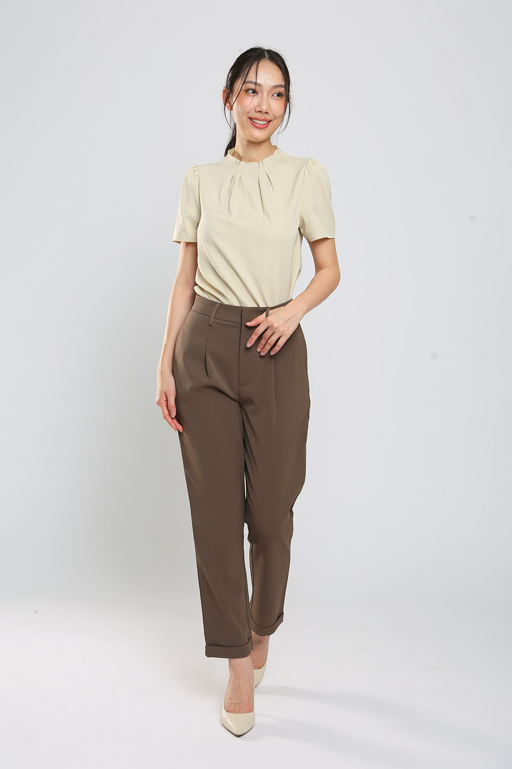 The Odell Blouse in Dust Pink offers a sleek and effortless style with its front pleat details and slip on wear. The back zip closure adds a touch of sophistication. This blouse is the perfect addition to any professional wardrobe, making it easy to transition from day to night with ease.