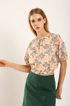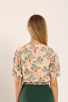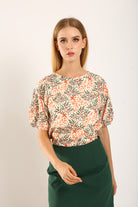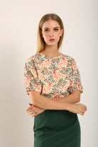 Brighten your wardrobe with the Rania Top, featuring a lively mandarin floral print that exudes charm and freshness. This fully lined top offers a comfortable and flattering fit, ensuring ease throughout the day. The elasticized hem and puffed sleeves provide a relaxed yet chic silhouette, while the subtle back button closure adds a refined finishing touch.