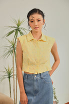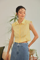 Amina Sleeveless Shirt in Yellow Gingham Top