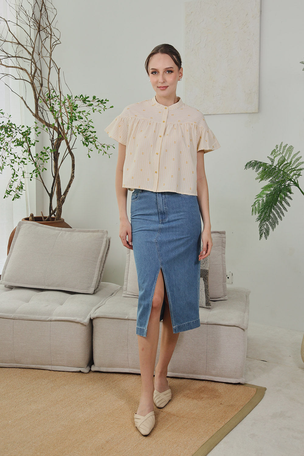 Pair it with your favourite blouses for a look that’s effortlessly chic — we especially love it with the Emari Embroidered Stripe Blouse in Honey Cream for a fresh, casual ensemble.