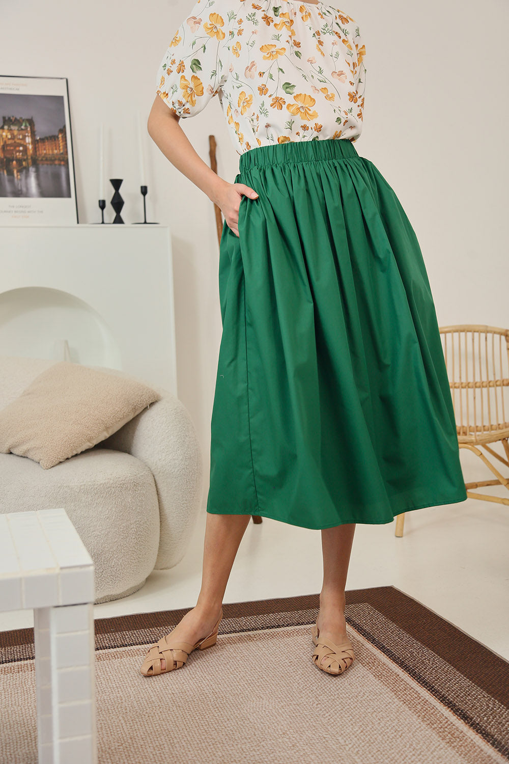 Eleanor Flowy Maxi Skirt in Forest Green