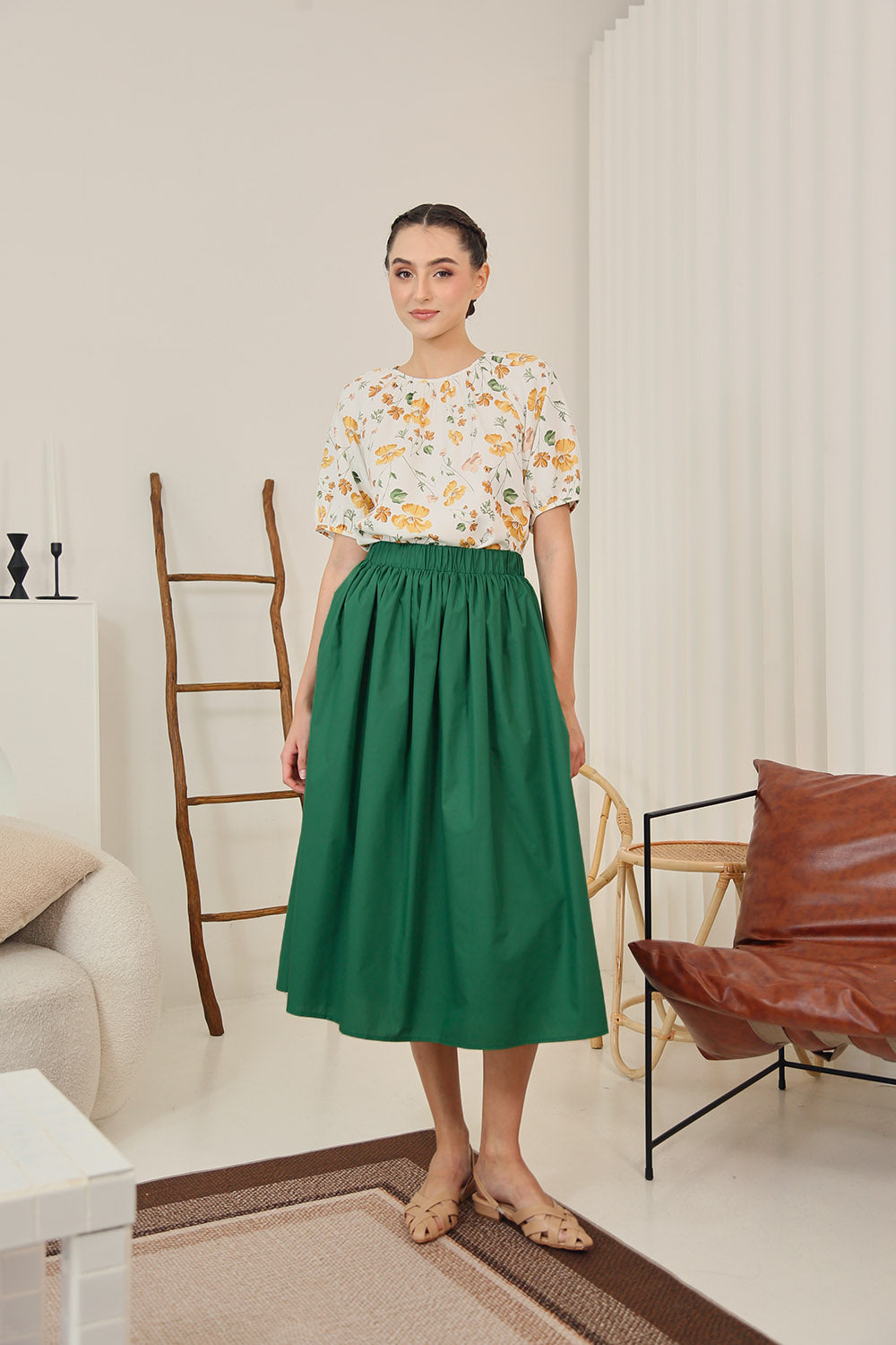 Timeless elegance meets everyday ease with the Eleanor Flowy Maxi Skirt. Crafted from soft, breathable polyester fabric, this fully lined skirt drapes beautifully, ensuring effortless movement and all-day comfort. Designed with a gathered waistband for a flattering fit, it also features functional side pockets, adding a touch of practicality without compromising style.