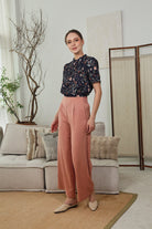 Designed to flatter and move with ease, the Mara Pants bring effortless sophistication to your wardrobe. Crafted in a rich mocha hue, these high-waisted trousers feature gentle pleats, a smooth front waistband, and stretch-back paneling for all-day comfort. The wide-leg silhouette elongates the frame while offering a relaxed, elegant drape.