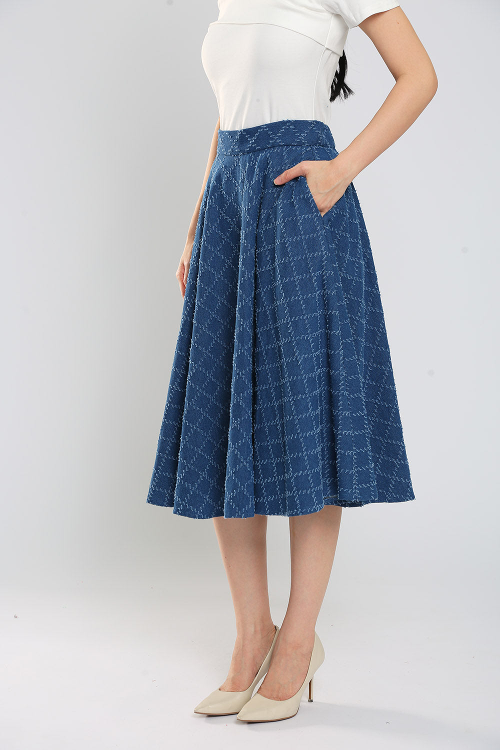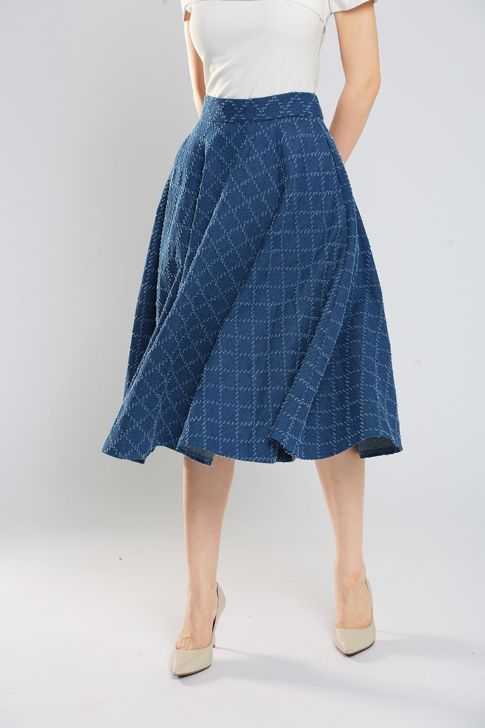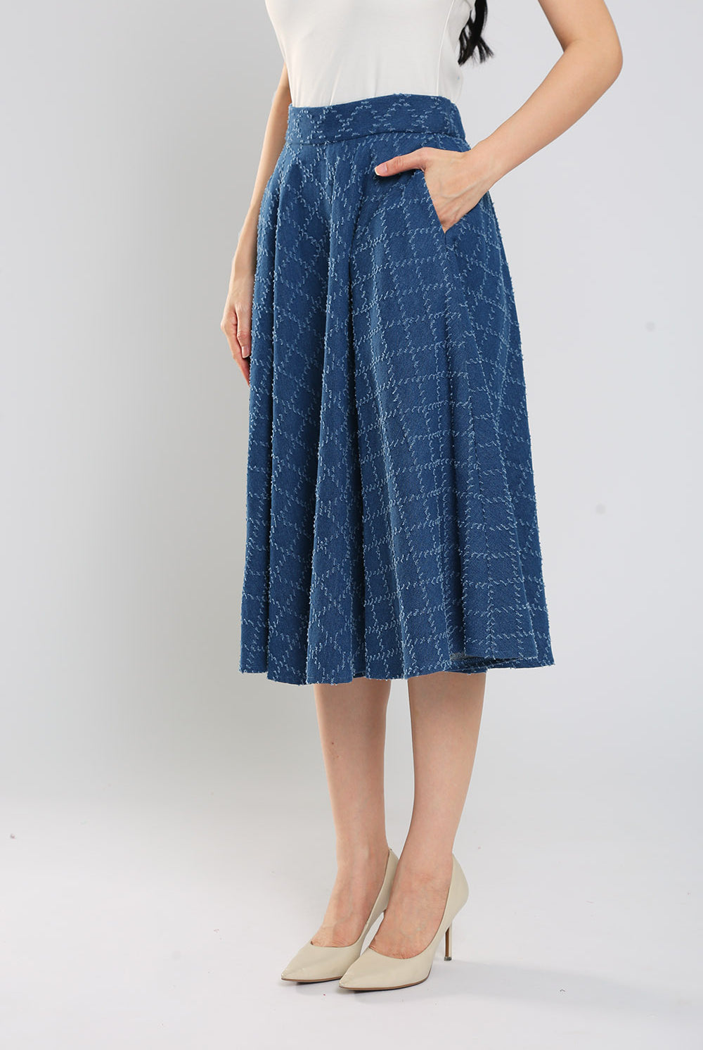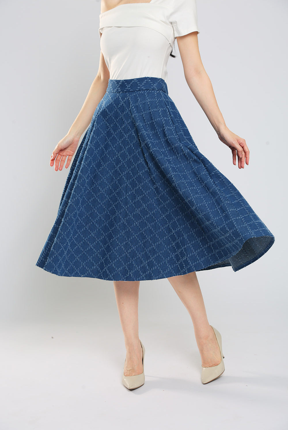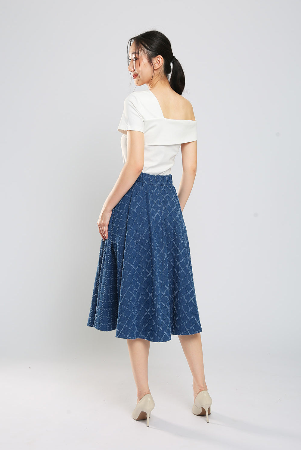Expertly crafted with high-quality contrast stitching denim fabric, the Ryland skirt delivers both durability and style. The back elasticized band provides a comfortable fit, while the side pockets offer convenience. A must-have addition to any wardrobe, perfect for any occasion.