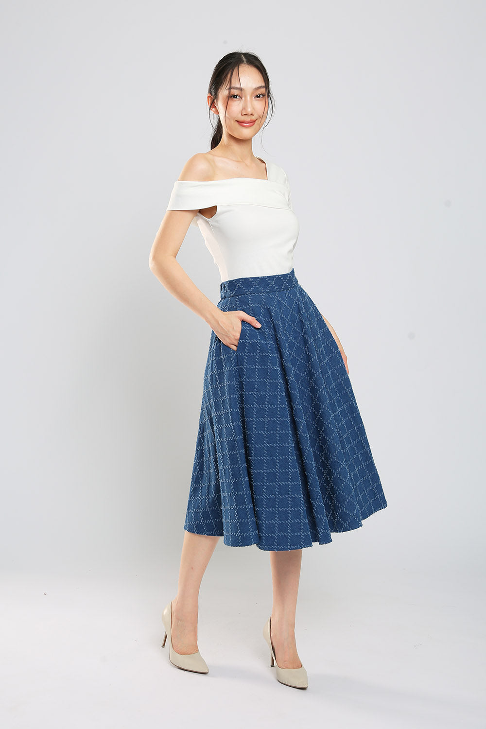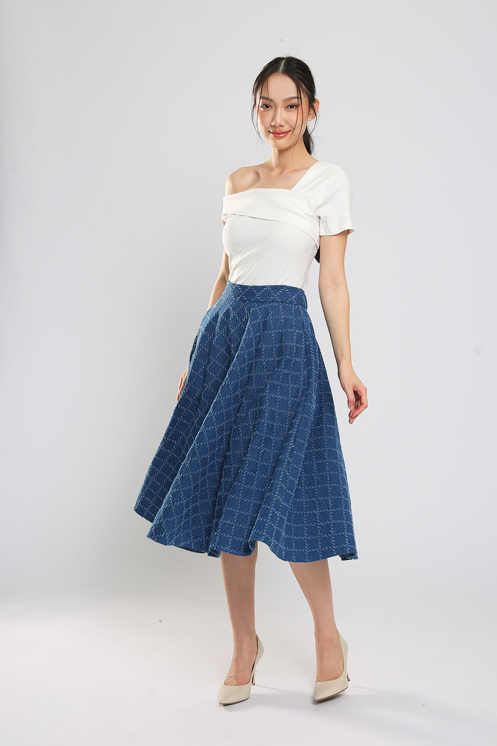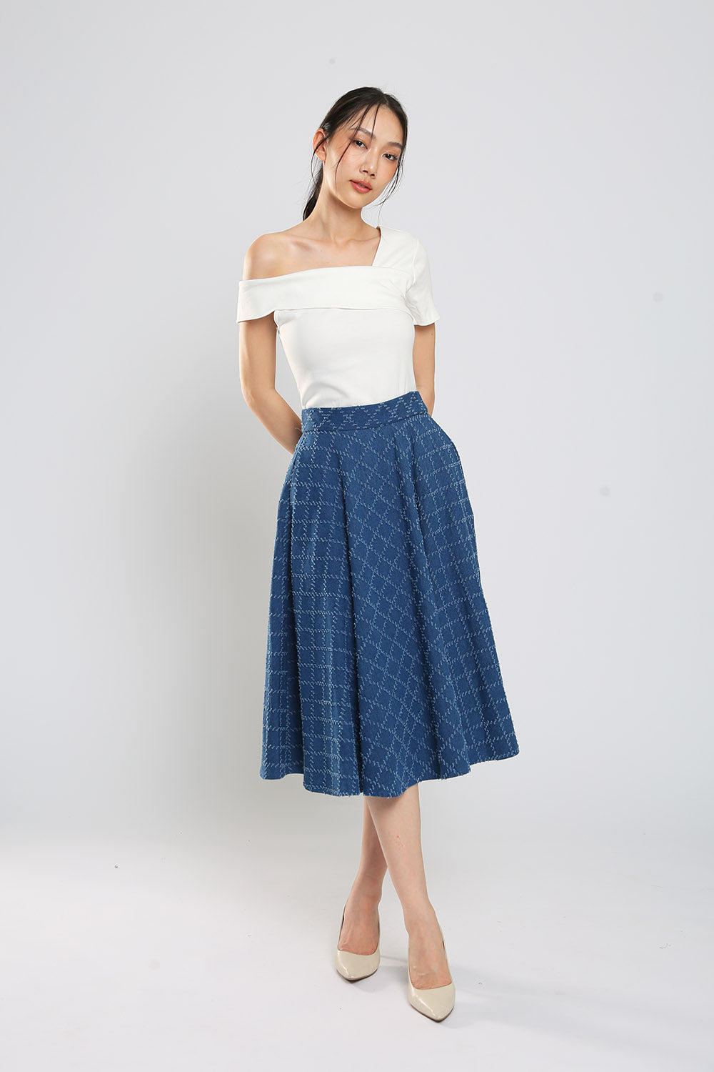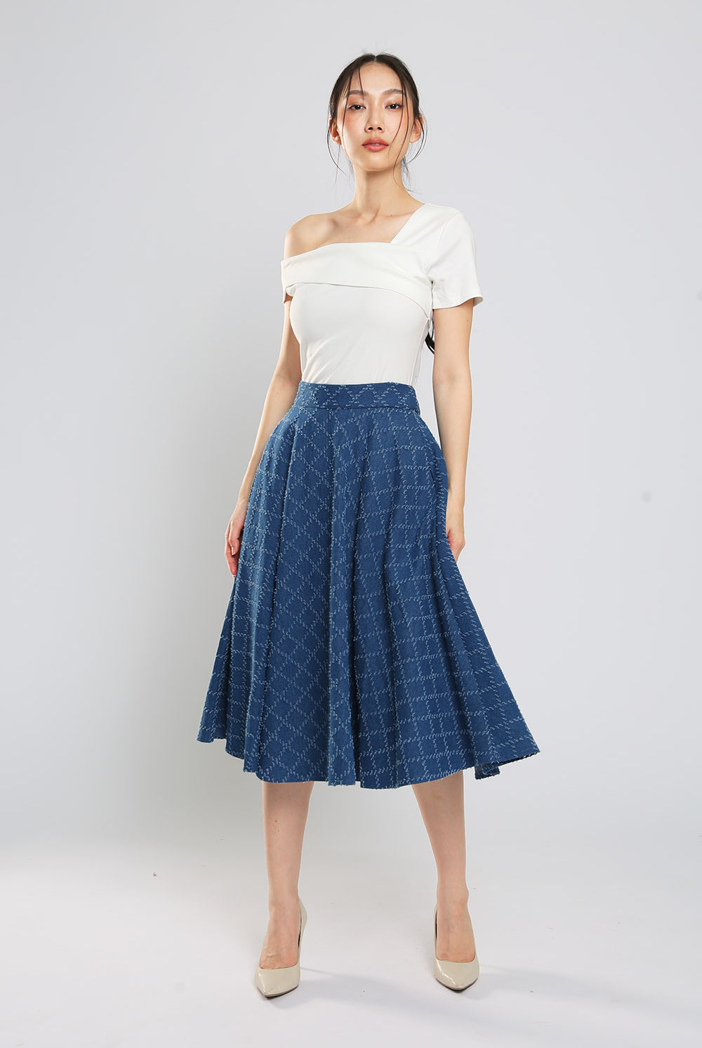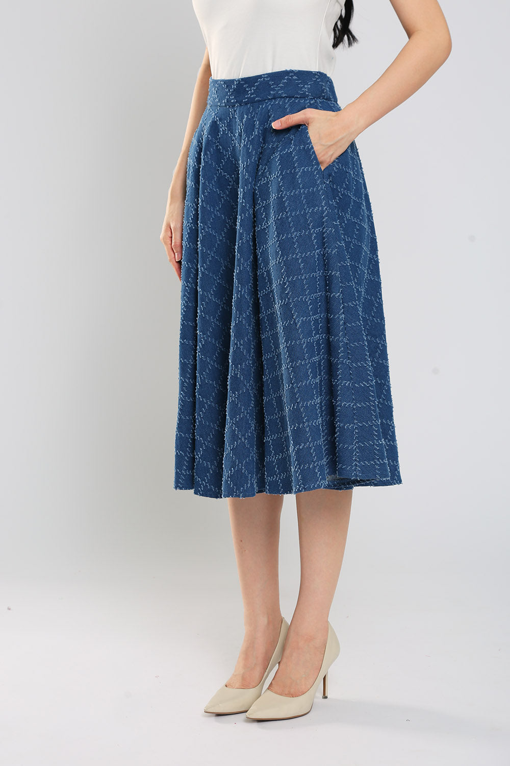Expertly crafted with high-quality contrast stitching denim fabric, the Ryland skirt delivers both durability and style. The back elasticized band provides a comfortable fit, while the side pockets offer convenience. A must-have addition to any wardrobe, perfect for any occasion.