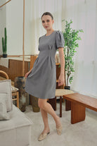 Aurelie Pleated Sleeve Dress in Gray