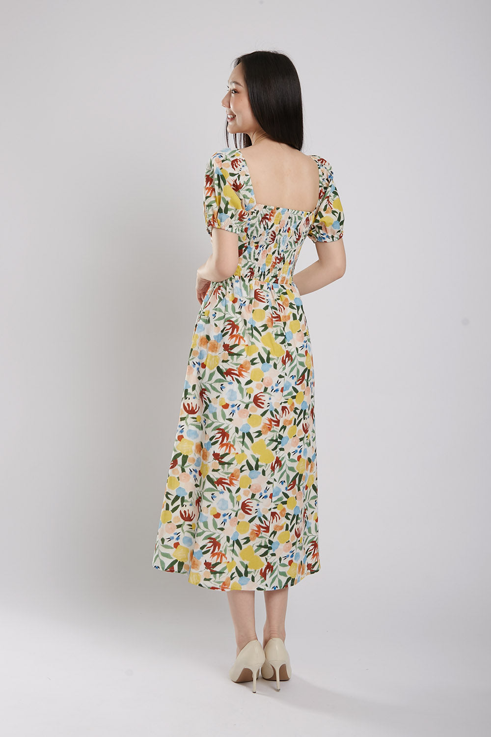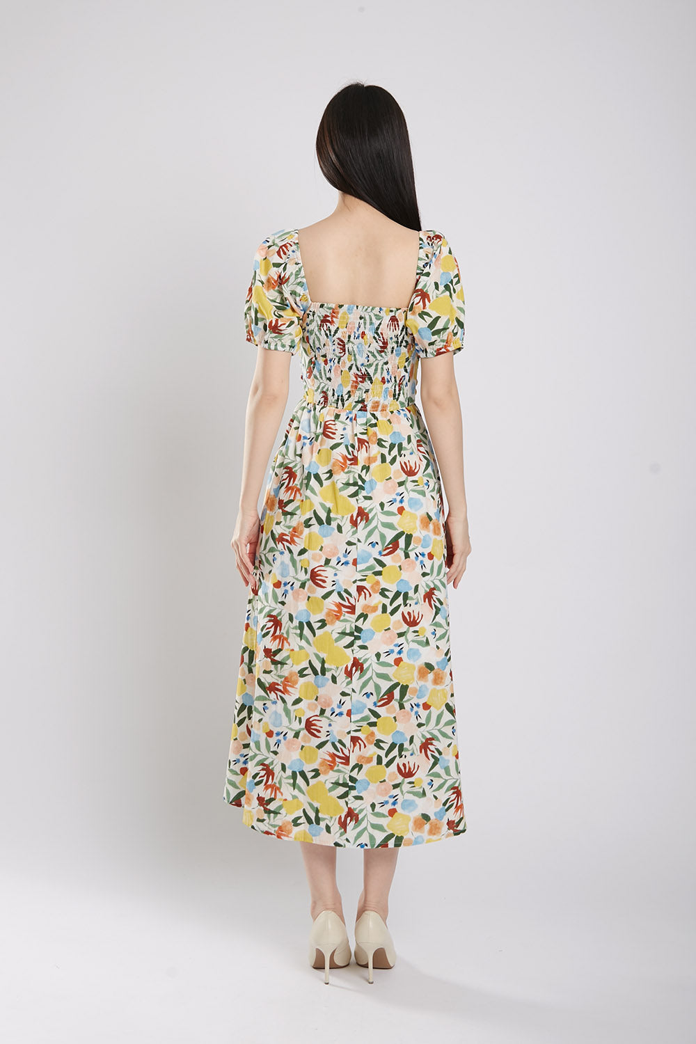 The Bernice Maxi Dress offers effortless style and comfort. Slip into it with ease thanks to the slip-on wear and side half zip closure. The full lining provides added coverage, while the side pockets are perfect for carrying essentials. The back elasticised smocked bodice and sleeve cuffs offer a flexible and flattering fit. Made of 100% cotton for a soft and breathable feel.