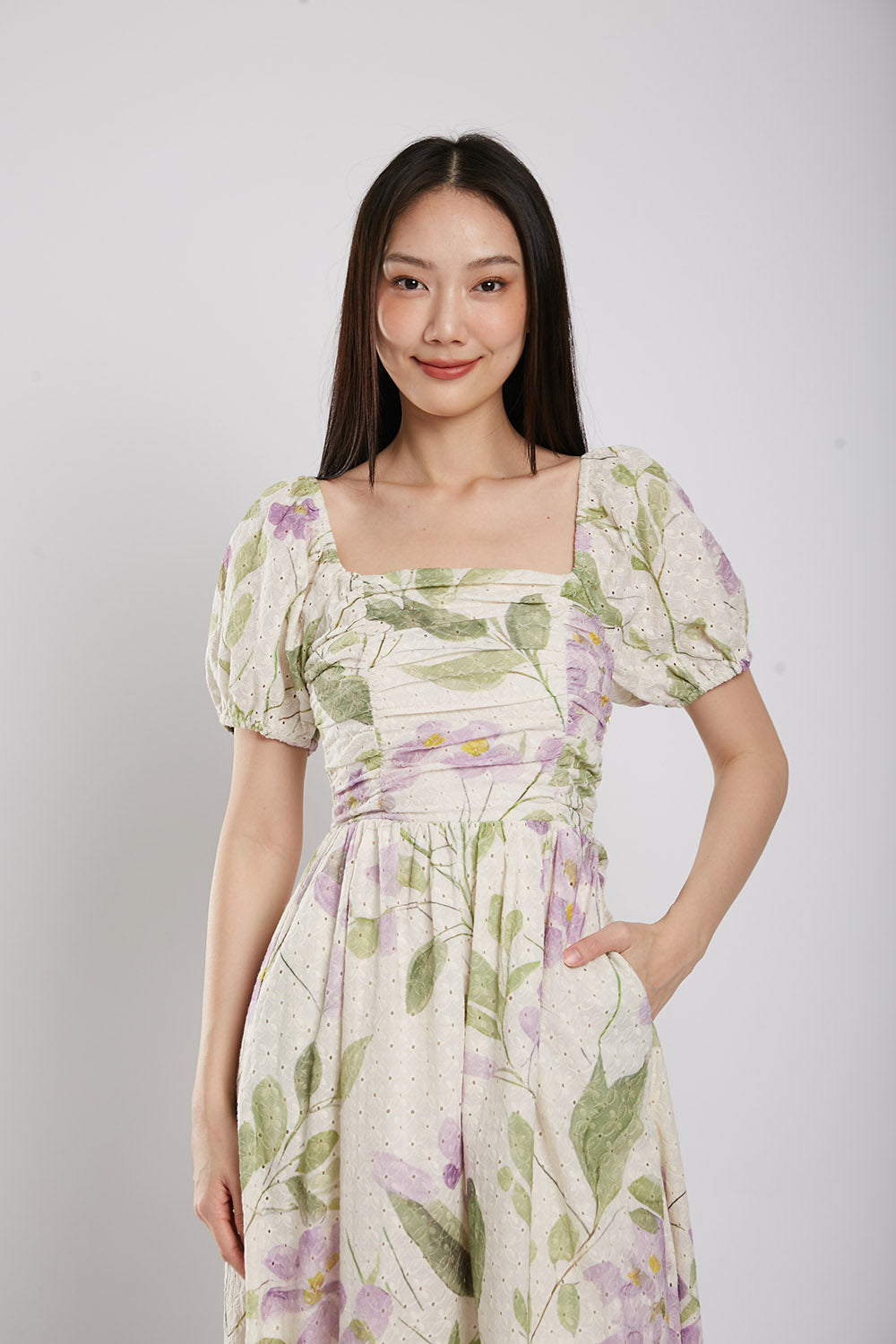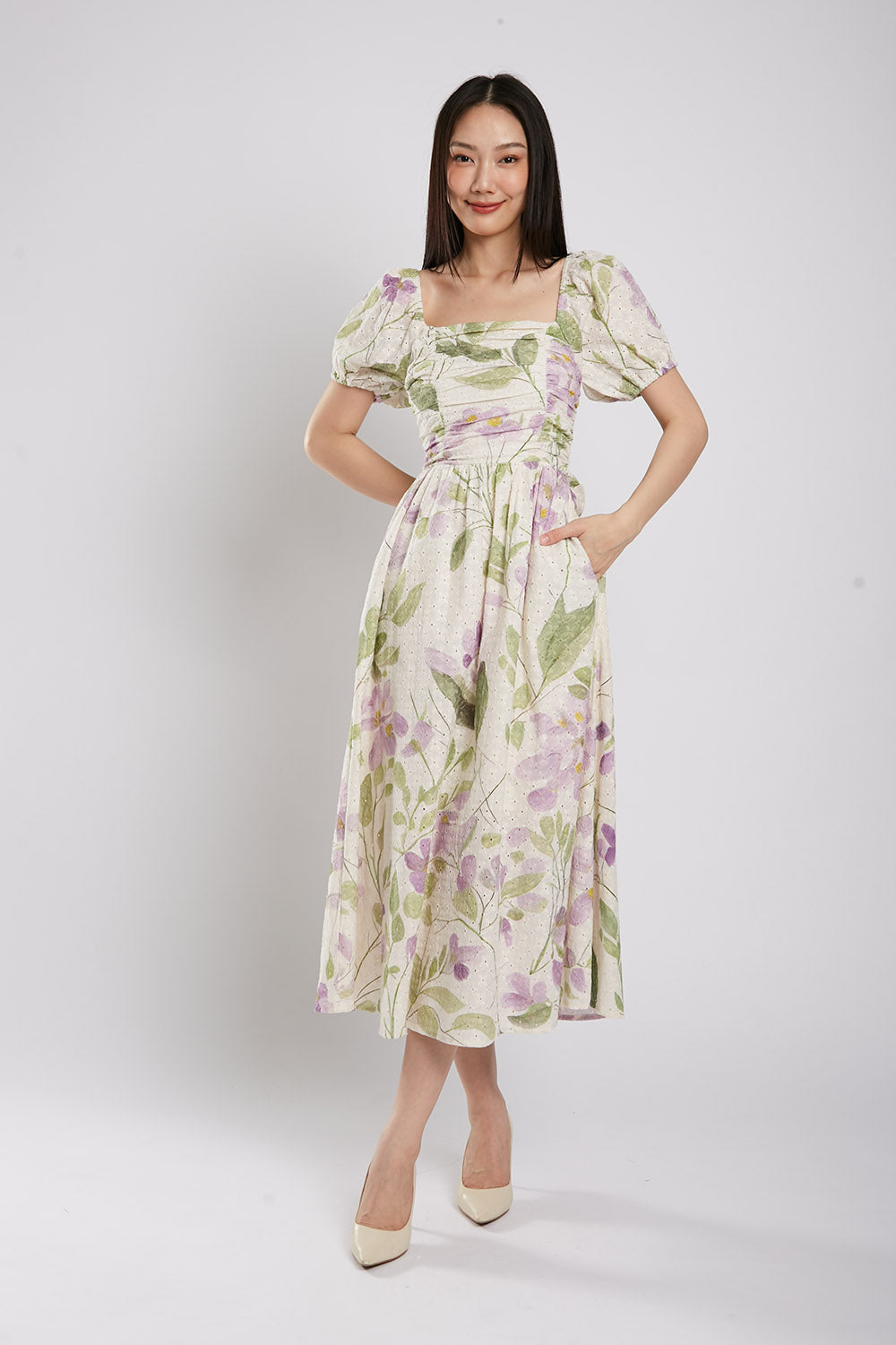 The Bernice Maxi Dress offers effortless style and comfort. Slip into it with ease thanks to the slip-on wear and side half zip closure. The full lining provides added coverage, while the side pockets are perfect for carrying essentials. The back elasticised smocked bodice and sleeve cuffs offer a flexible and flattering fit. Made of 100% cotton eyelet for a soft and breathable feel.