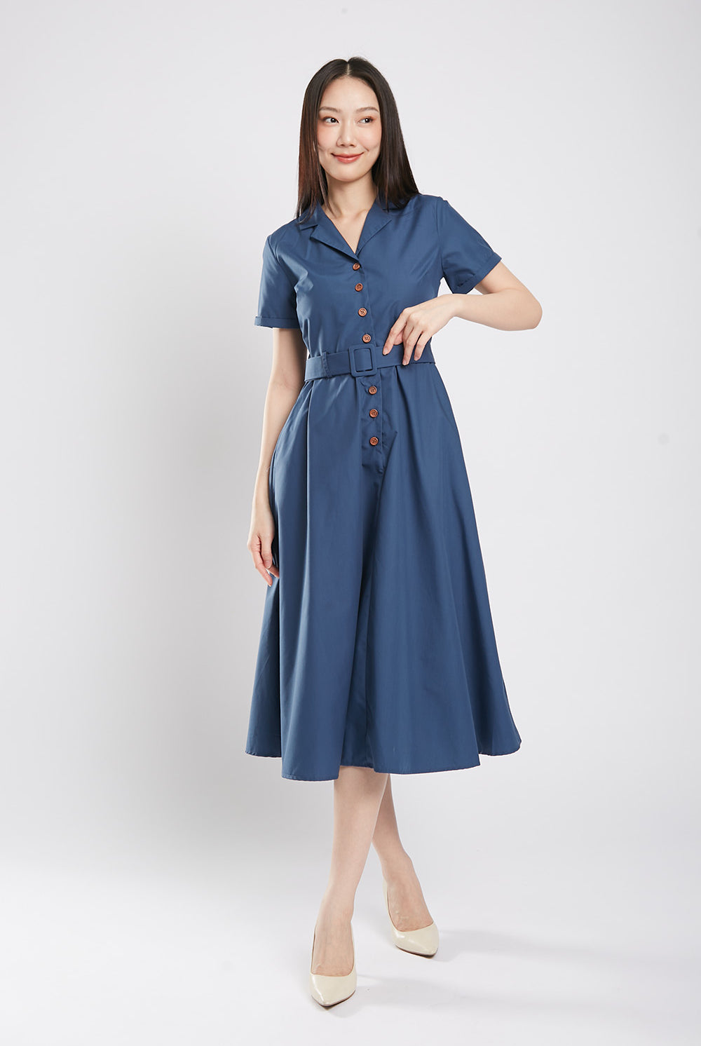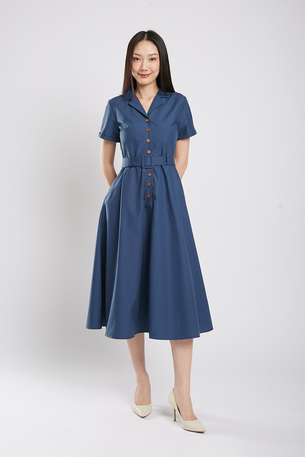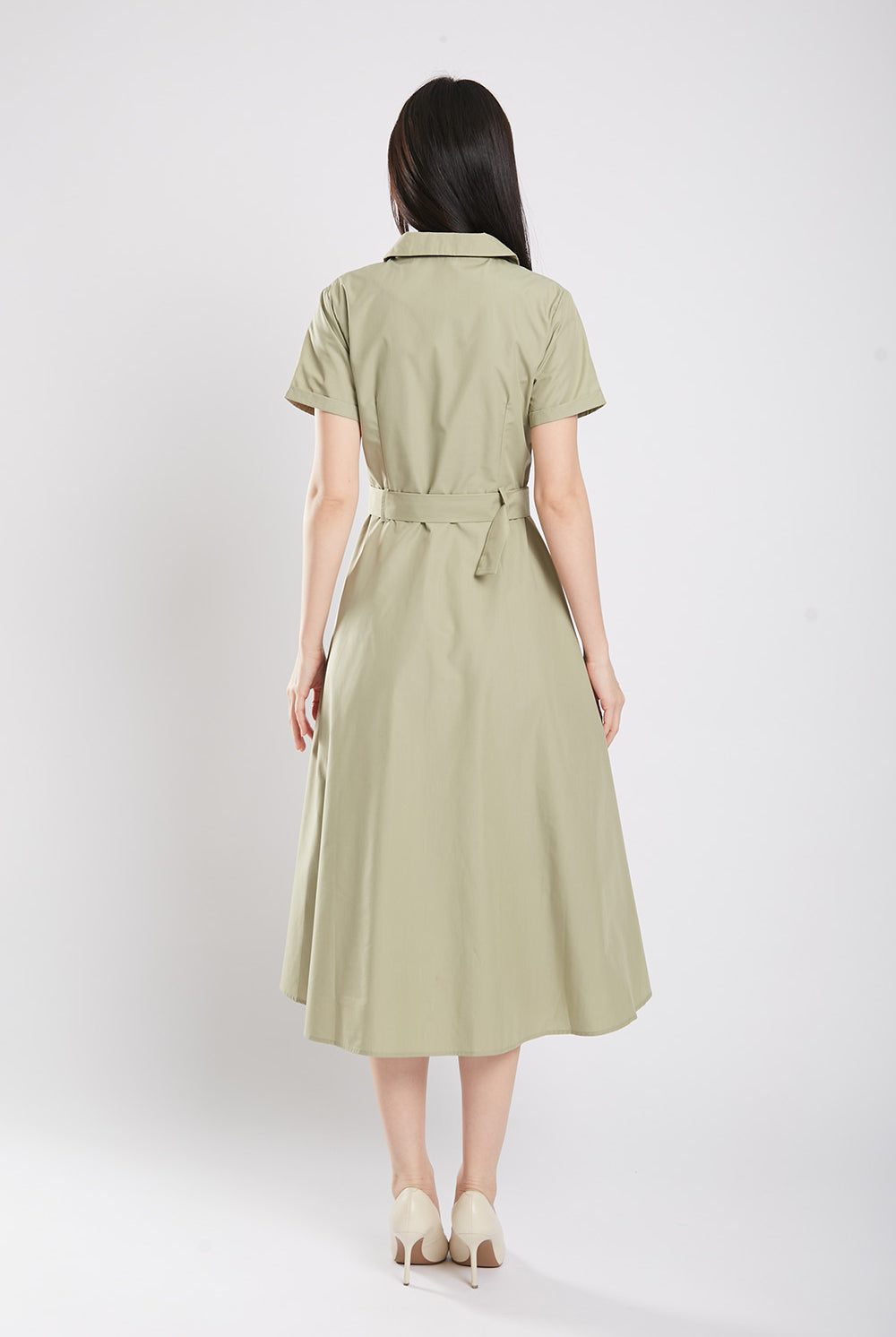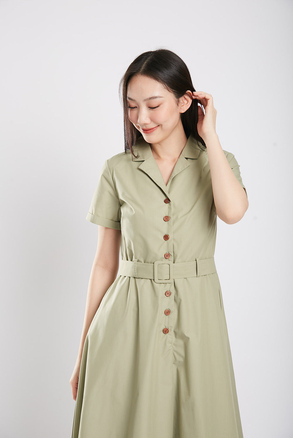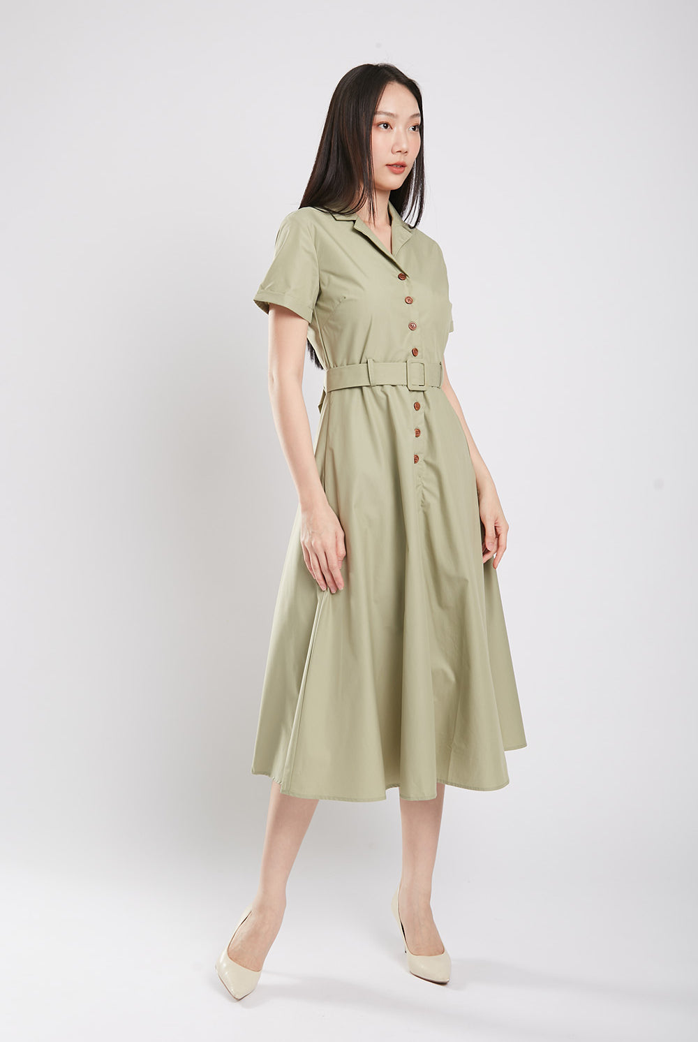 Get ready to bloom in the one-of-a-kind Dahlia Midaxi Dress in Sage Green! Featuring a front button closure, detachable belt, and convenient side pockets, this dress is perfect for any occasion. Made with a comfortable cotton blend material and a flattering lining, it's both stylish and practical. Don't miss out on this unique piece!