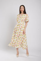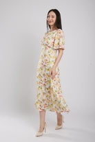 The Flynn Maxi Dress in Yellow Floral features a convenient back zip closure and full lining for a polished and comfortable fit. Made from high-quality polyester fabric, this dress offers both style and durability. Perfect for any occasion, this dress is a must-have addition to your wardrobe.