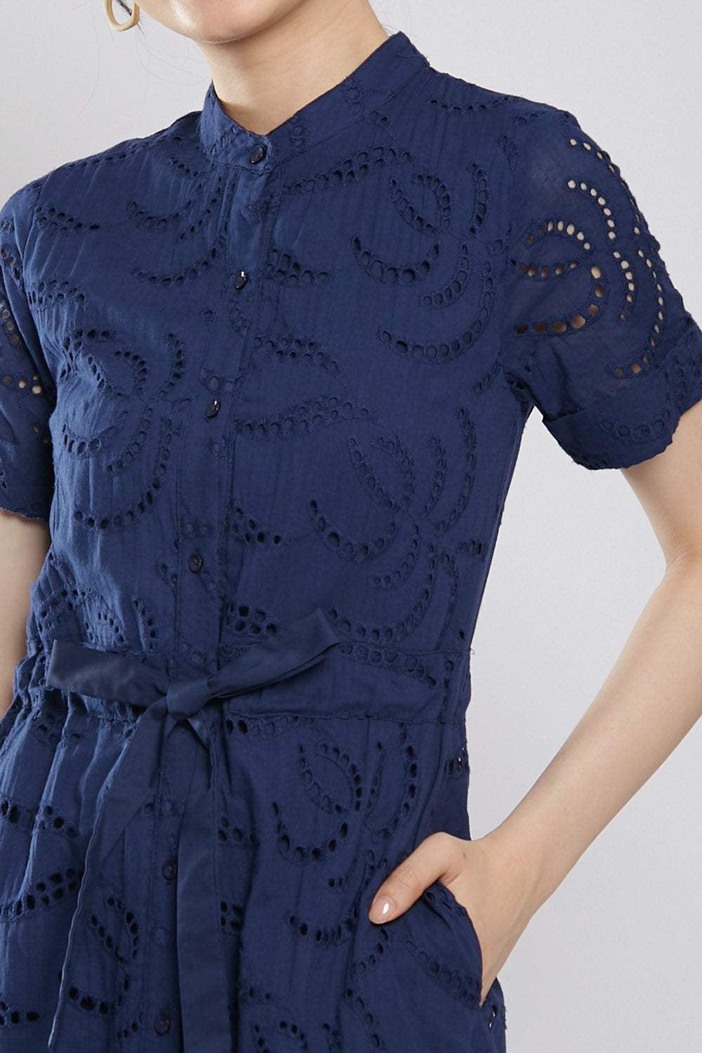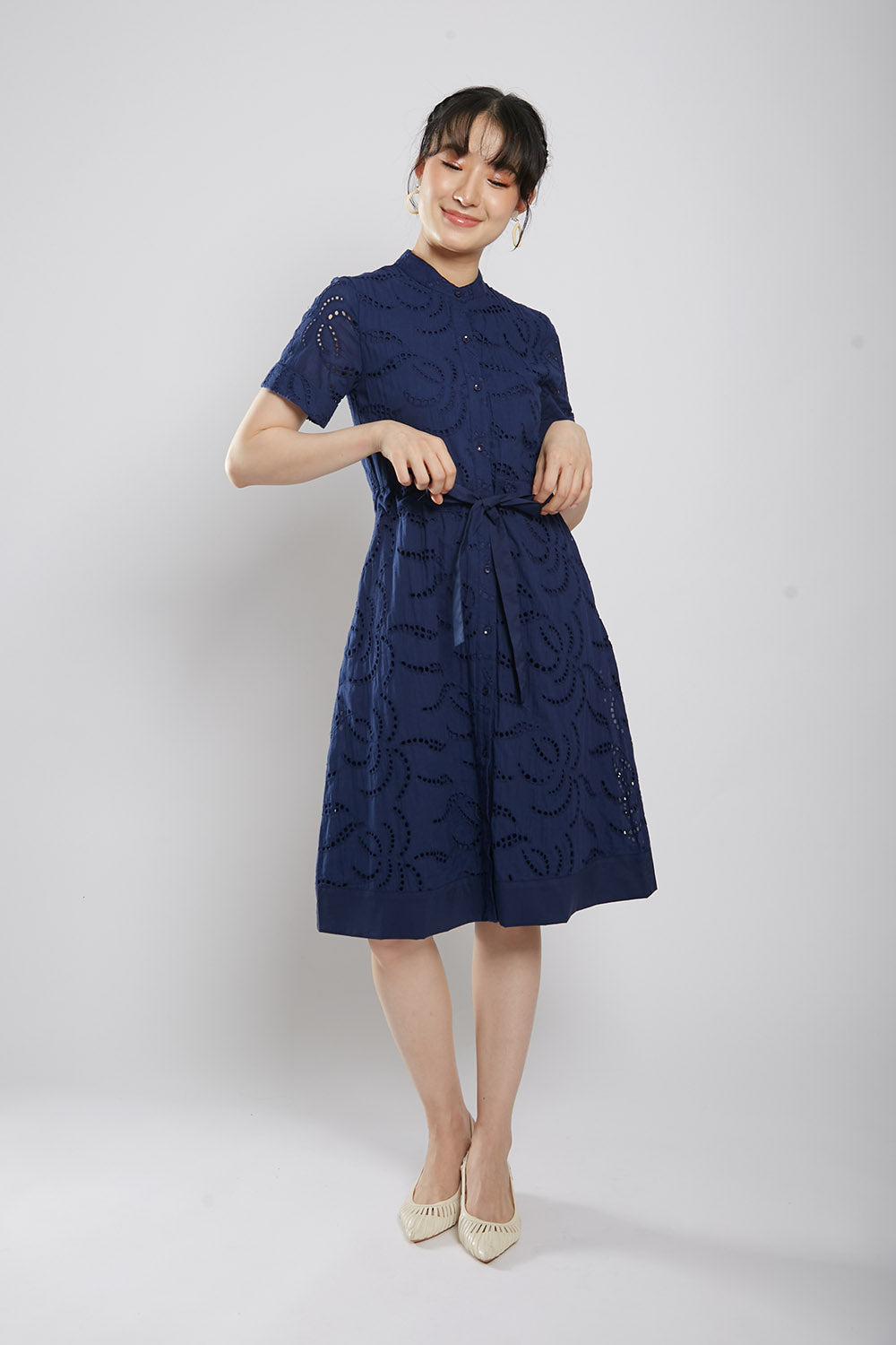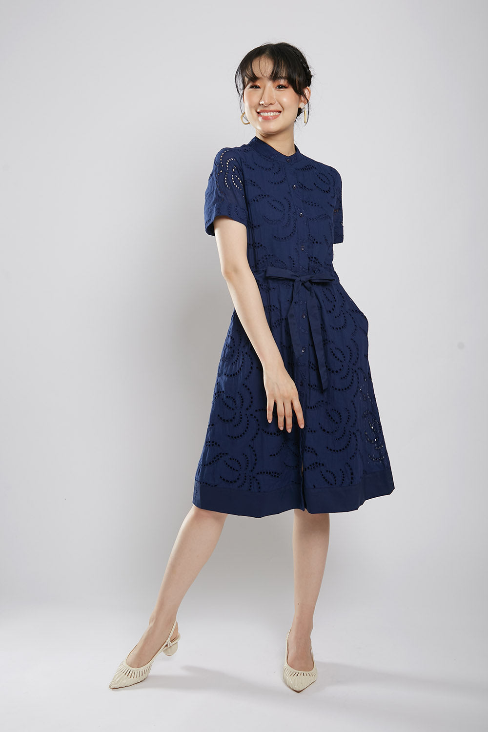 The Letty Midi Dress is perfect for any occasion. Made with a cotton eyelet material, it is fully lined and non-stretchable for a comfortable and flattering fit. With side pockets and a detachable sash, this dress combines fashion and functionality.