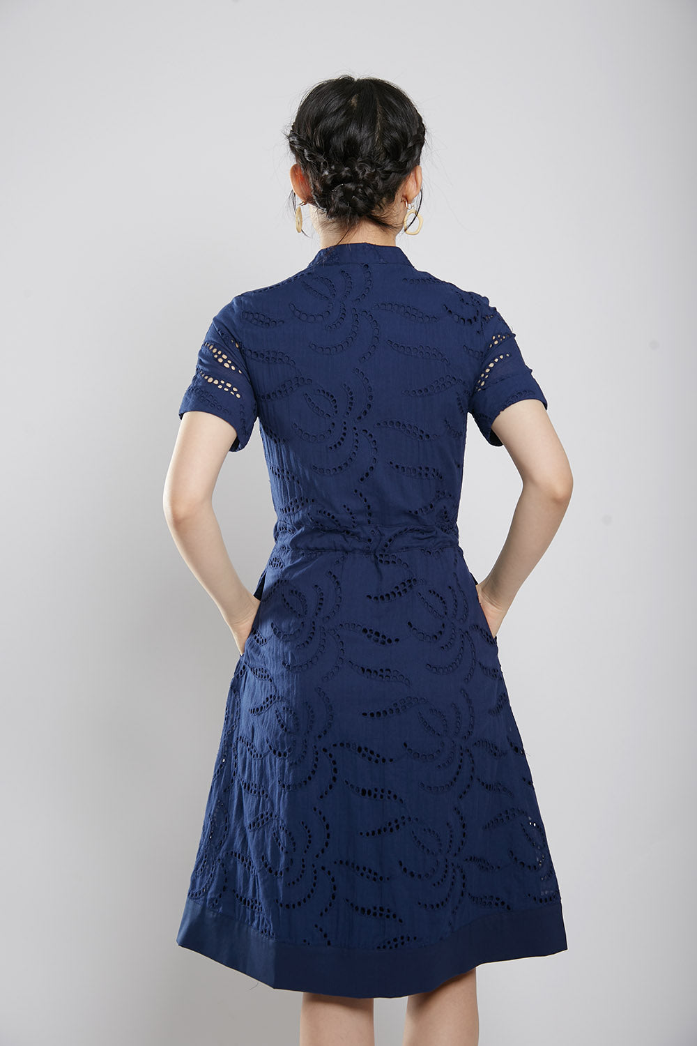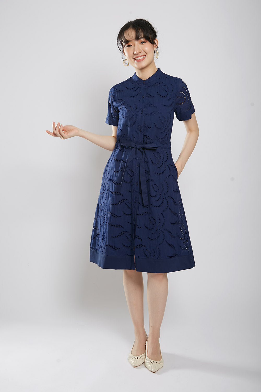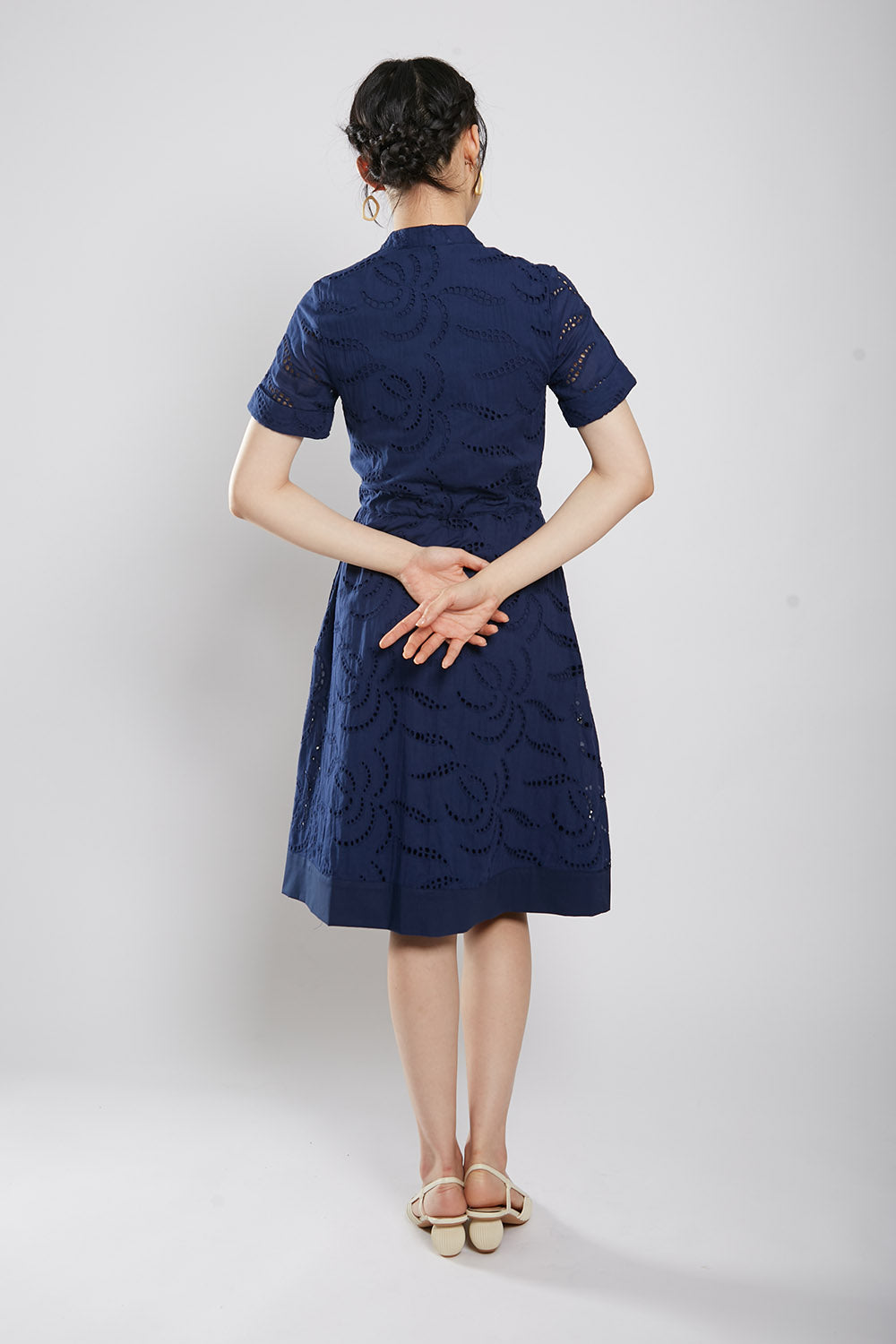 The Letty Midi Dress is perfect for any occasion. Made with a cotton eyelet material, it is fully lined and non-stretchable for a comfortable and flattering fit. With side pockets and a detachable sash, this dress combines fashion and functionality.
