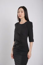 The Manika Midi Dress in Black features full lining and creased effect details, providing a structured and polished look. With a back zip closure, this dress is both stylish and functional. Elevate your wardrobe with this must-have piece.