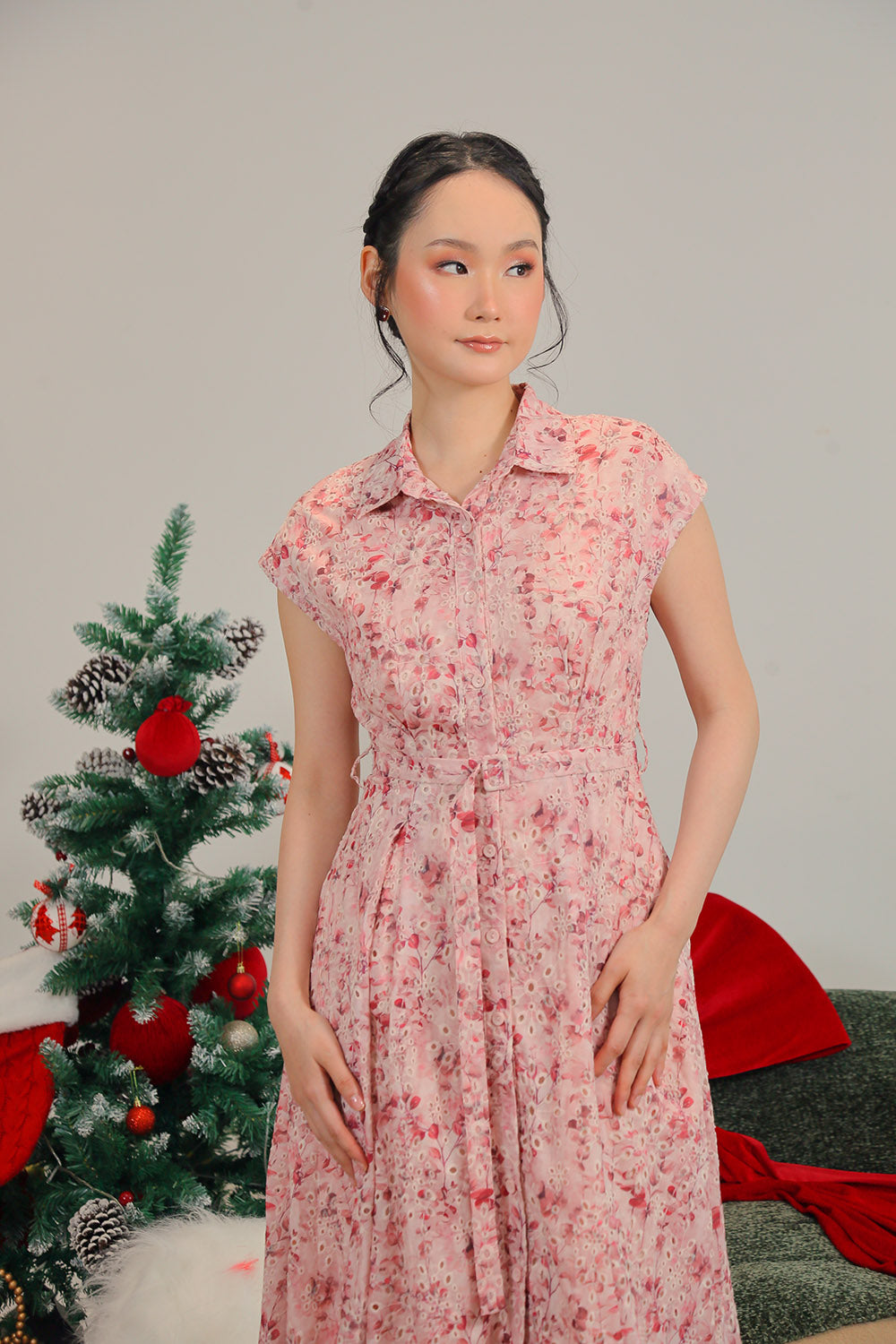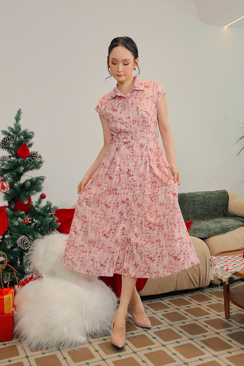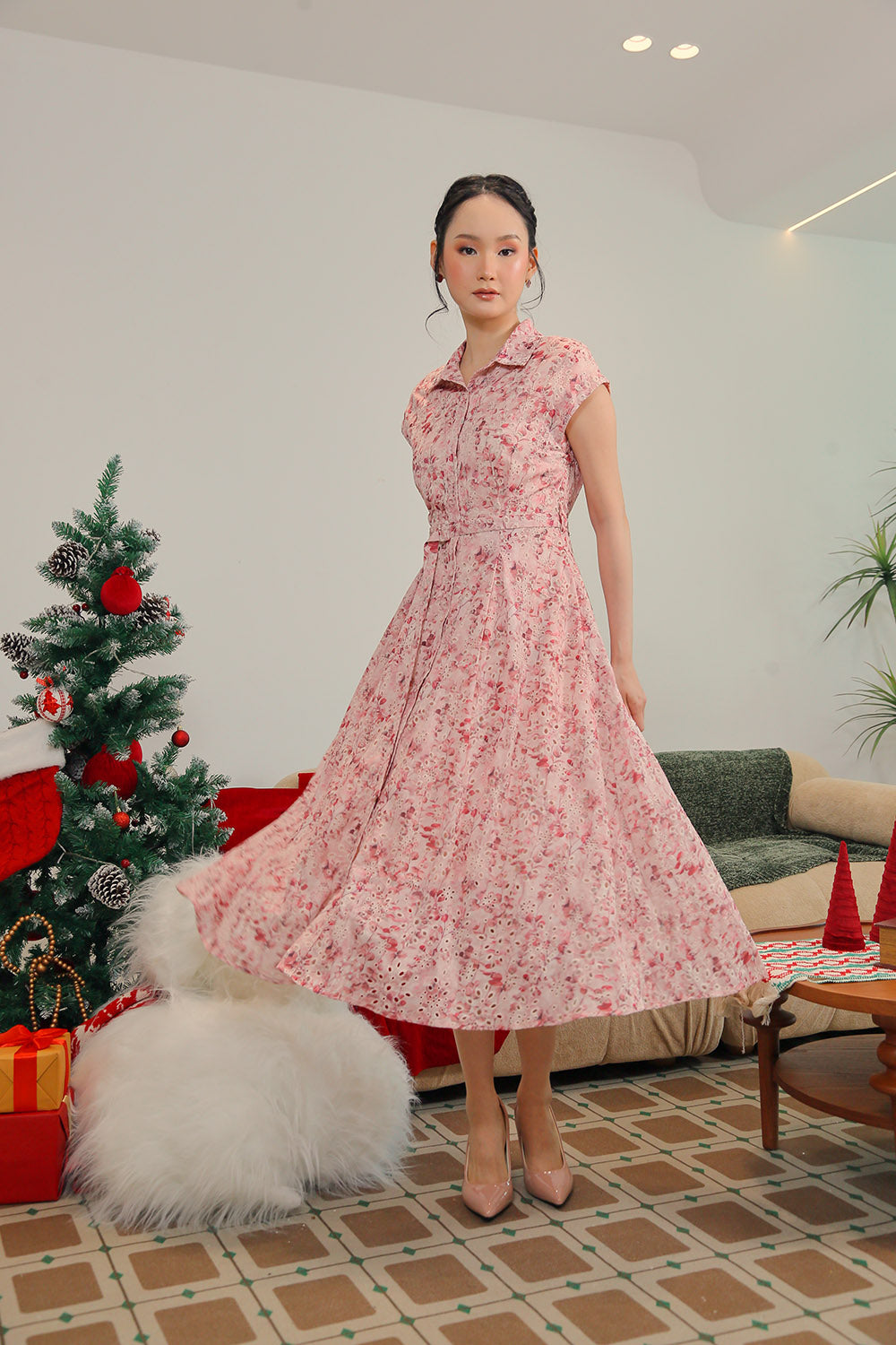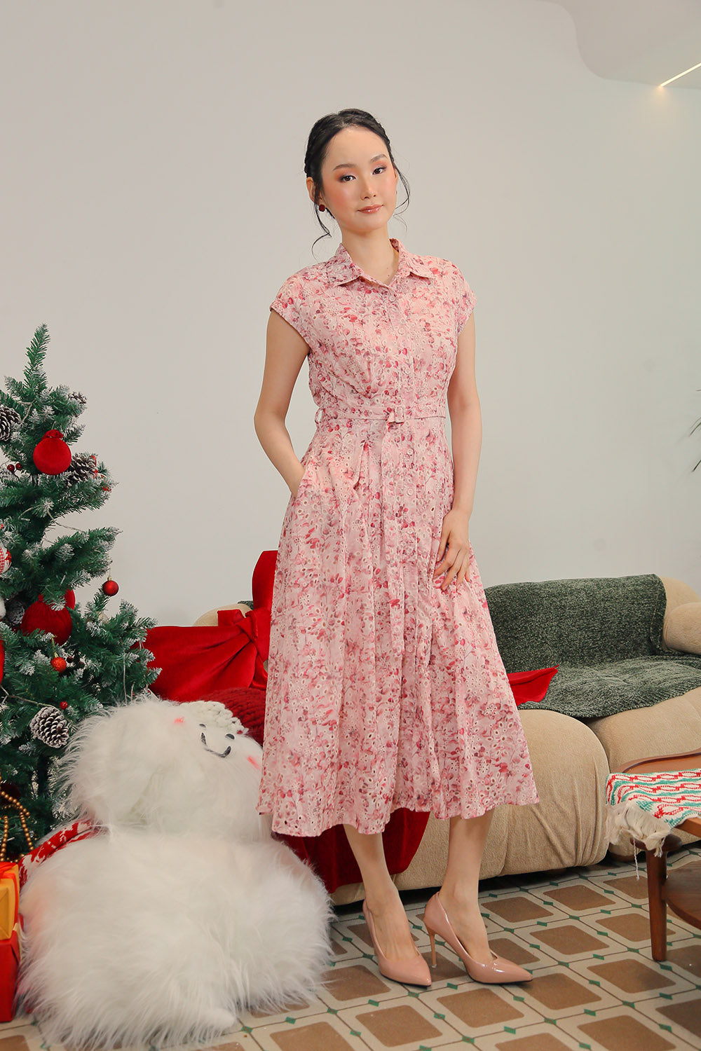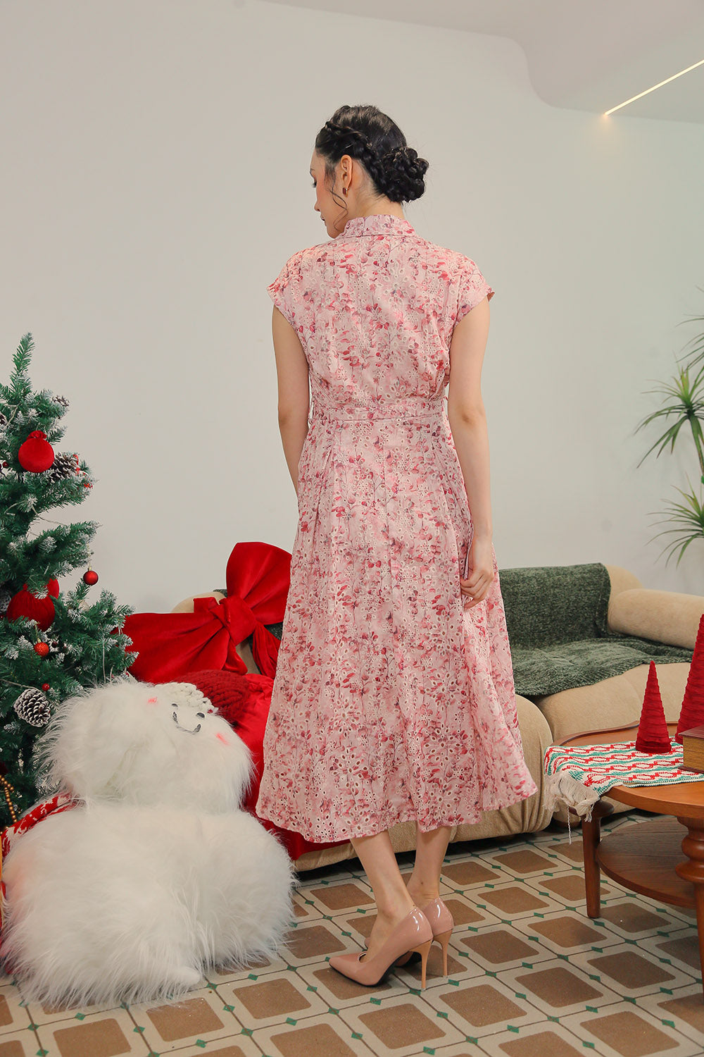 Dezza Eyelet Embroidered Midi Dress in Rose Meadow