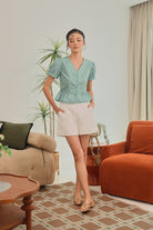 Delicately feminine and easy to style, the Melura Floral Peplum Top is designed with a flattering V-neckline, dainty covered buttons along the front, and a softly gathered peplum hem that defines the waist beautifully. Crafted from a lightweight floral fabric, this piece offers an effortlessly romantic silhouette perfect for everyday wear.