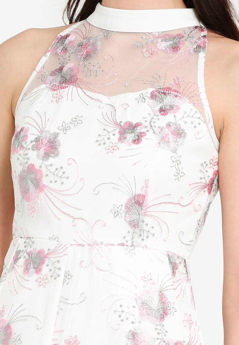 - Made quality floral embroidered crochet overlay with a contrast inner
