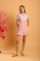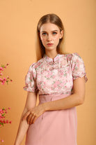 Celebrate elegance and grace with the Leoda Midi Cheongsam, a harmonious blend of modern femininity and traditional charm. Designed in a soft pink hue, this dress features a delicately embroidered floral overlay that exudes sophistication. The puff sleeves add a playful touch, while the mandarin collar and traditional frog buttons highlight its timeless appeal. The fitted bodice transitions into a flared skirt with a gentle ruffle hem, creating a flattering silhouette. Fully lined for comfort and finished with a back zip closure for ease of wear, this cheongsam is perfect for festive occasions or an elevated daytime look. Pair it effortlessly with minimal accessories for a statement of refined beauty.