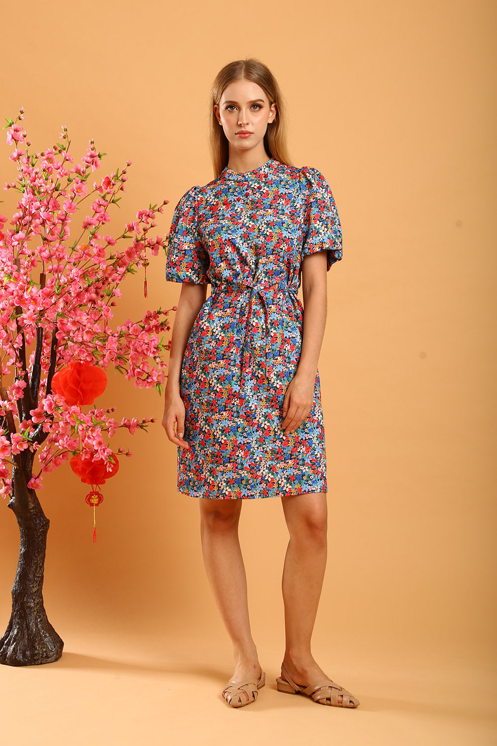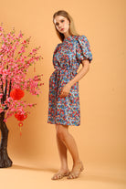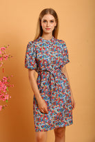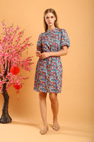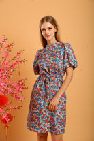 Make a statement with the Shaira Cheongsam Dress in Blue/Red Floral, a vibrant and versatile addition to your collection. Featuring a charming floral print in bold shades of blue and red, this dress is designed with a modern take on the traditional cheongsam silhouette. It includes a full lining for comfort and structure, while the puff sleeves and mandarin collar enhance its elegant appeal.