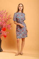 Shaira Cheongsam Dress in Blue/Red Floral