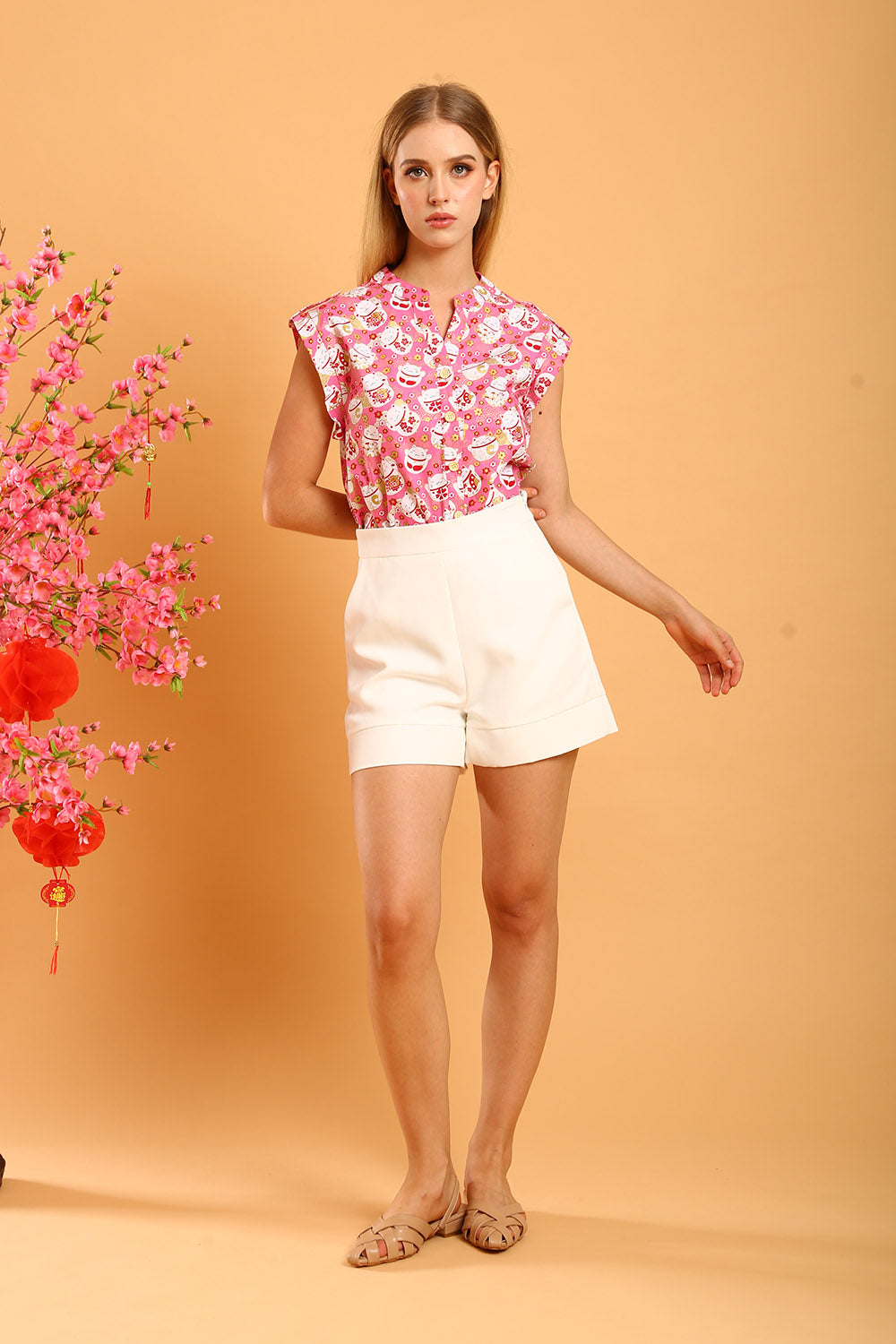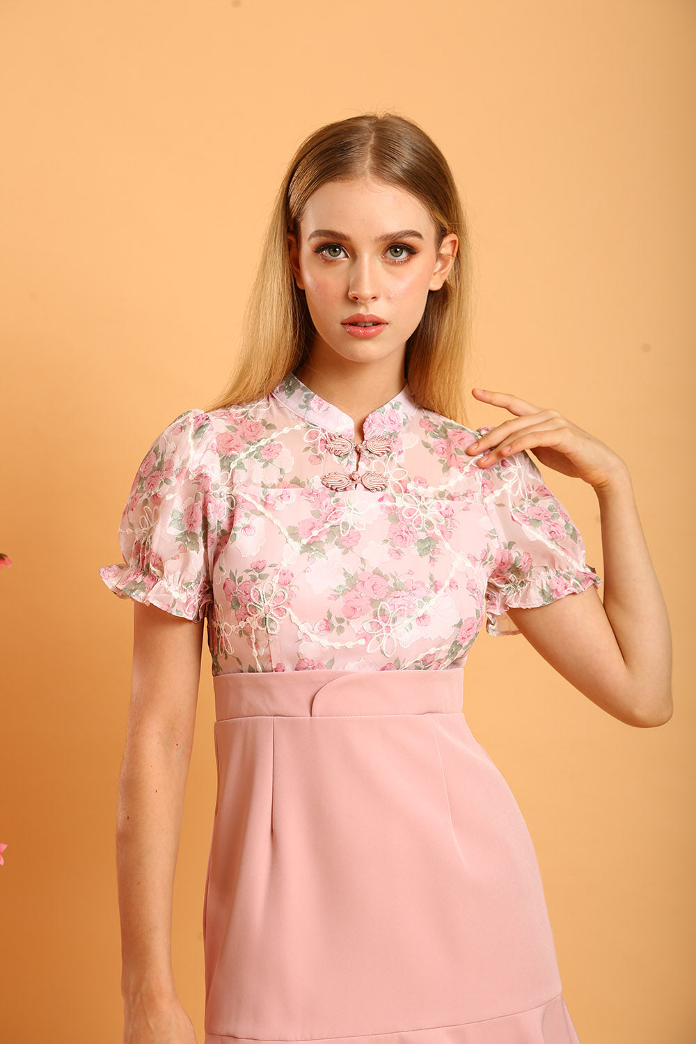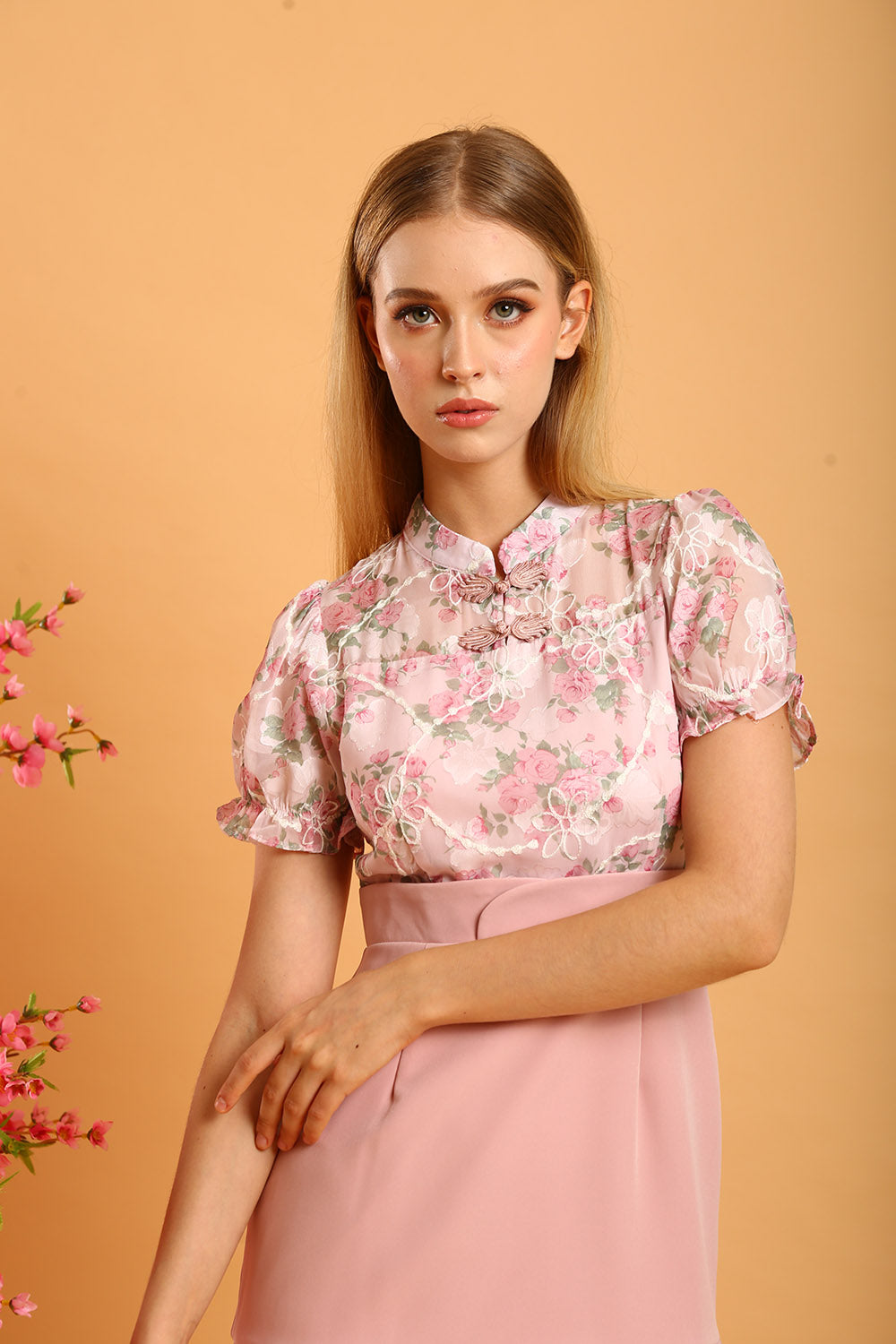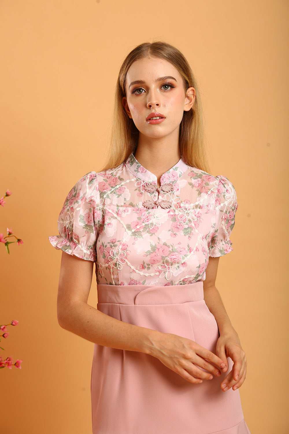 Rania Floral Blouson Top in Pastel Bloom