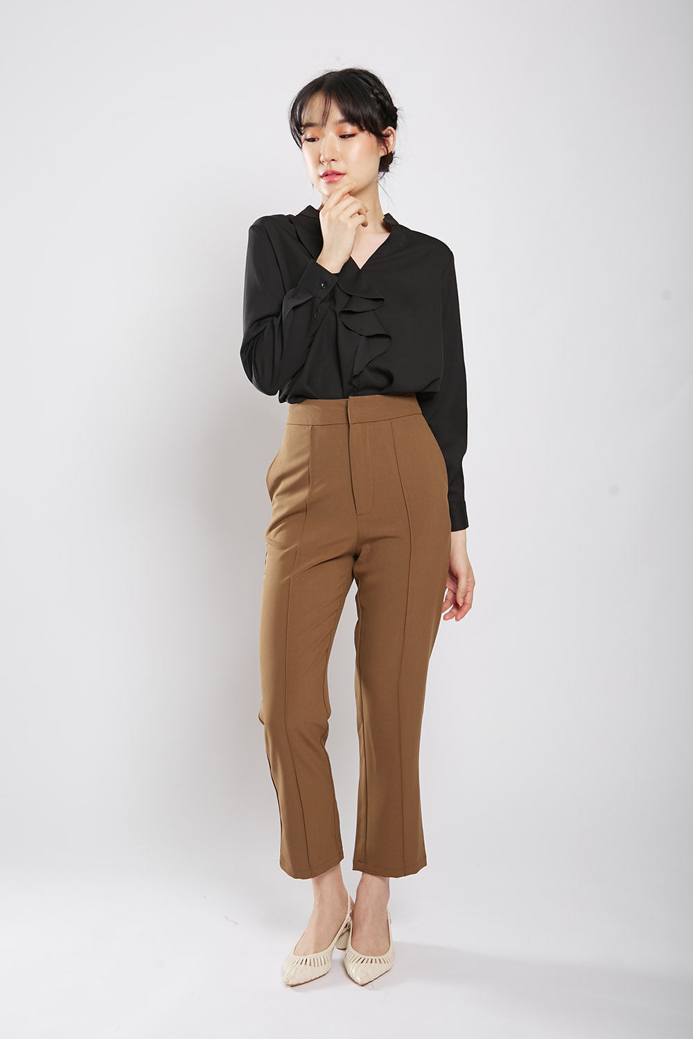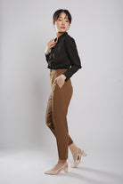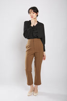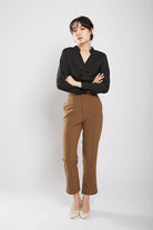 Yuri Tapered Pants are the perfect blend of style and comfort. Made from a slightly stretchable polyester material, these pants feature a button closure and convenient side pockets. Non-lined for a lightweight feel, these pants offer both functionality and fashion.