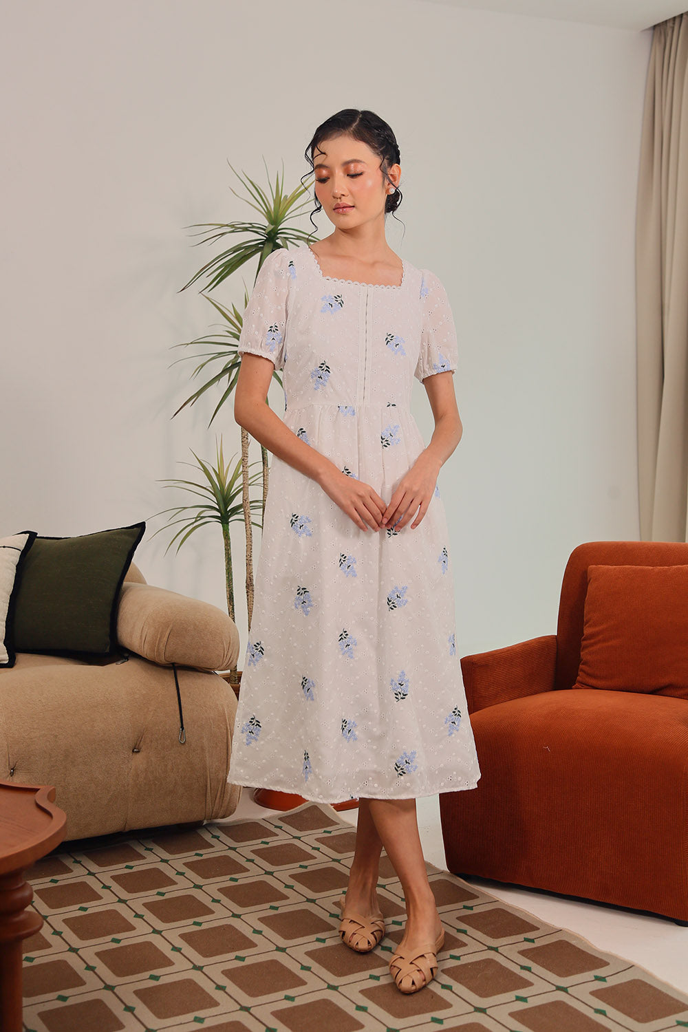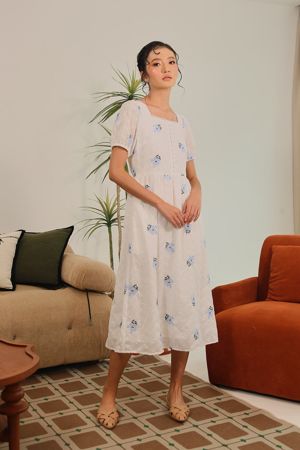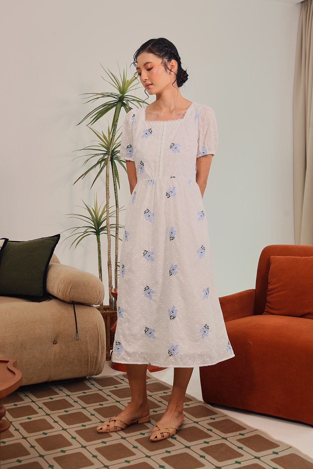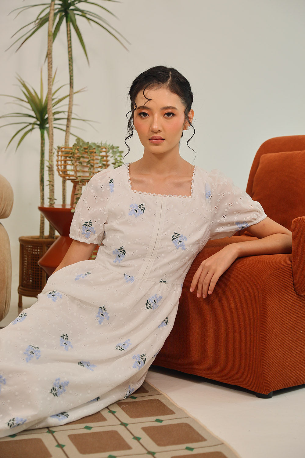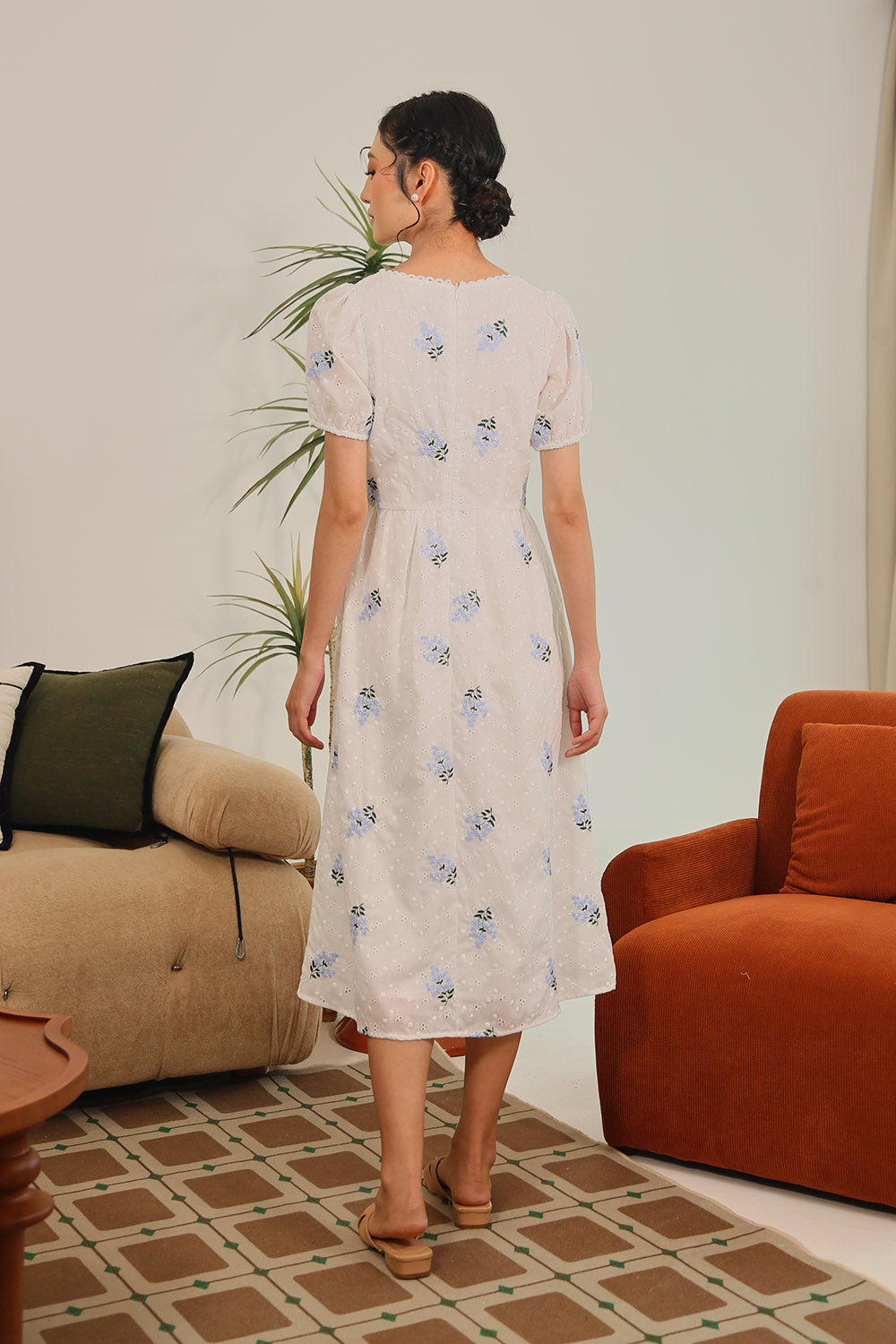 Dezza Eyelet Embroidered Midi Dress in Rose Meadow