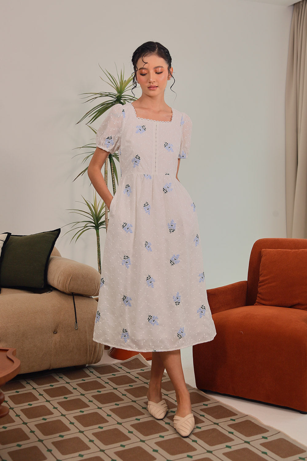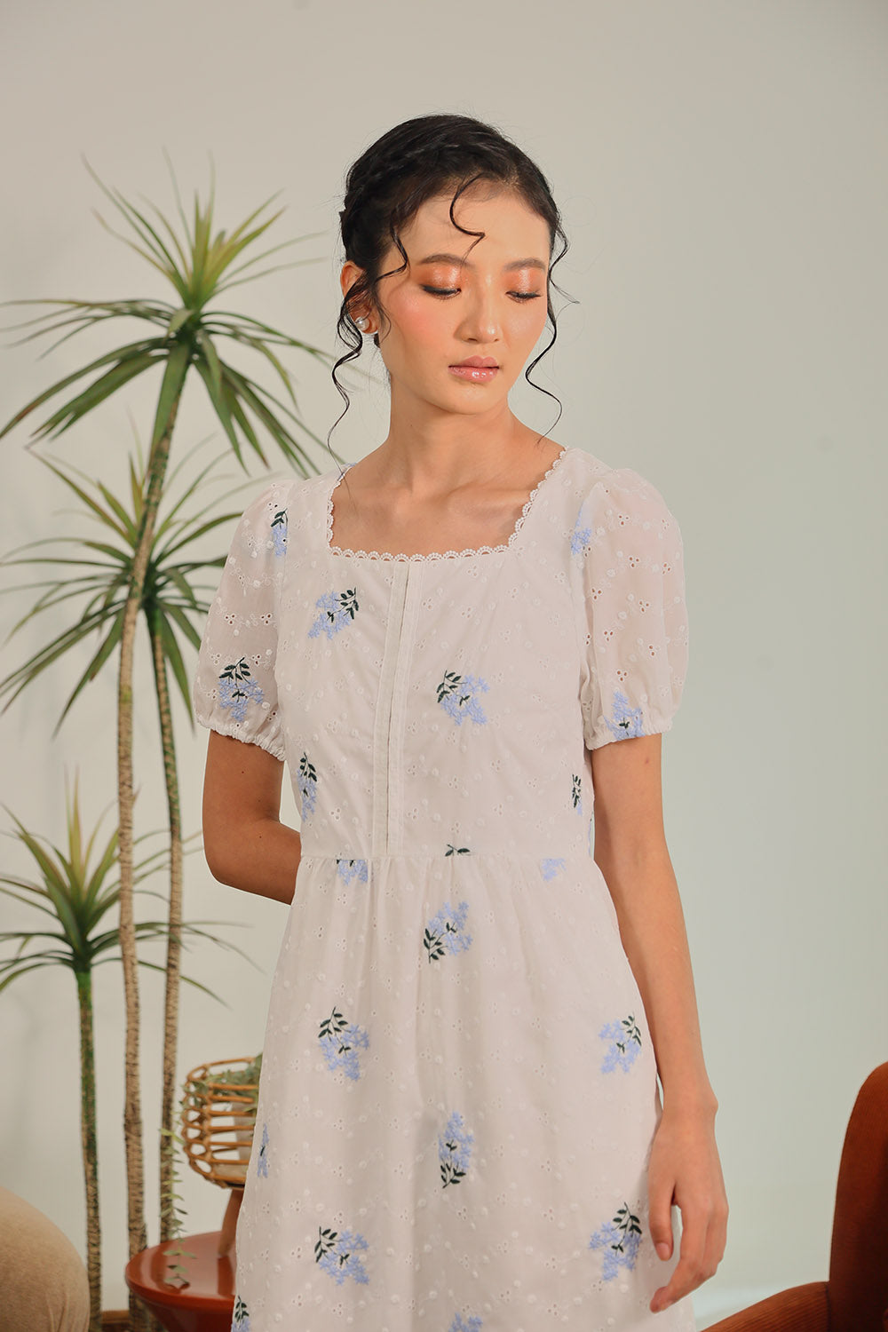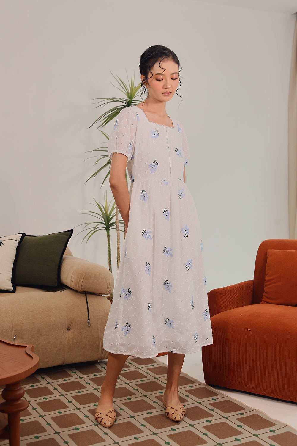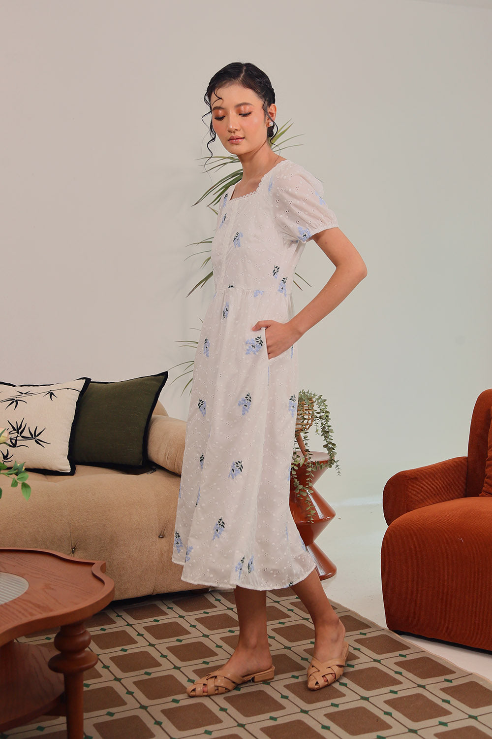 Dezza Eyelet Embroidered Midi Dress in Rose Meadow