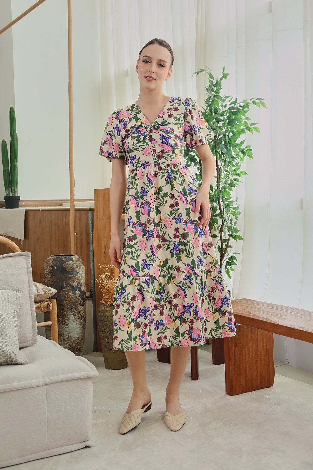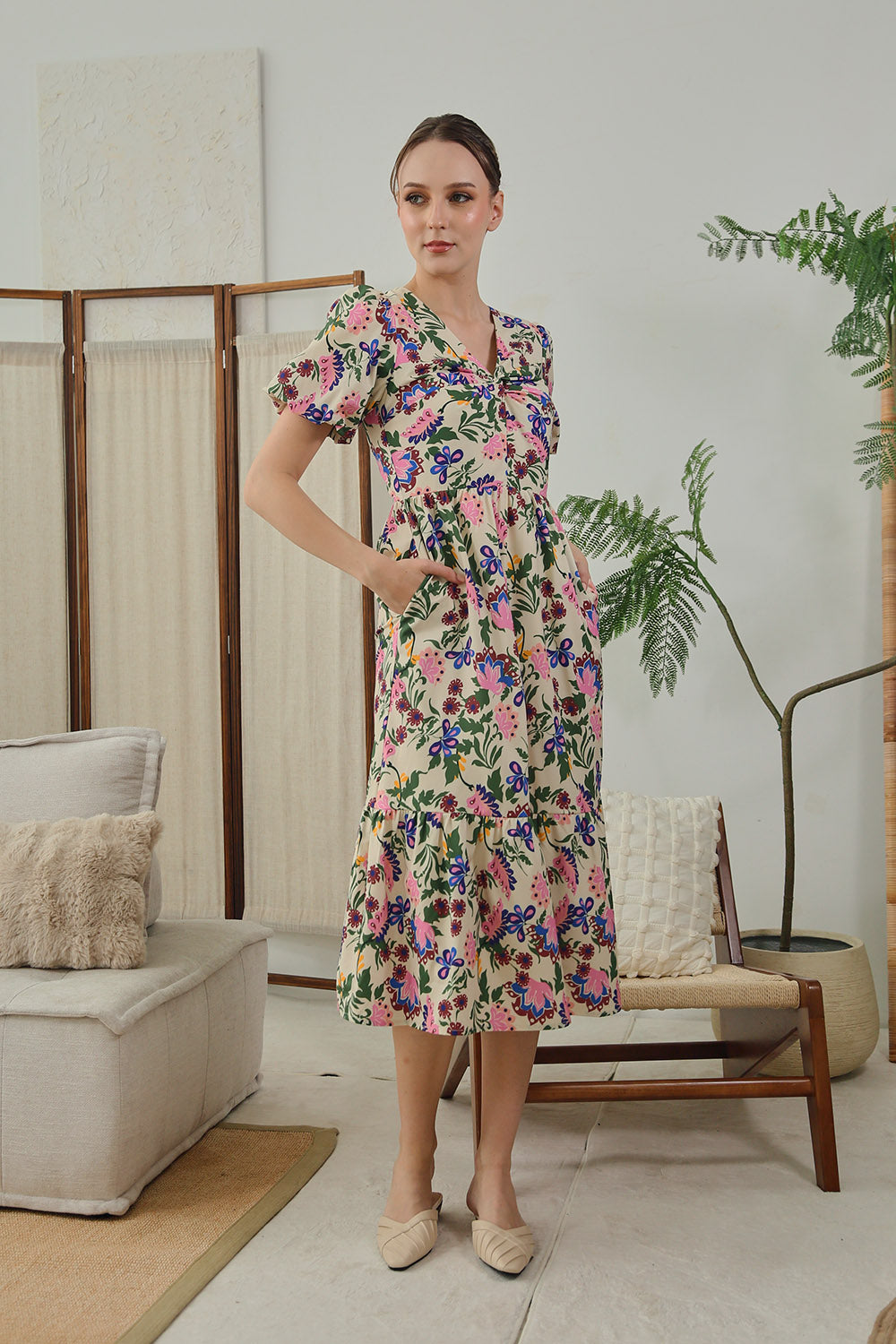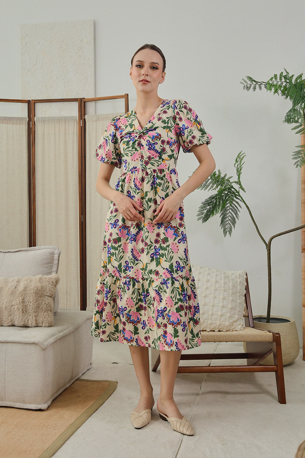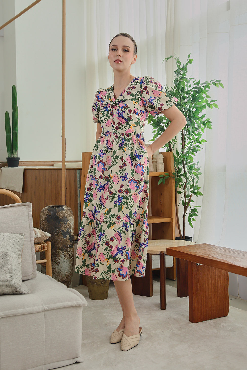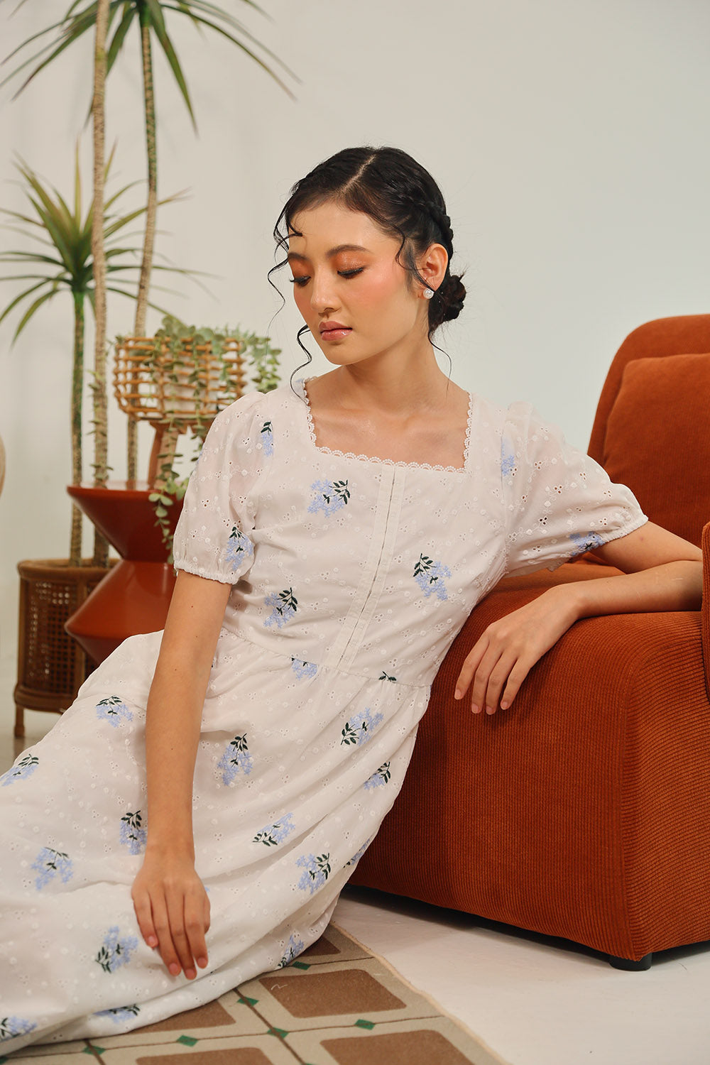 Dezza Eyelet Embroidered Midi Dress in Rose Meadow