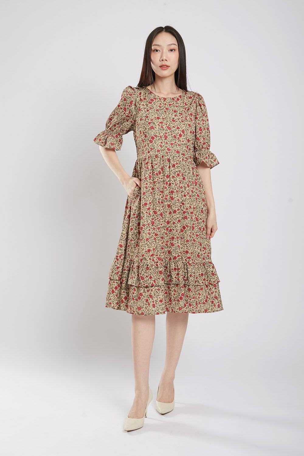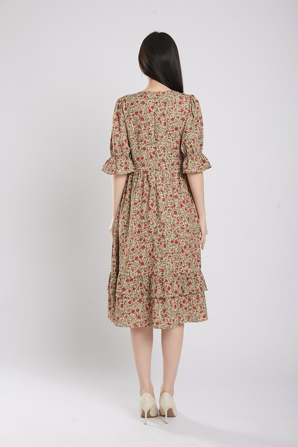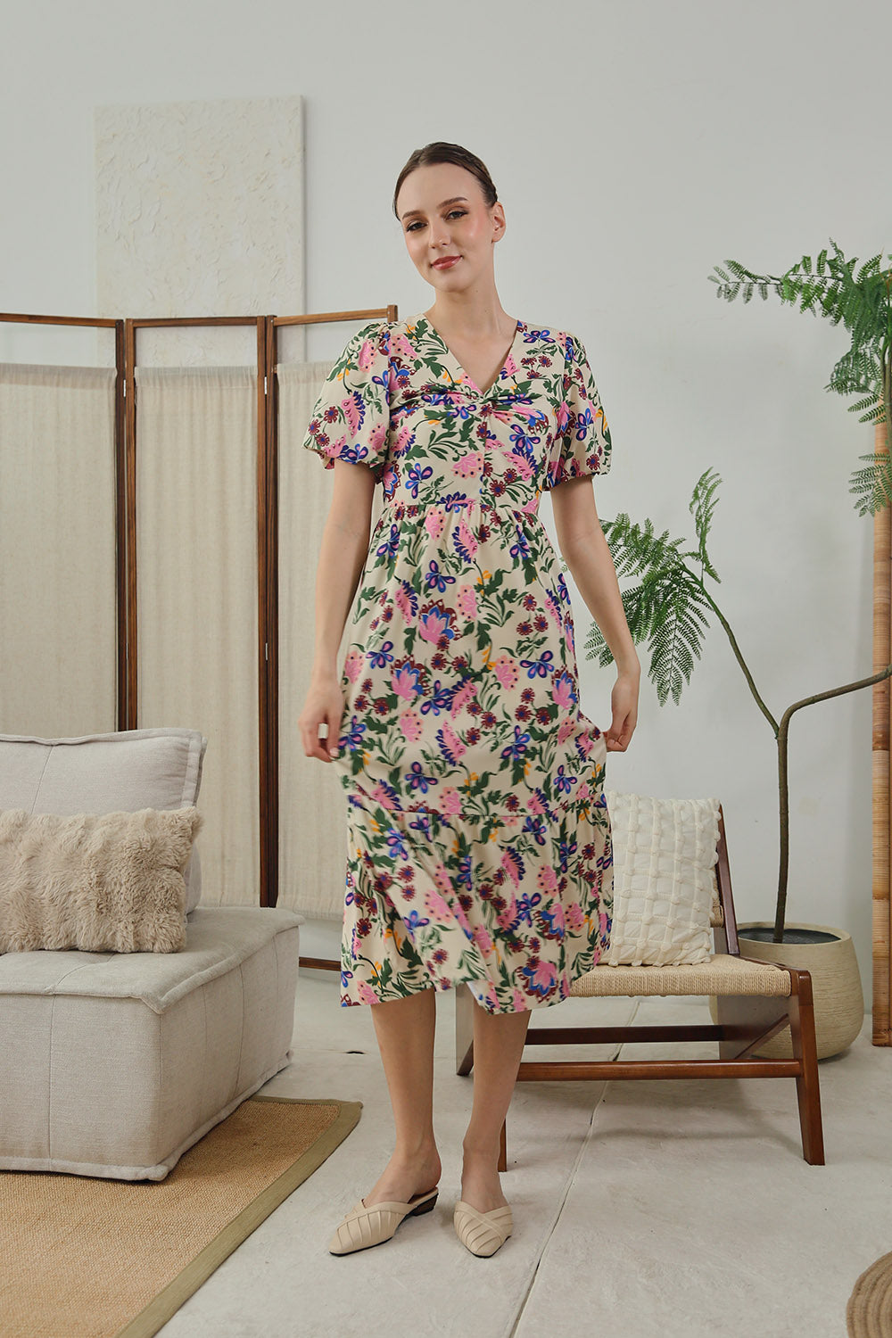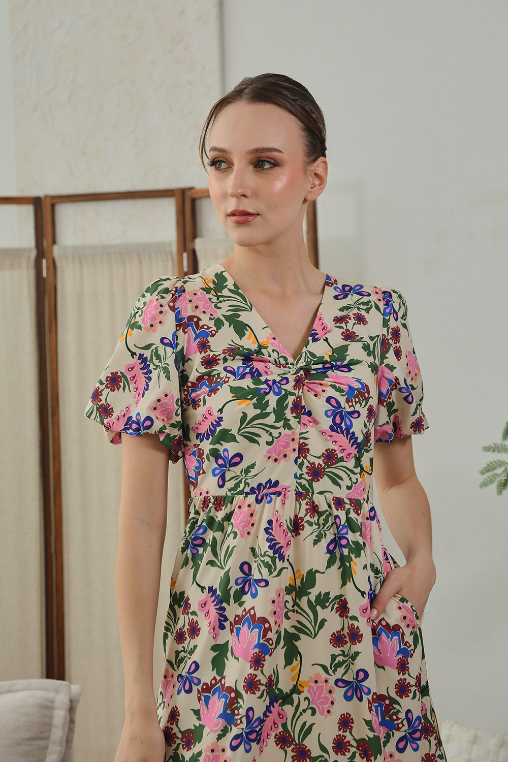Dezza Eyelet Embroidered Midi Dress in Rose Meadow