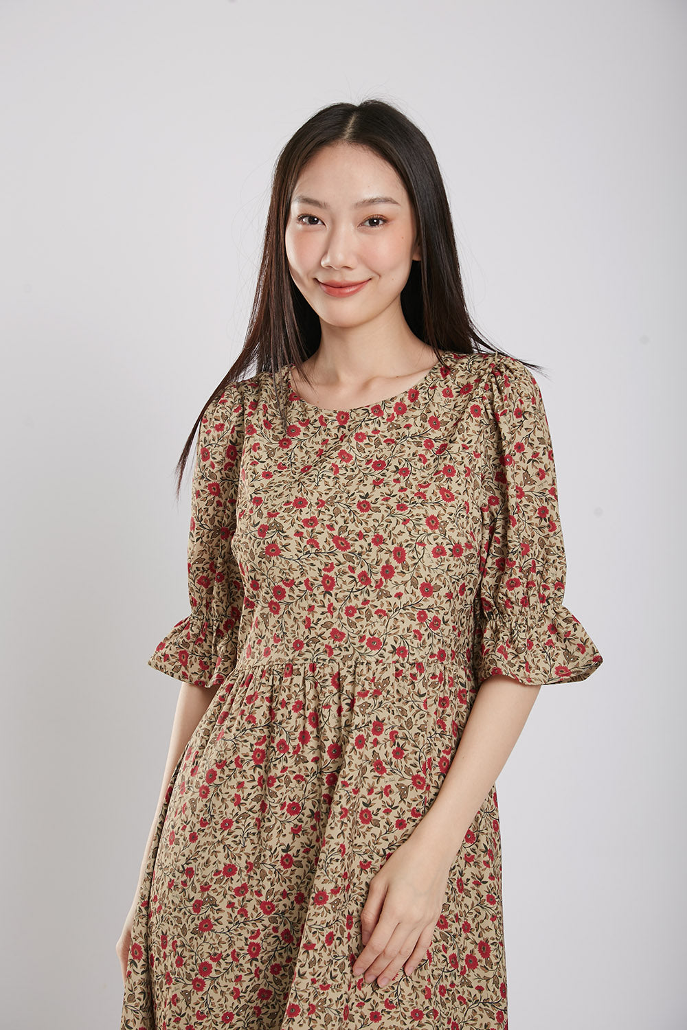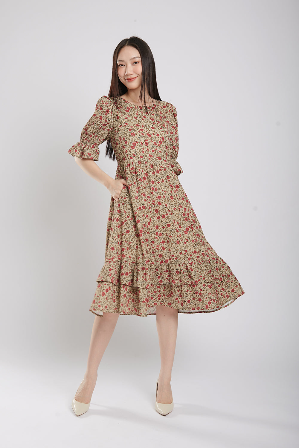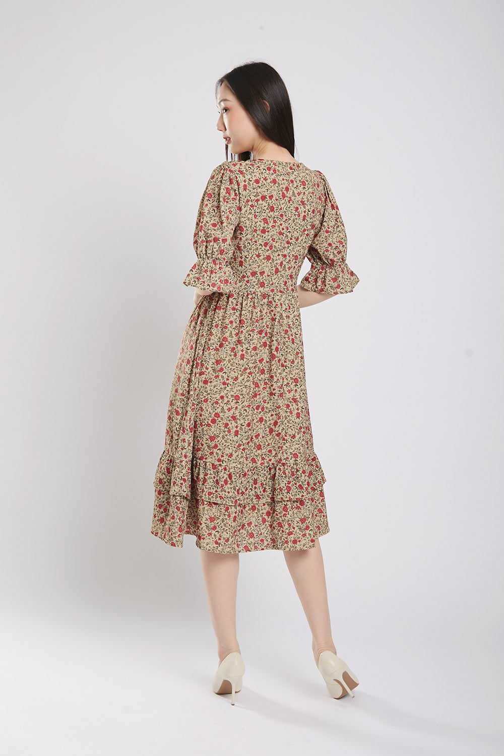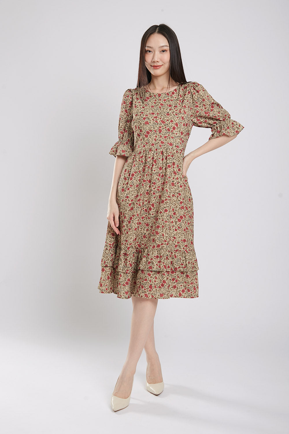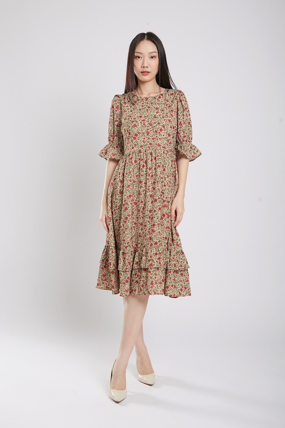 Dezza Eyelet Embroidered Midi Dress in Rose Meadow