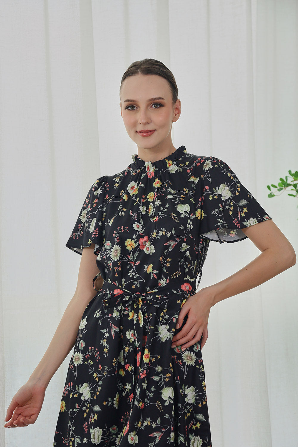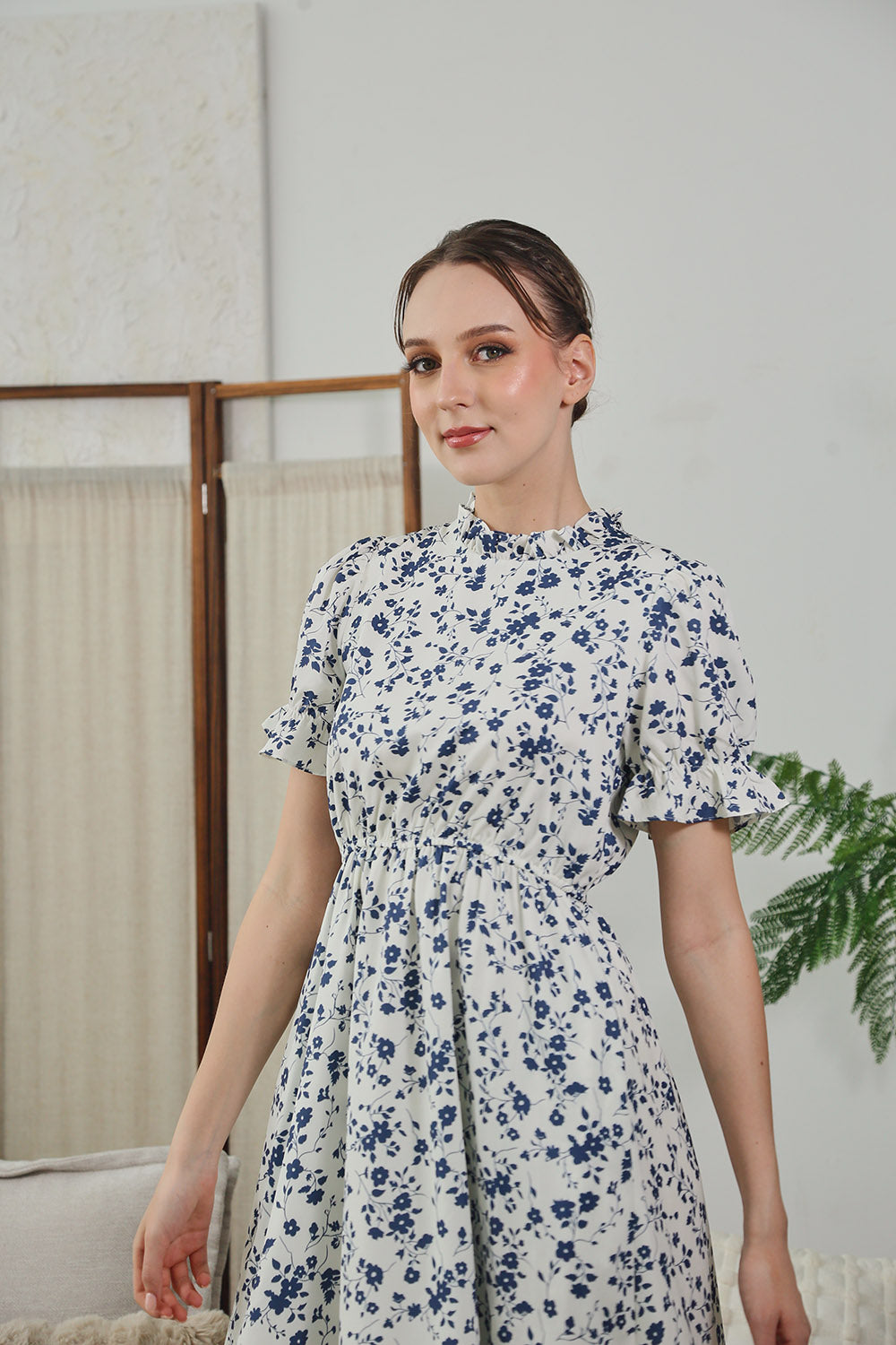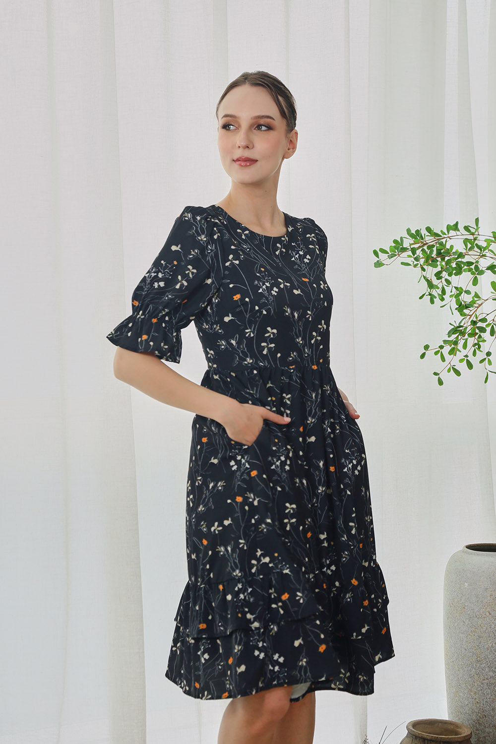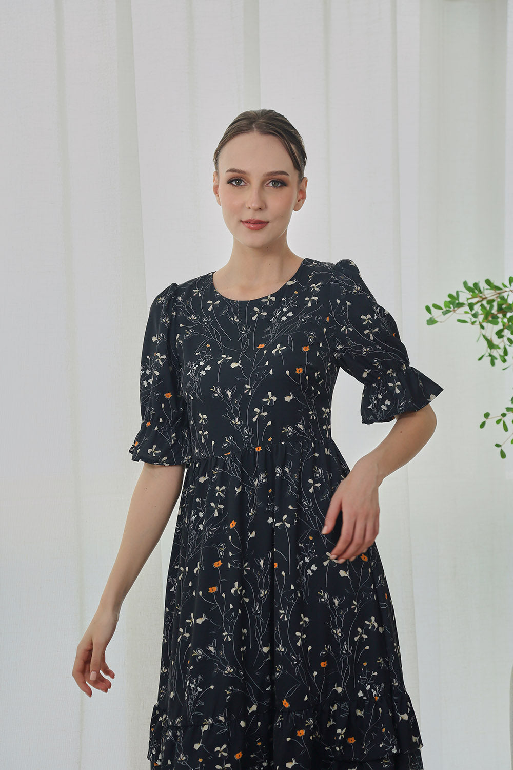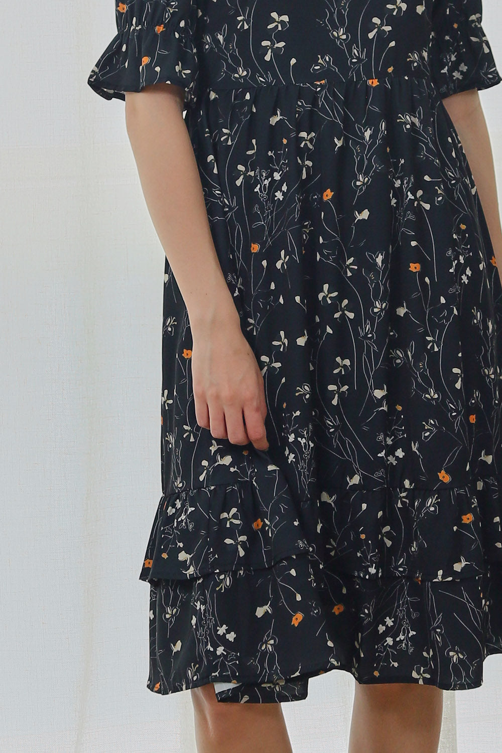 Dezza Midi Dress in Navy Blue Scenic Embroidery
