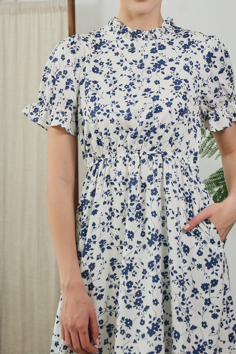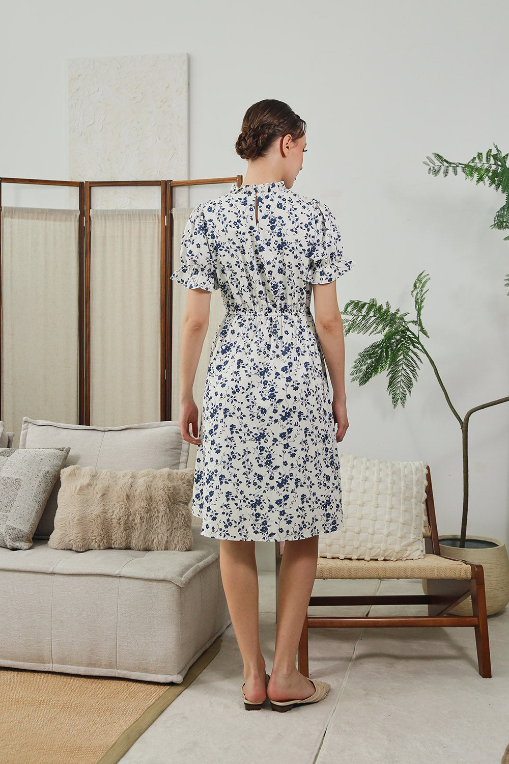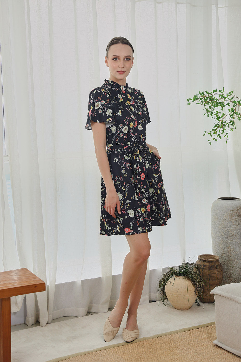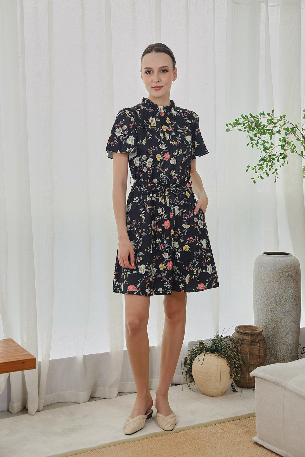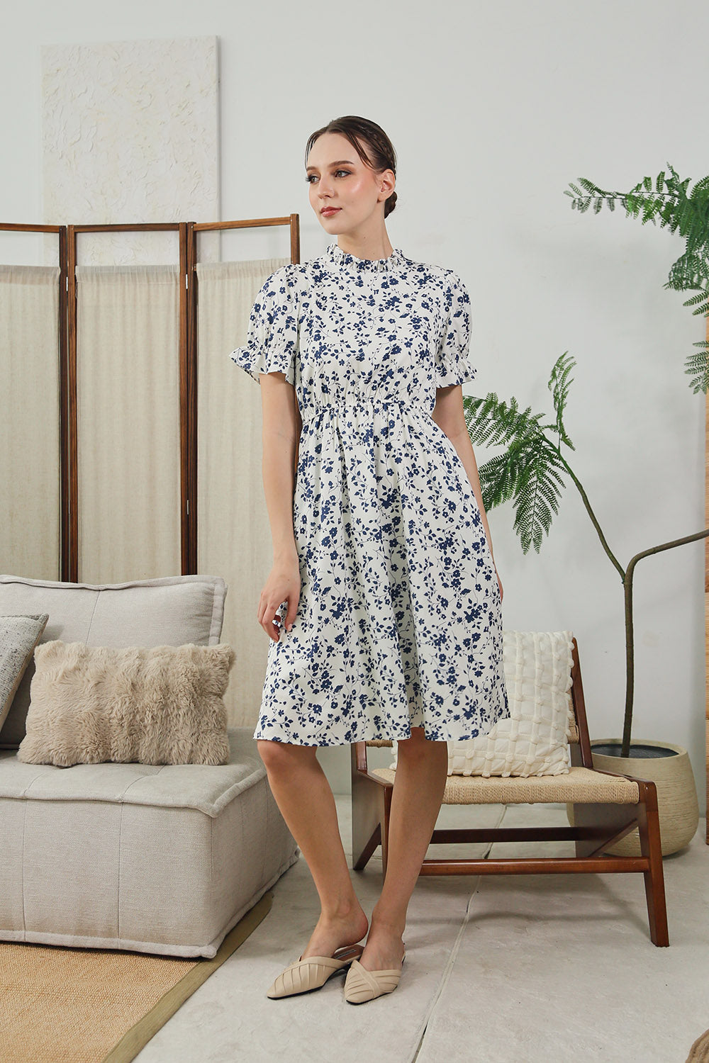 Dezza Midi Dress in Navy Blue Scenic Embroidery