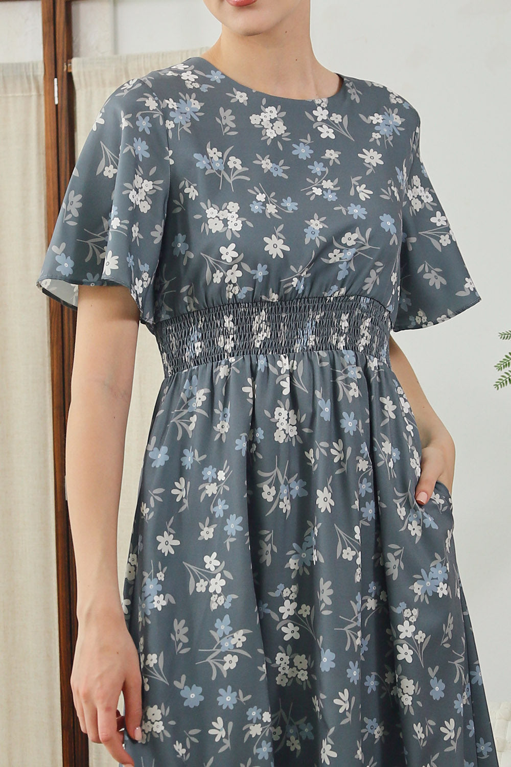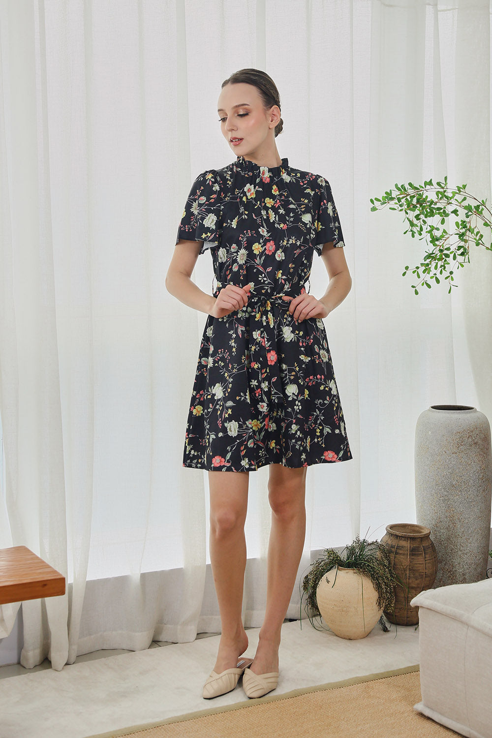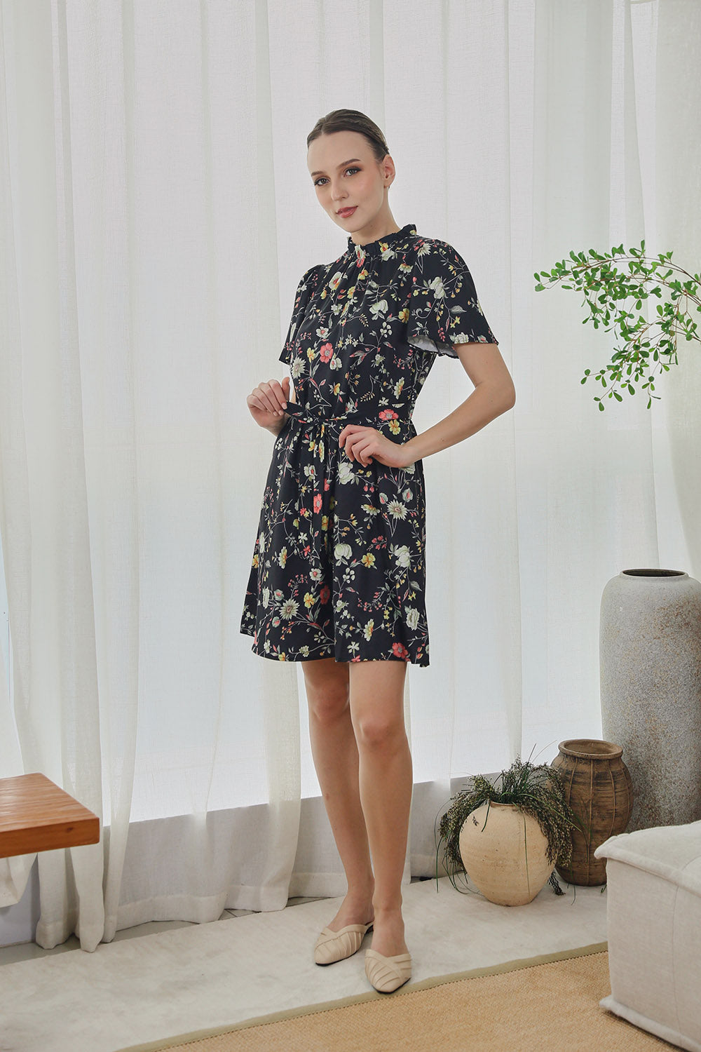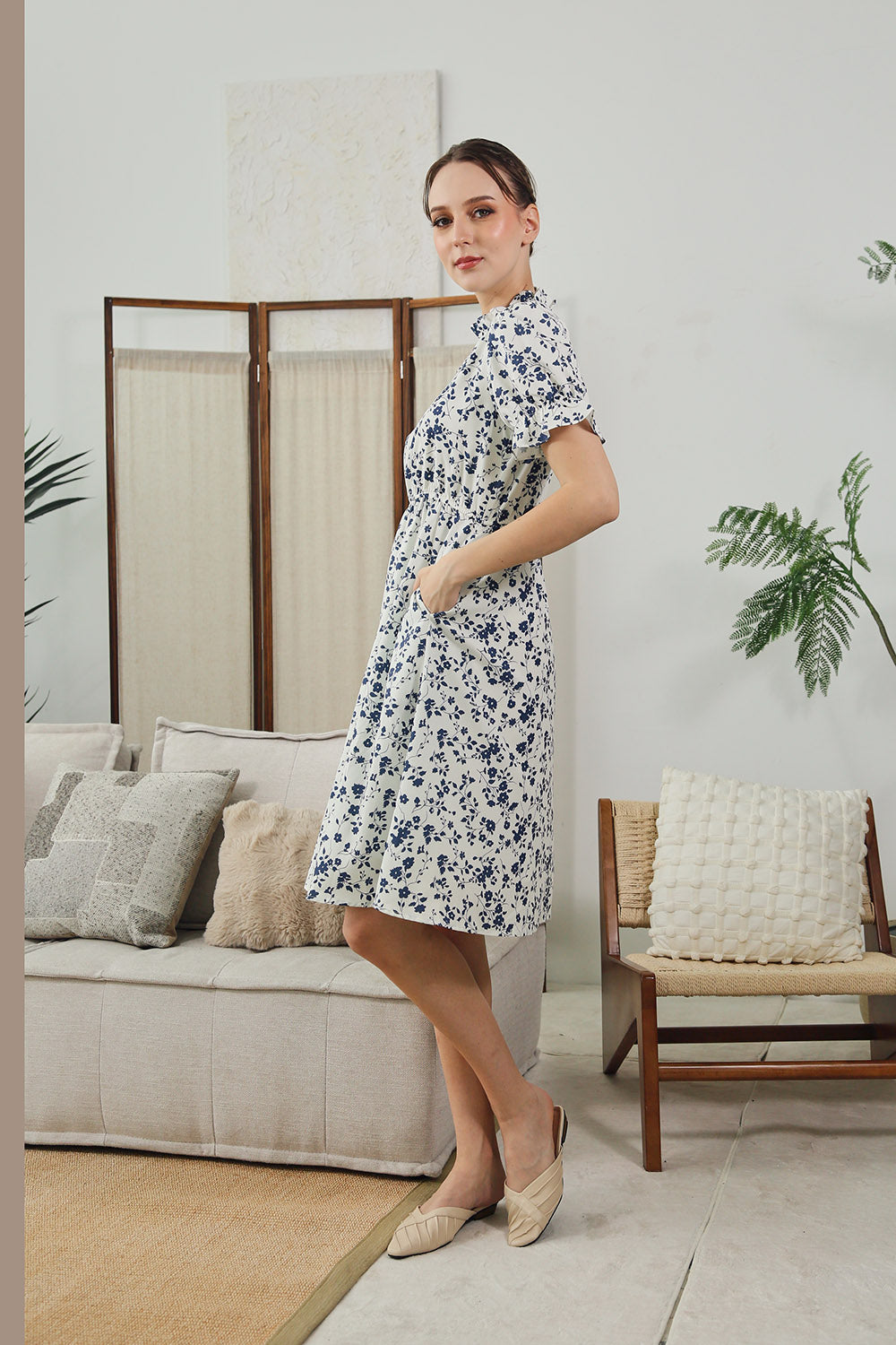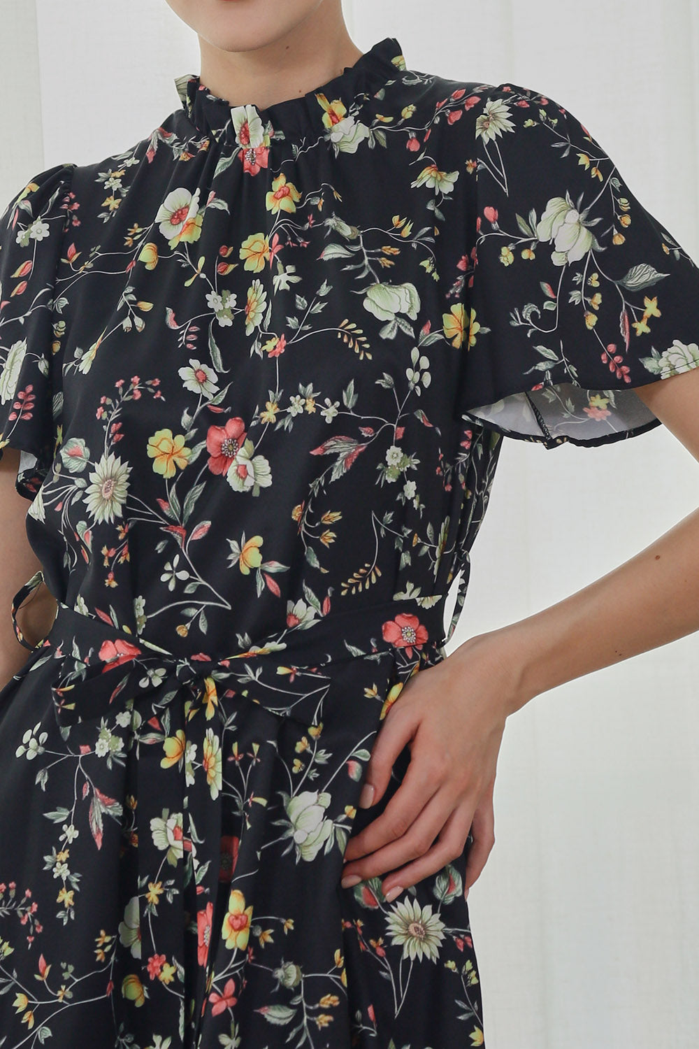 Dezza Midi Dress in Navy Blue Scenic Embroidery