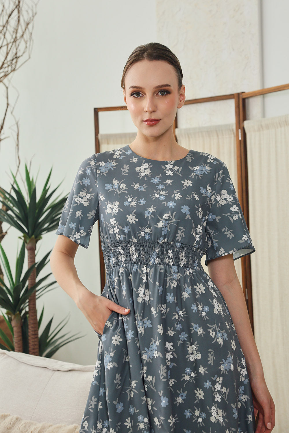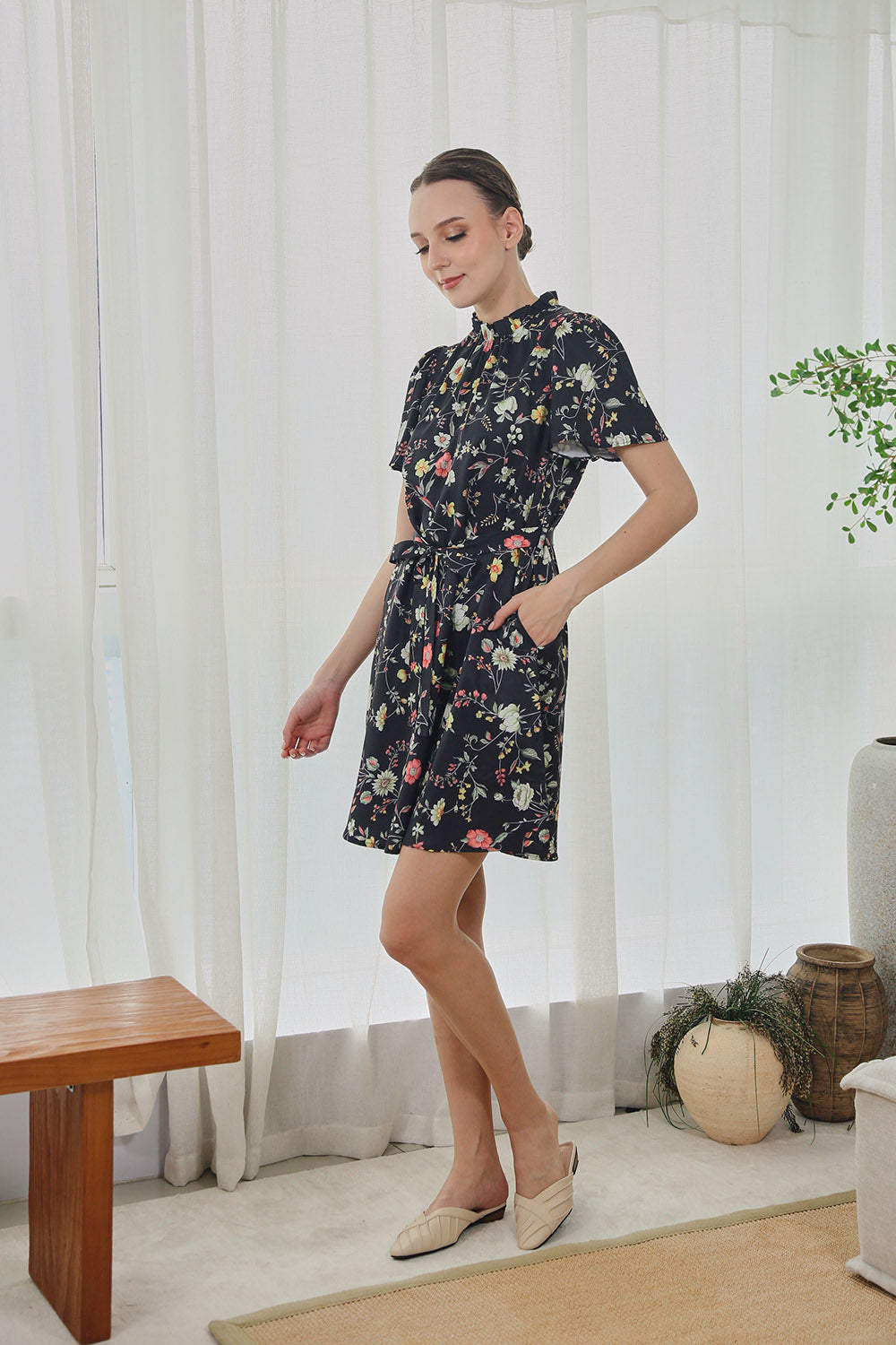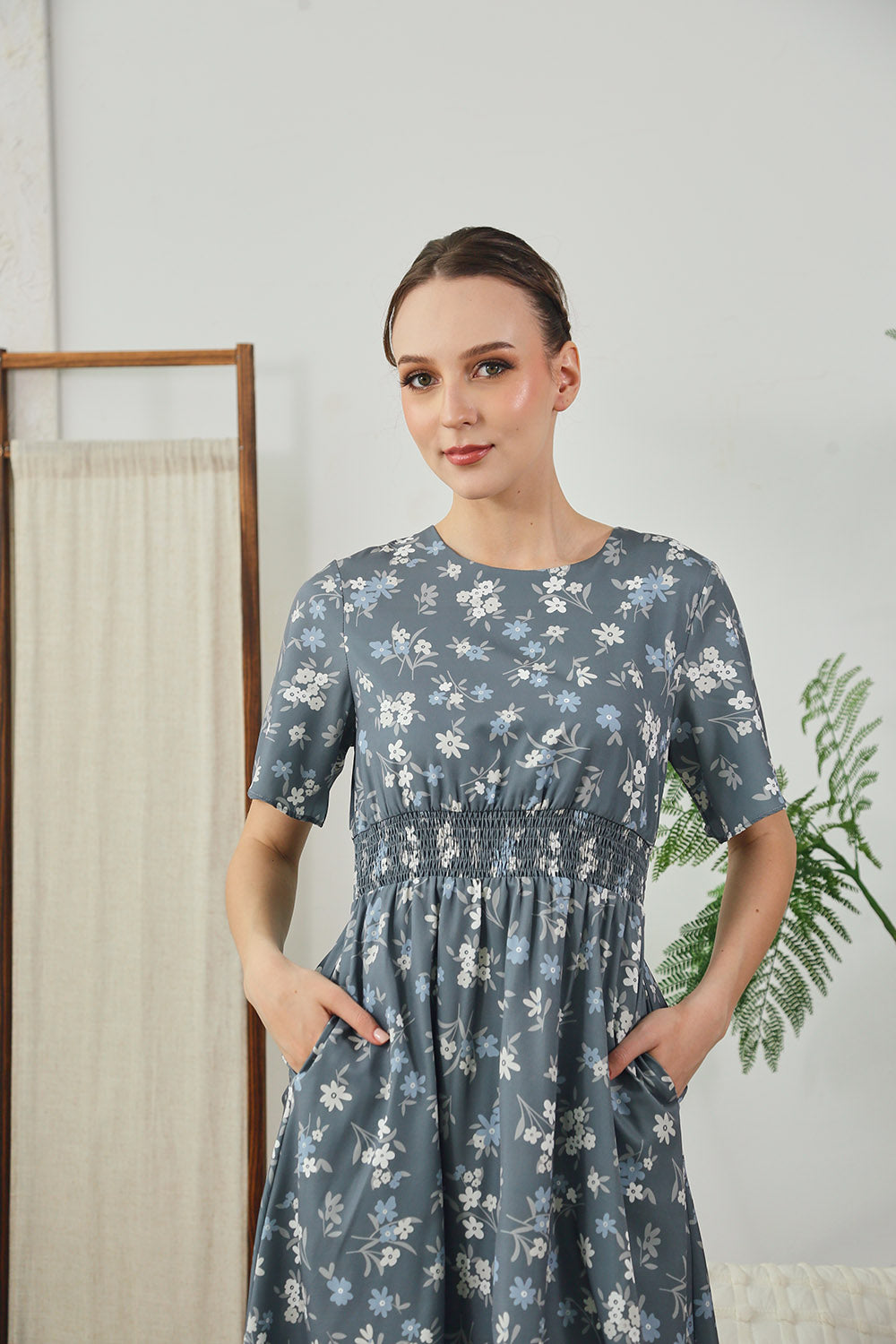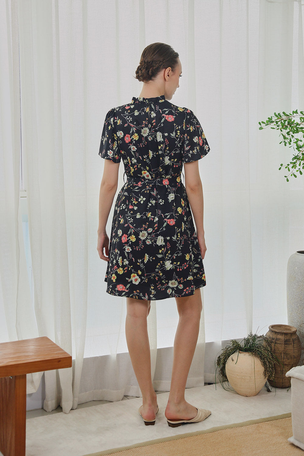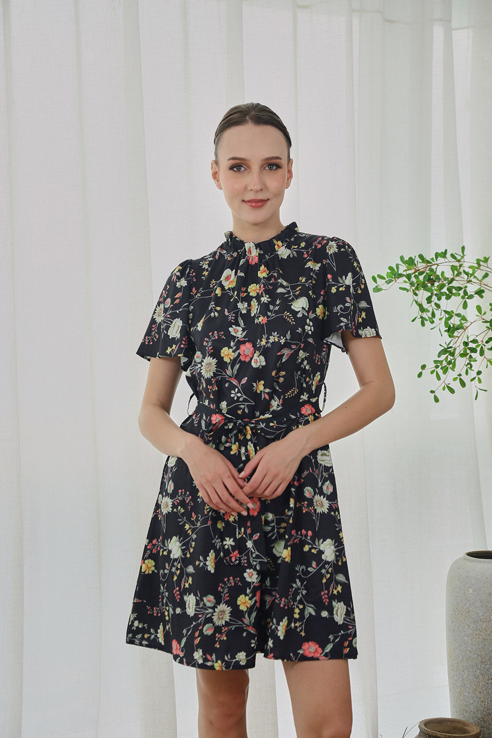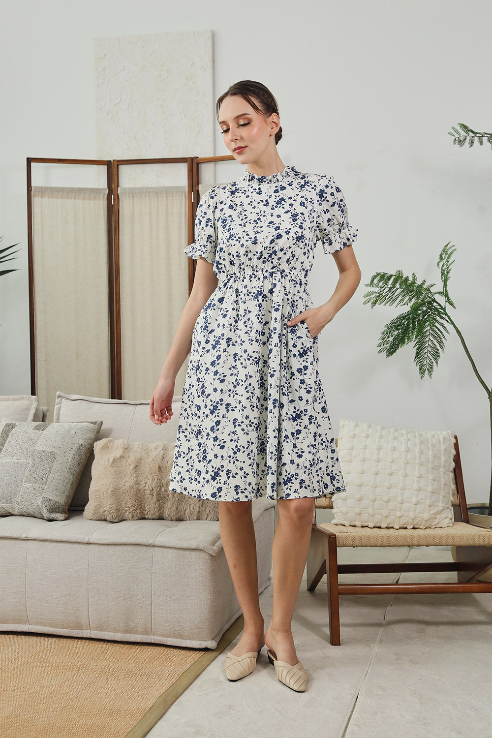 Dezza Midi Dress in Navy Blue Scenic Embroidery
