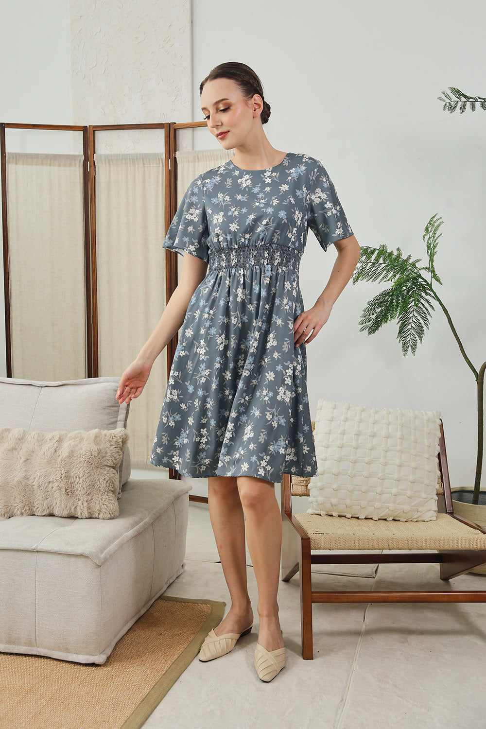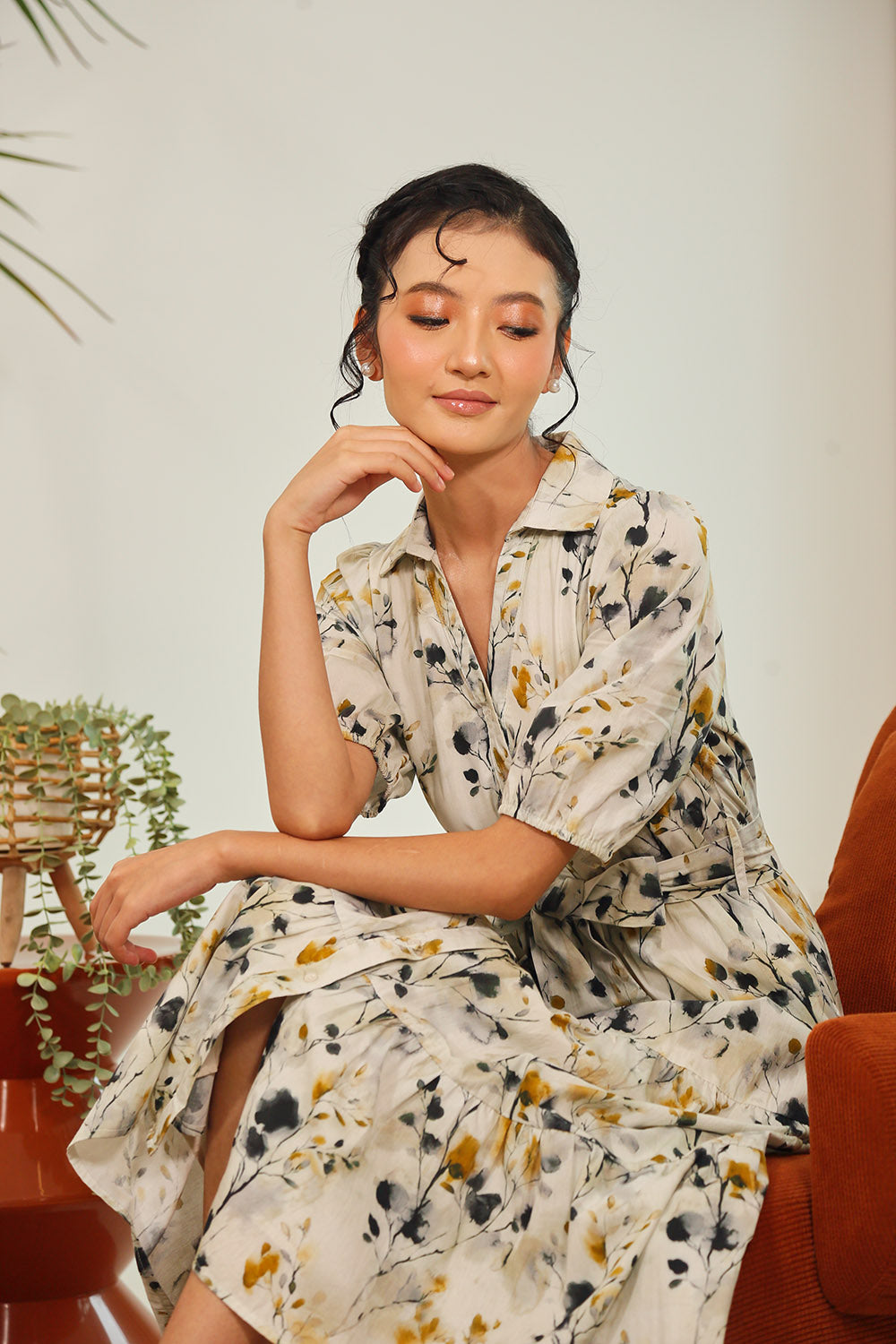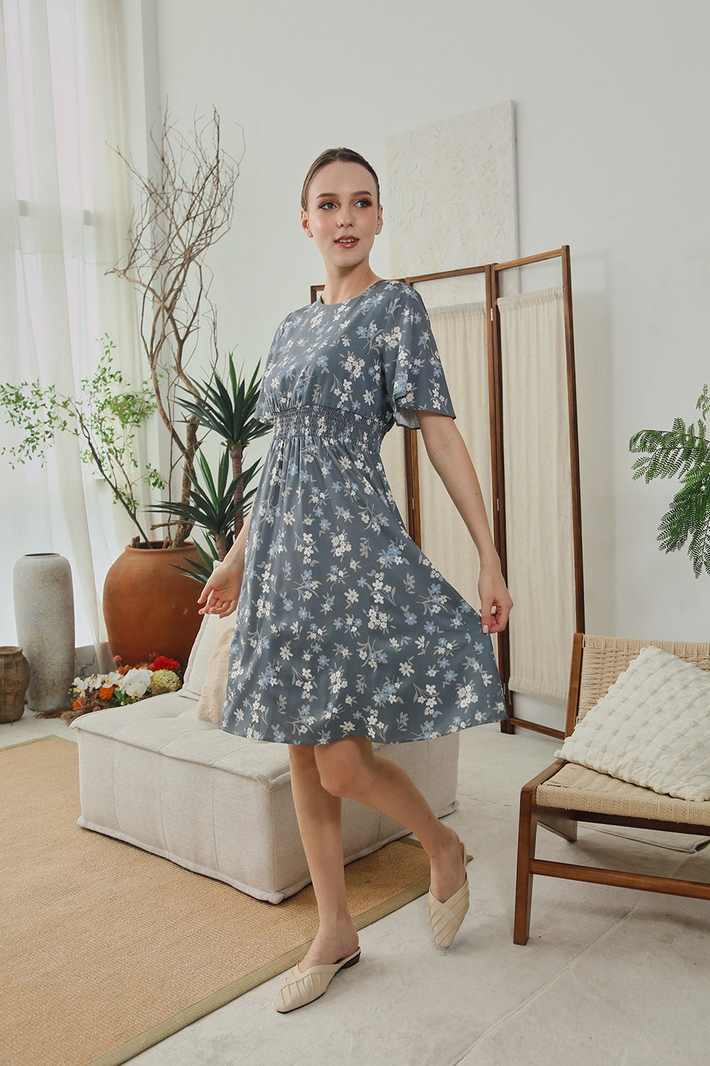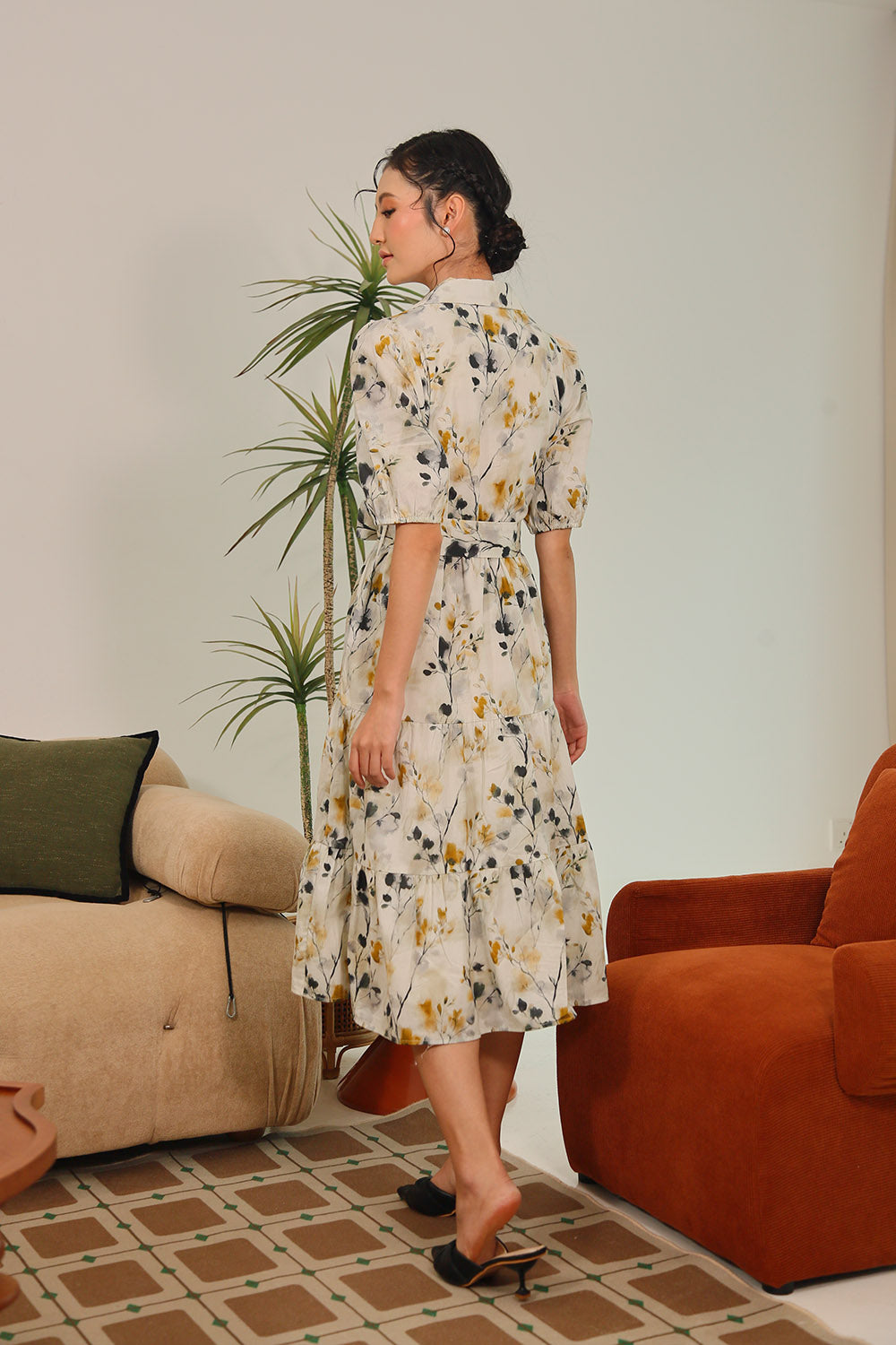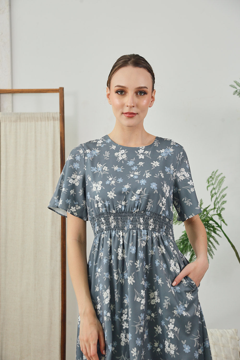 Dezza Midi Dress in Navy Blue Scenic Embroidery