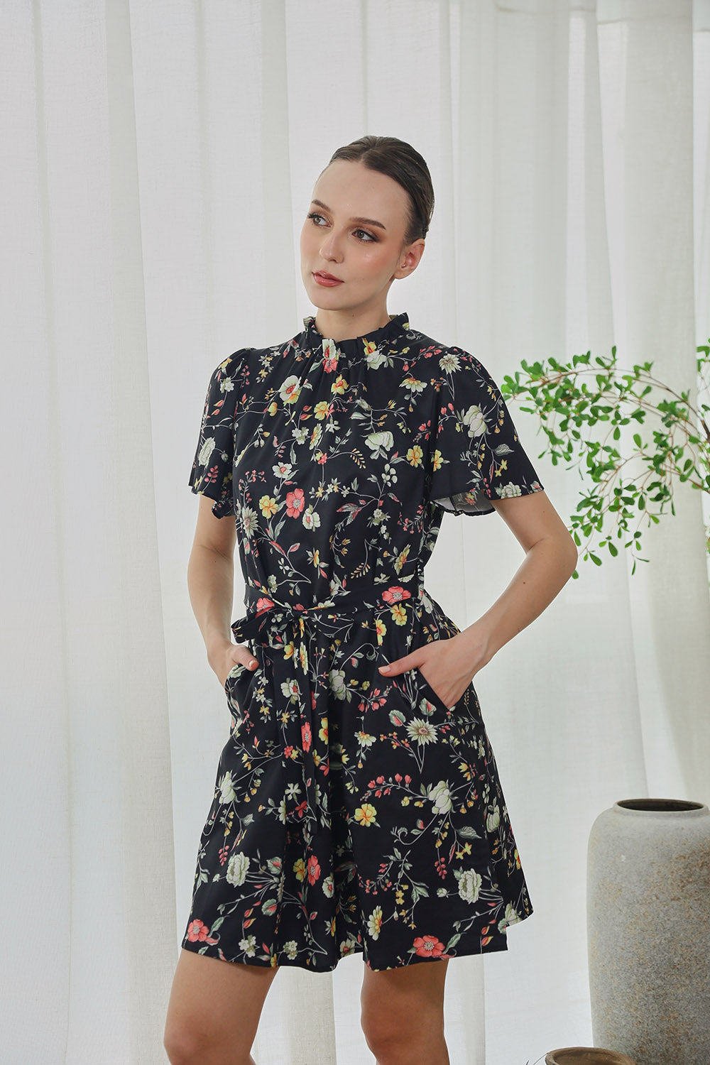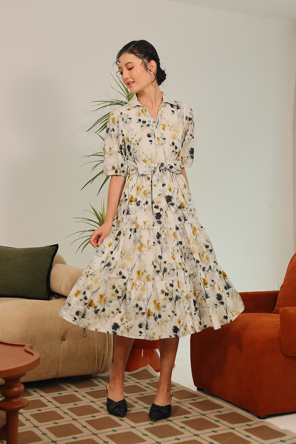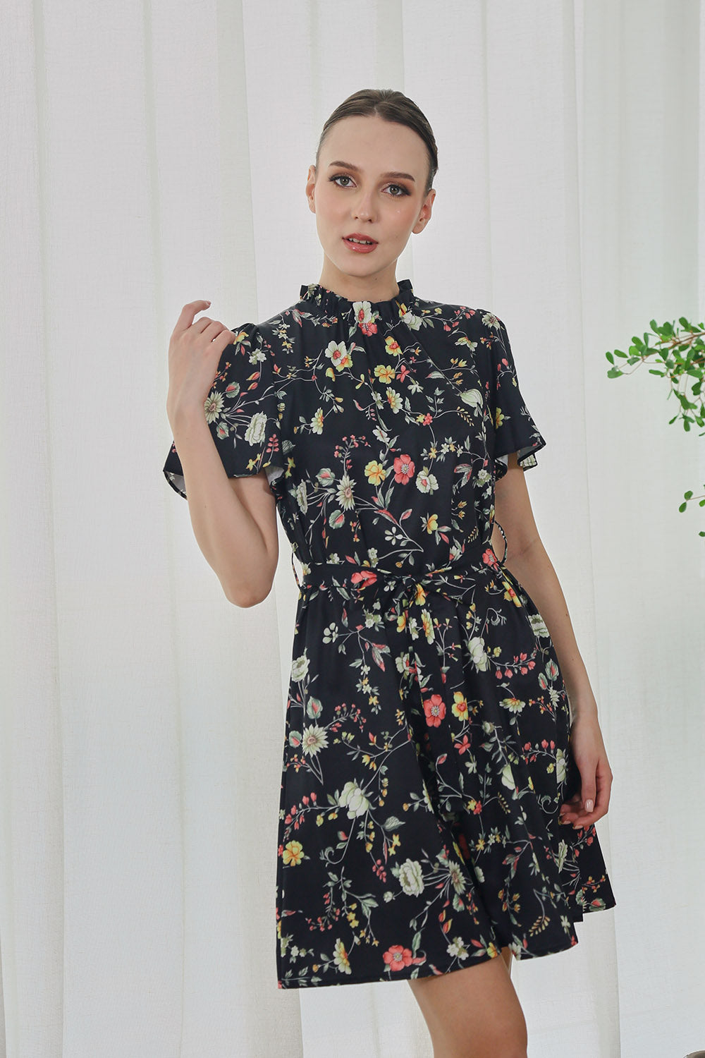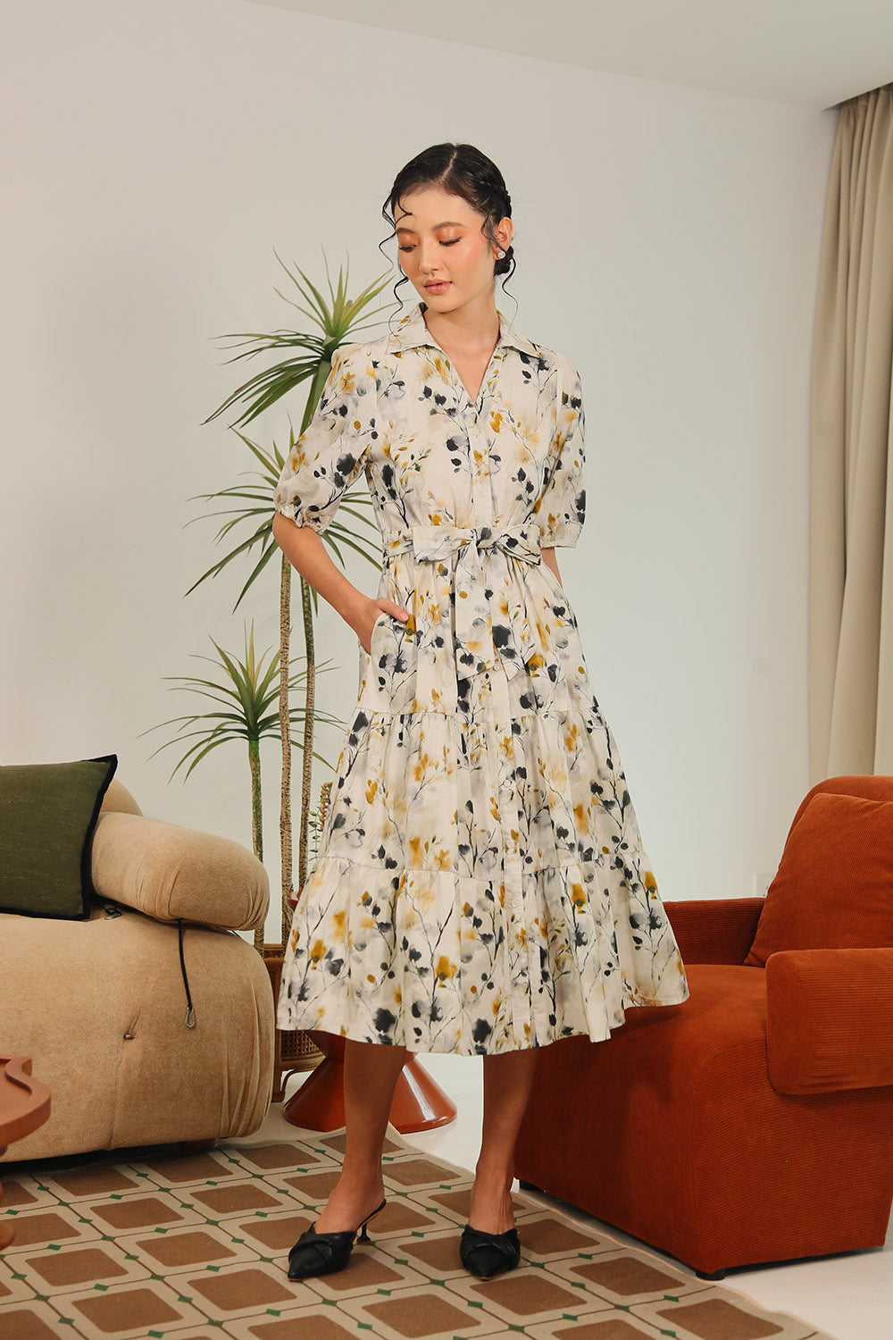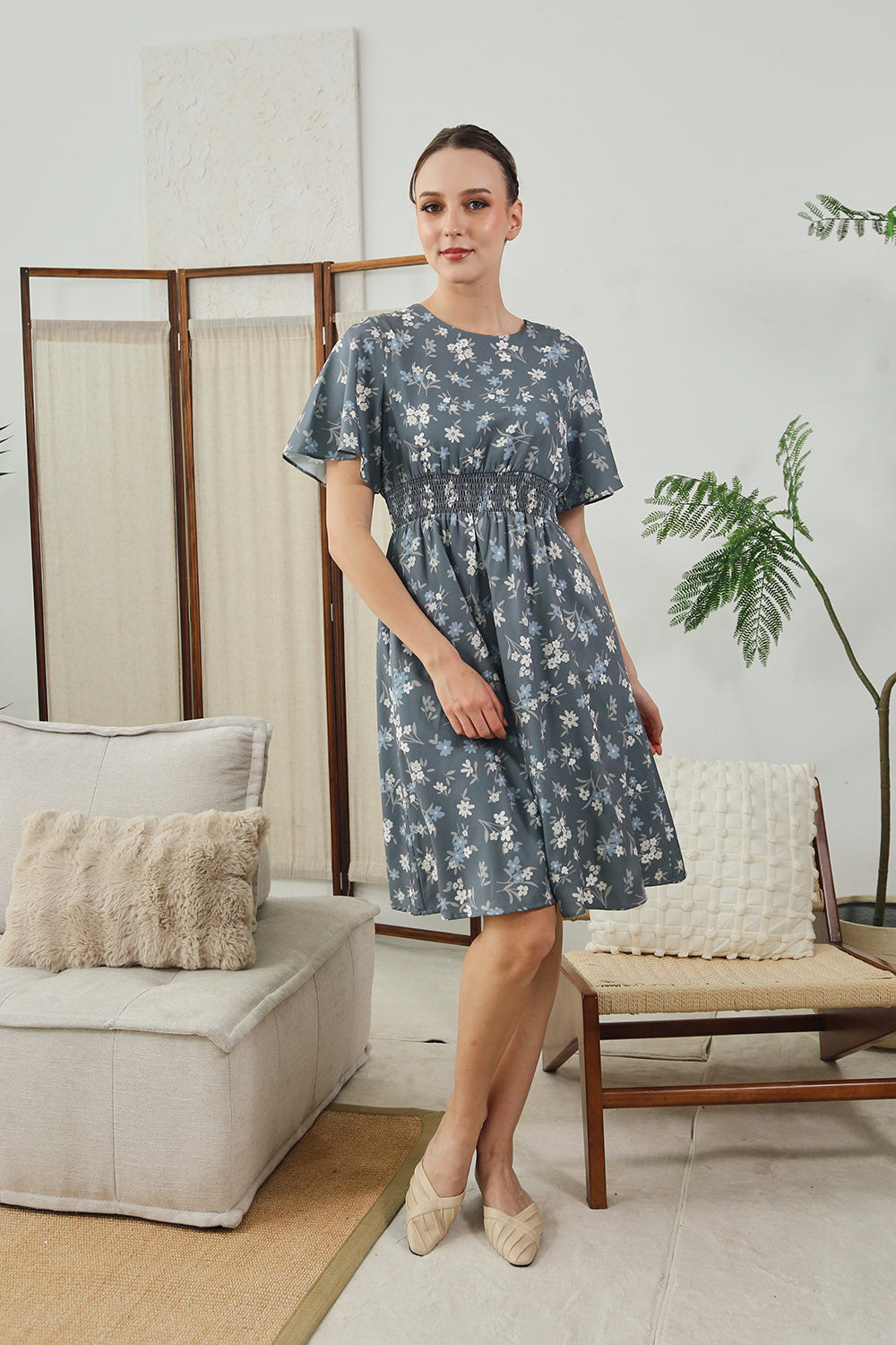 Dezza Midi Dress in Navy Blue Scenic Embroidery