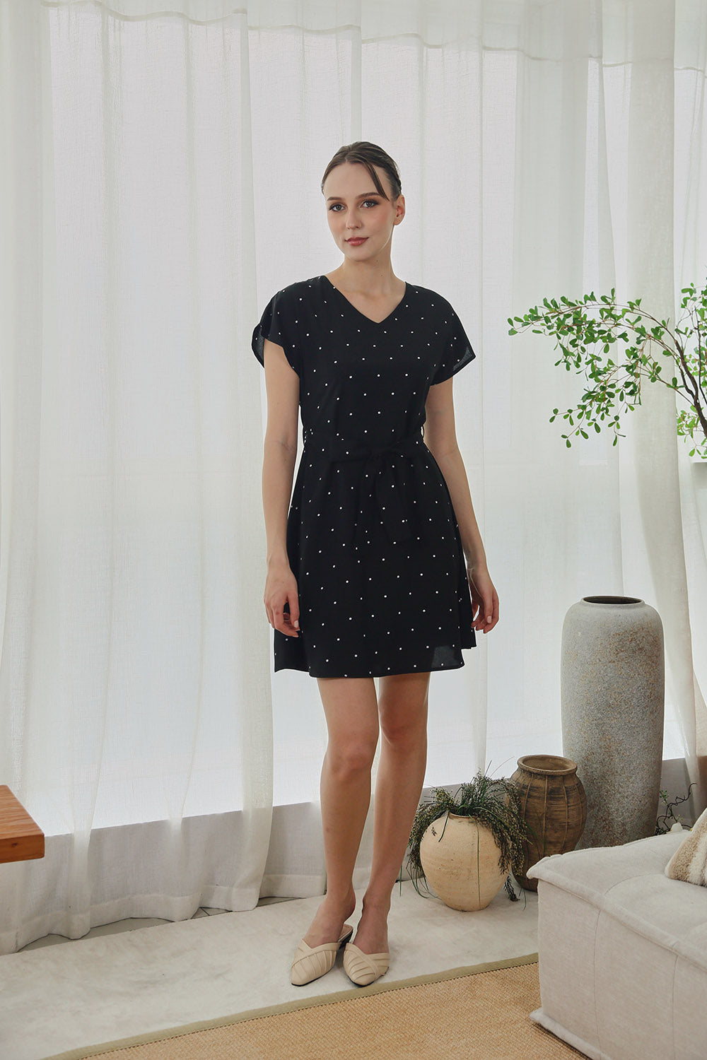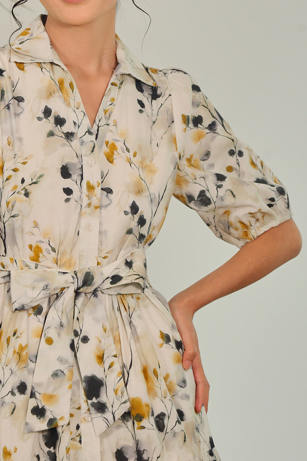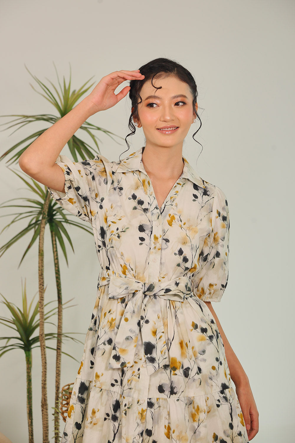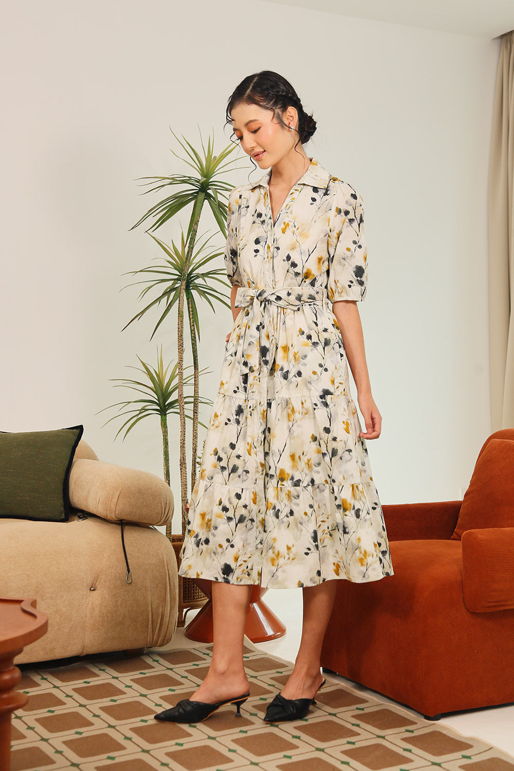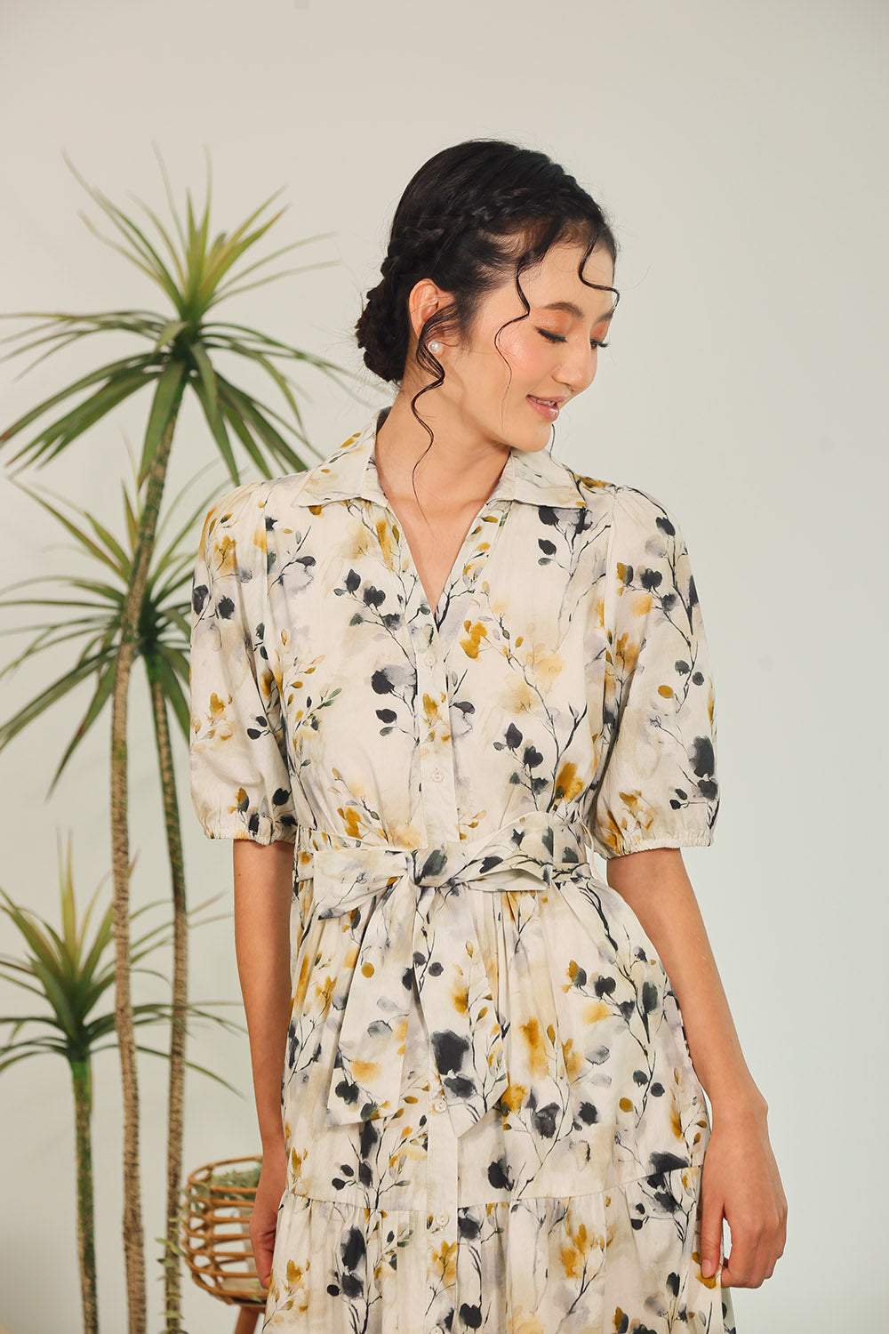 Dezza Midi Dress in Navy Blue Scenic Embroidery