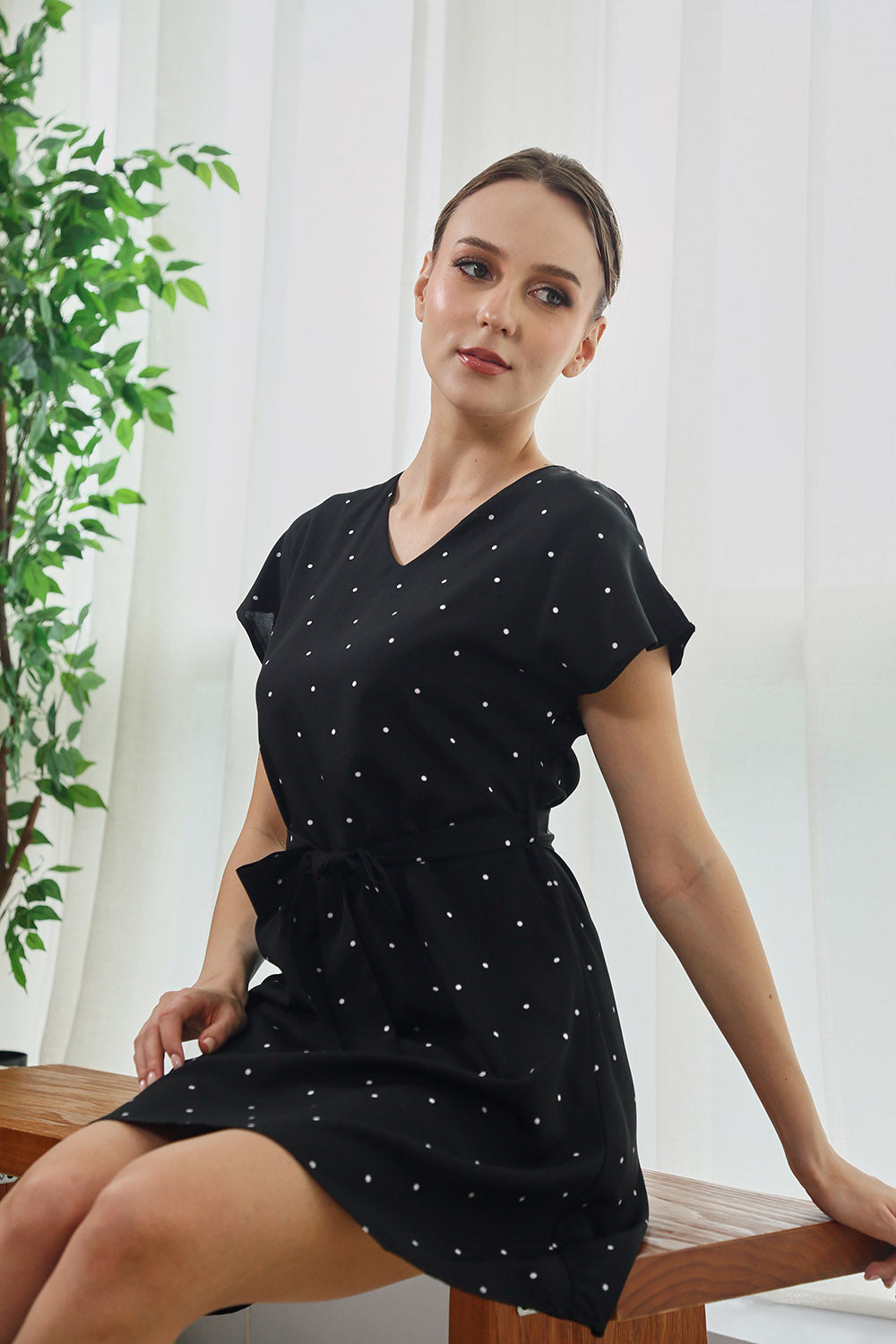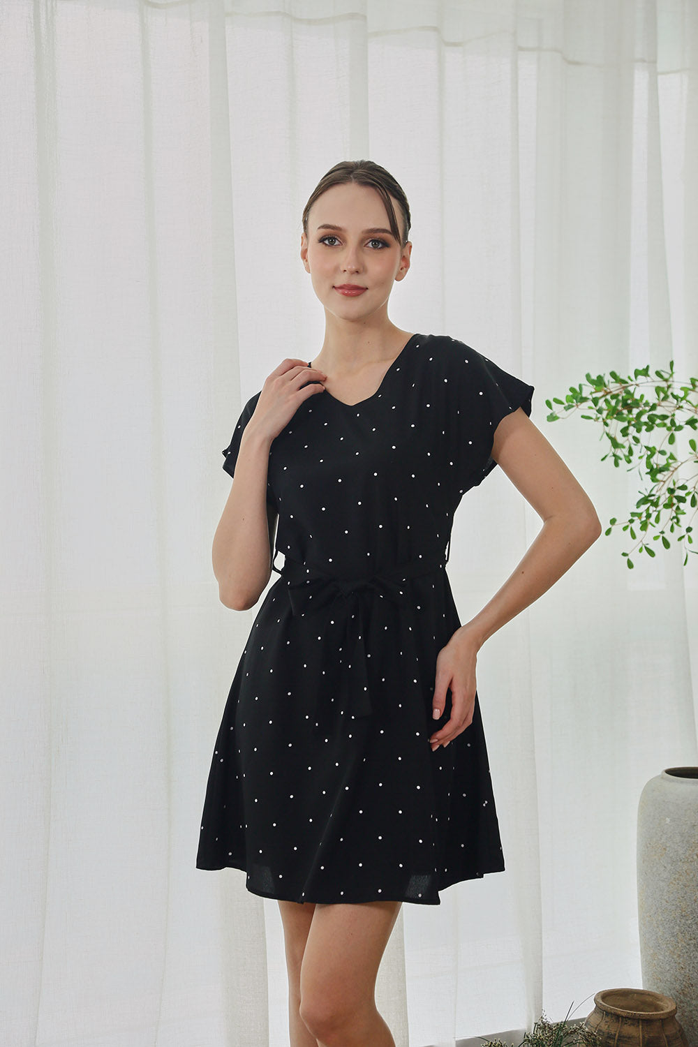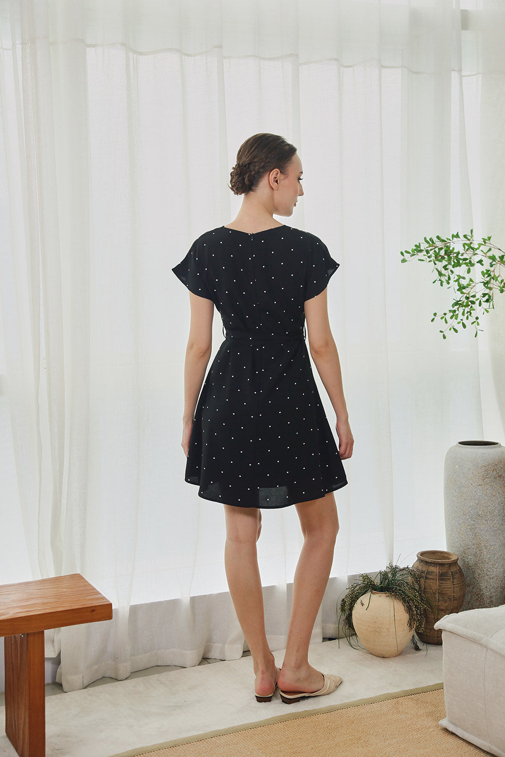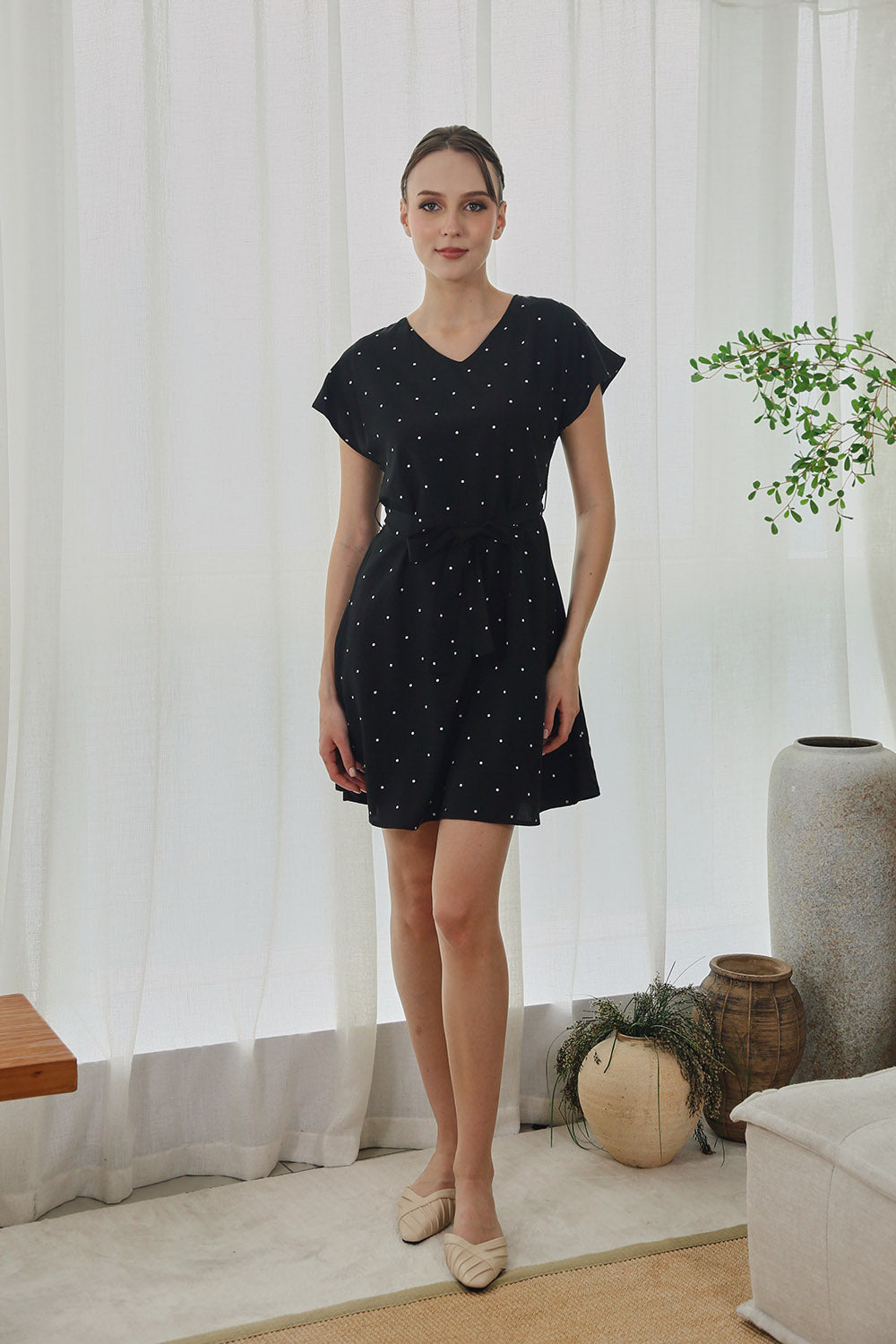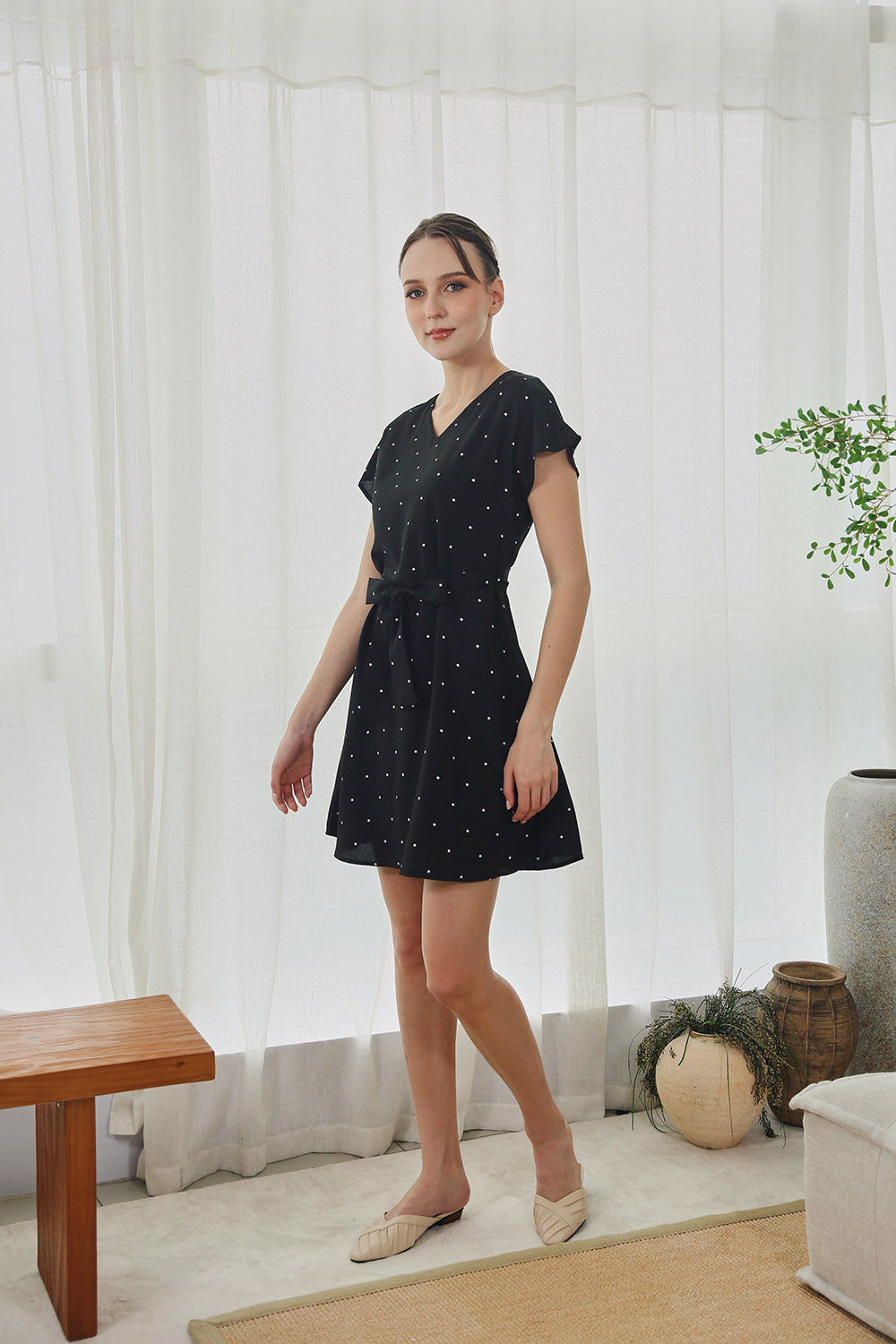 Dezza Midi Dress in Navy Blue Scenic Embroidery